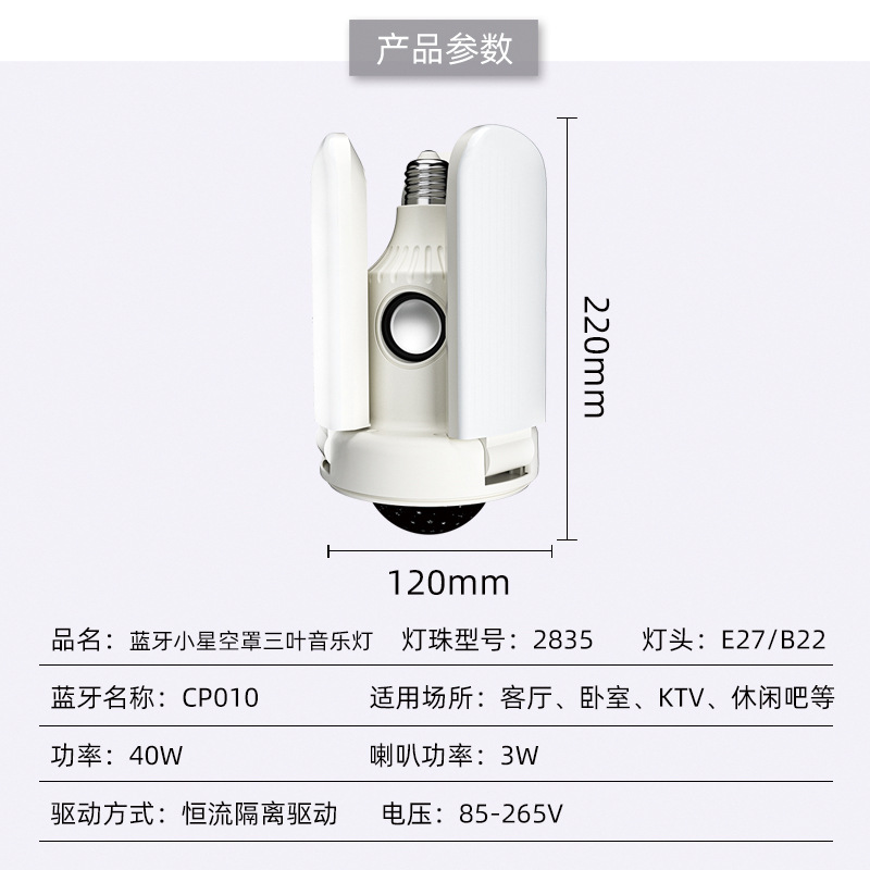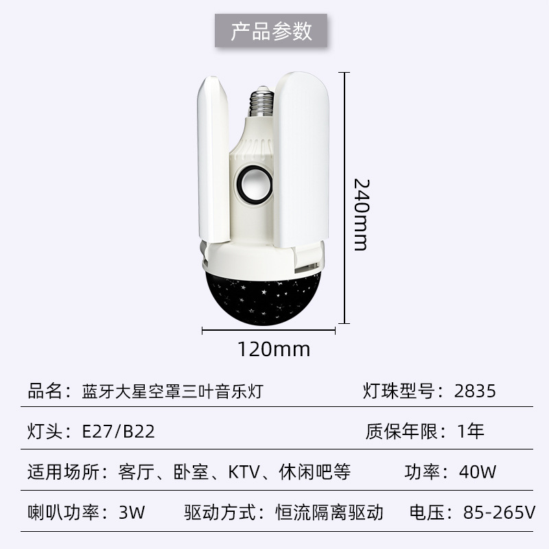 跨境led蓝牙三叶音乐灯大小魔球星空罩40W白光七彩蓝牙音乐灯新款