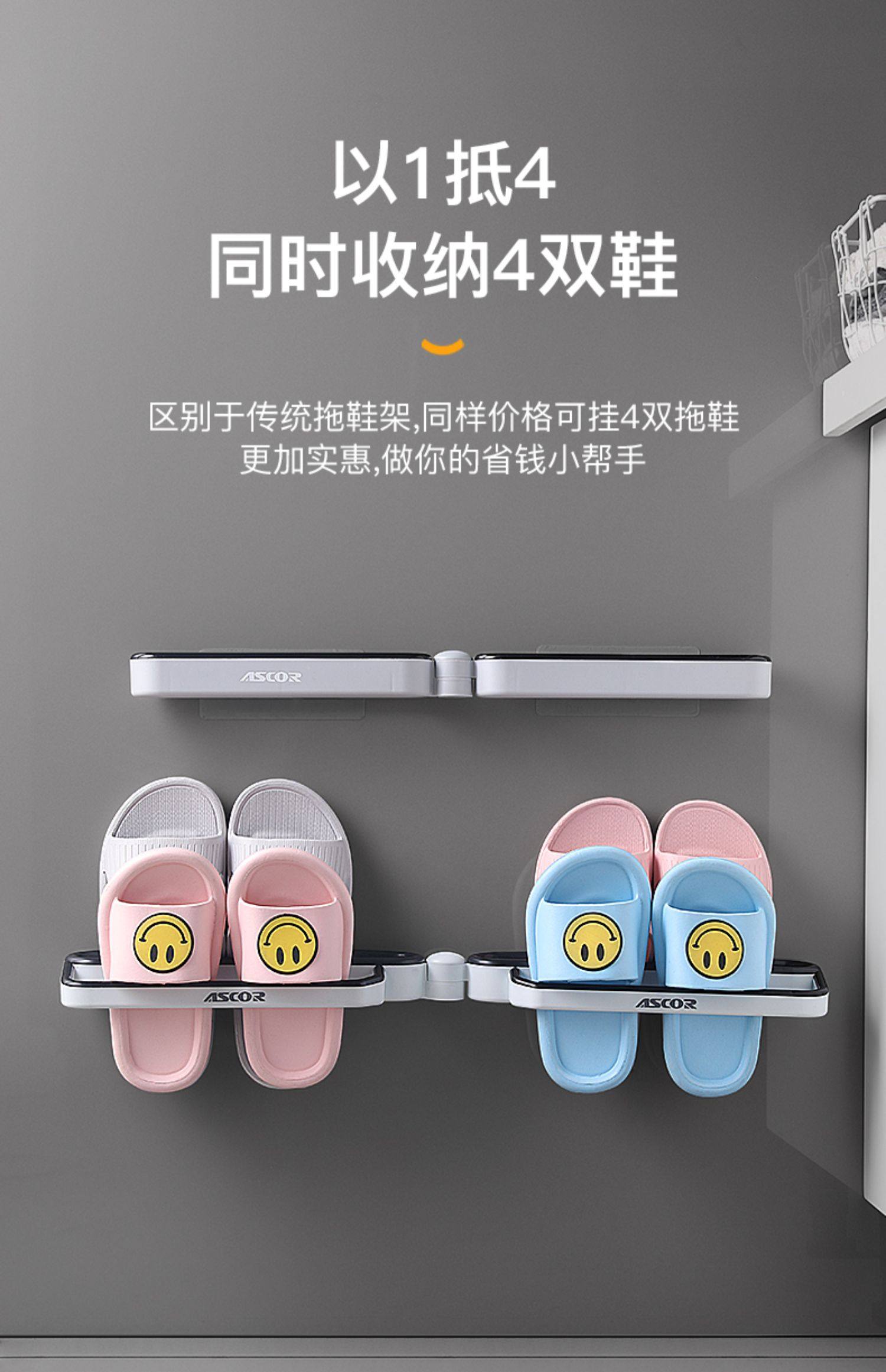 浴室拖鞋架免打孔卫生间墙壁挂式放鞋子壁挂厕所收纳神器置物鞋架