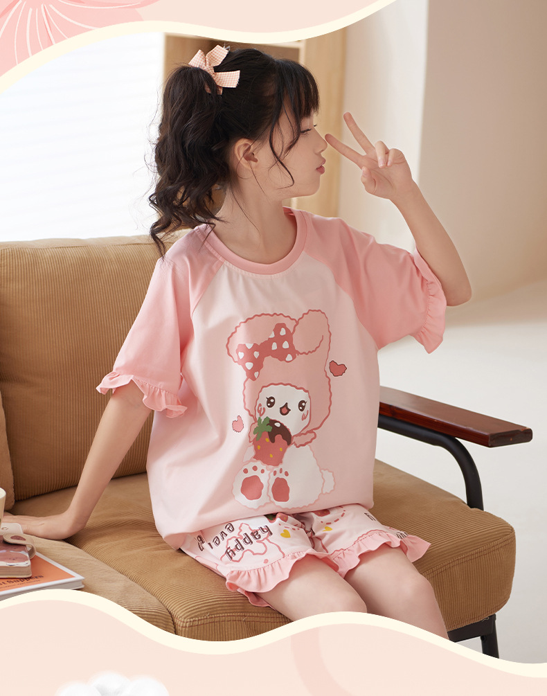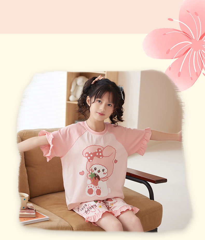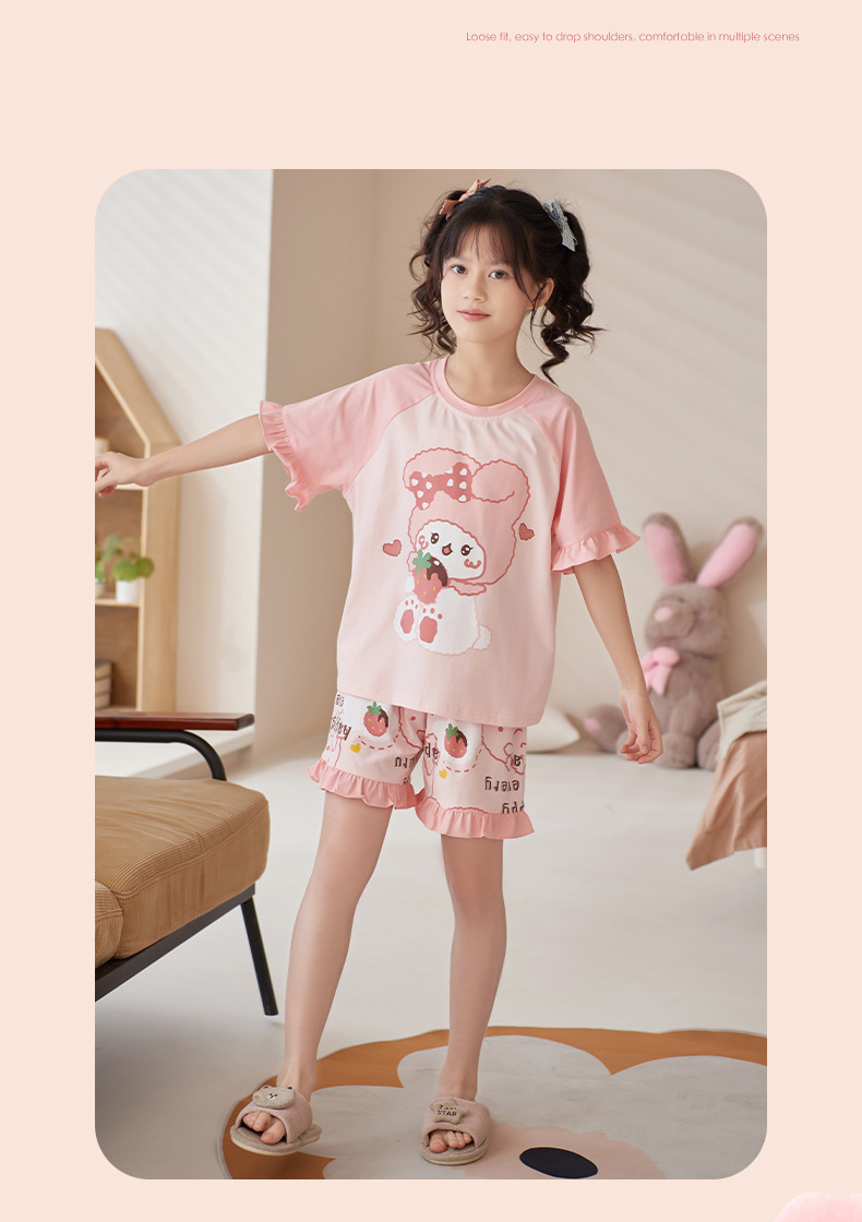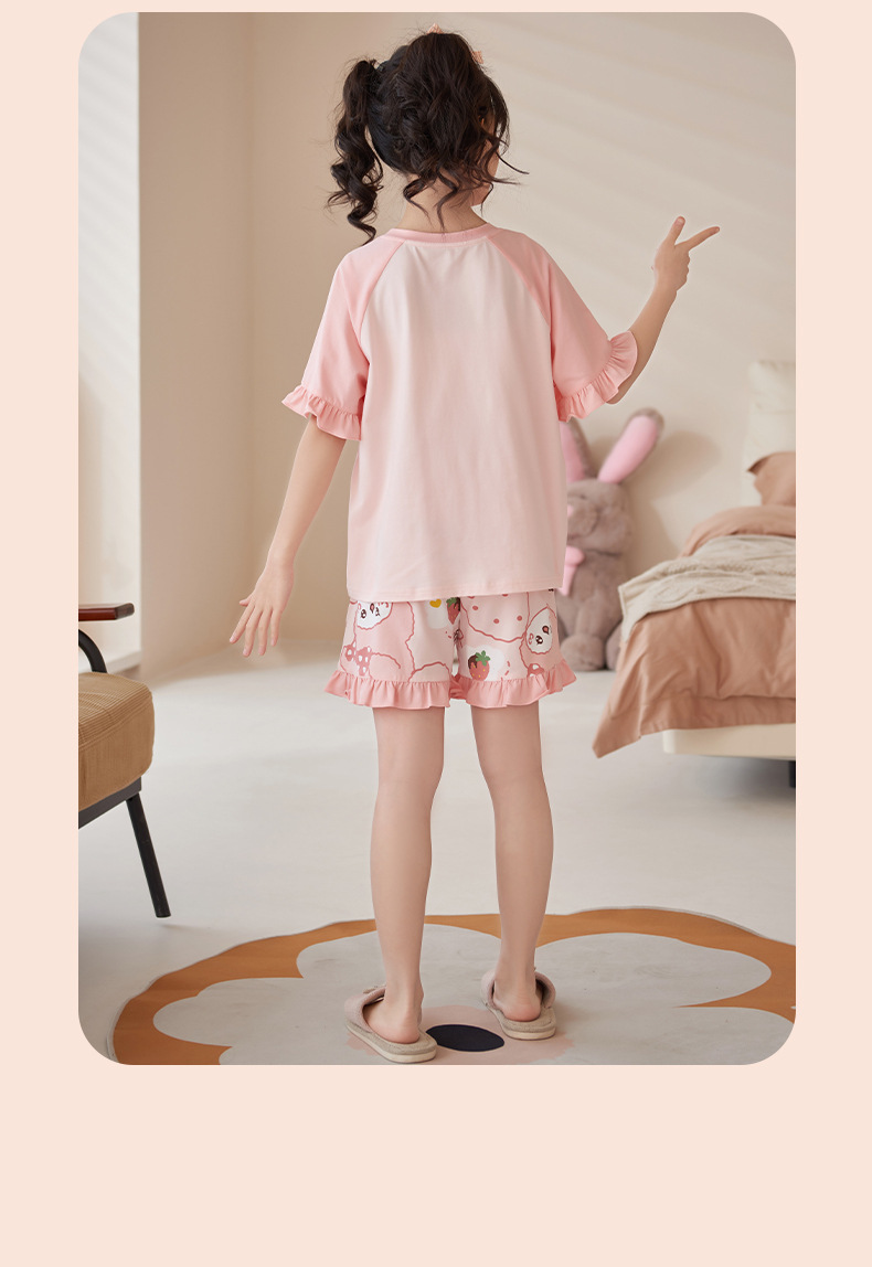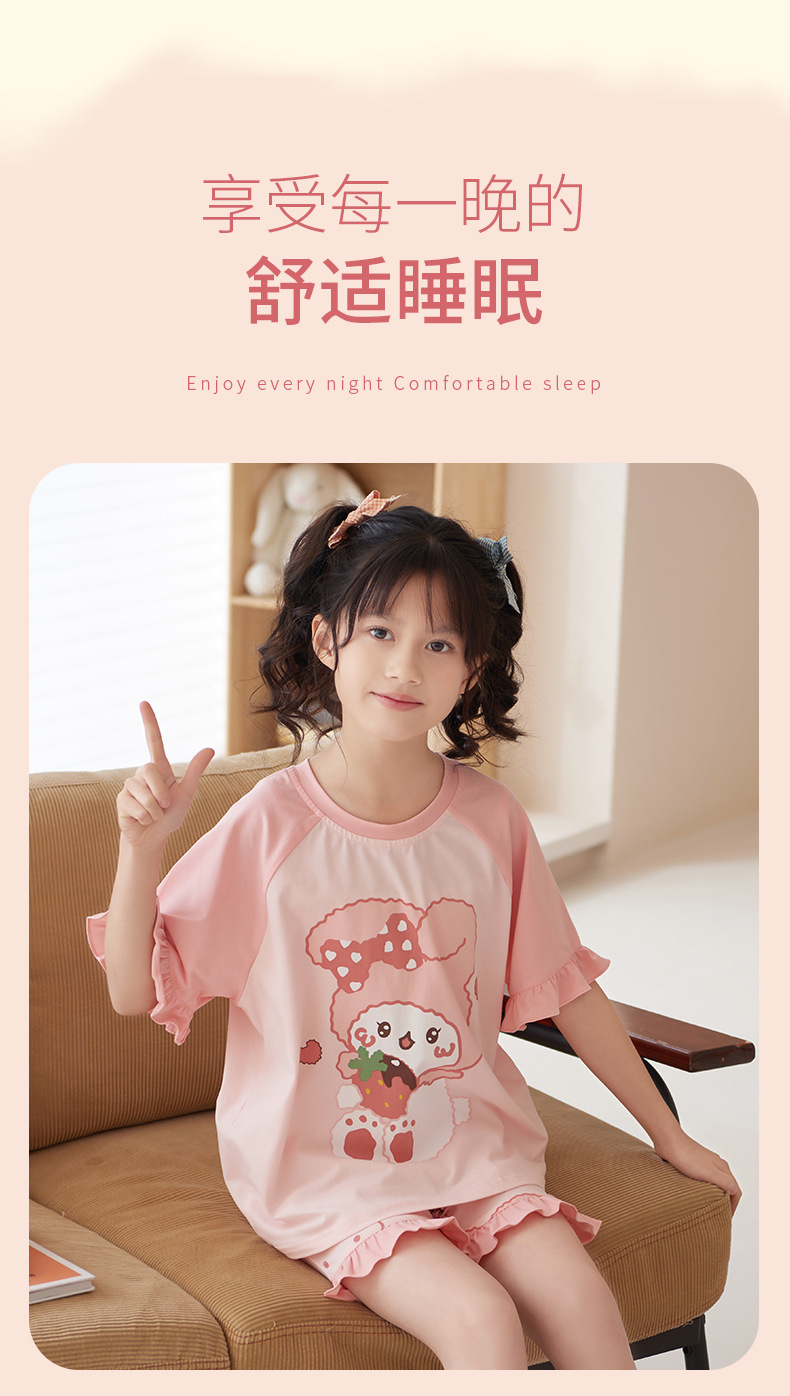 夏季儿童睡衣莫代尔女童宝宝可爱甜美亲子母女家居服薄款冰凉套装