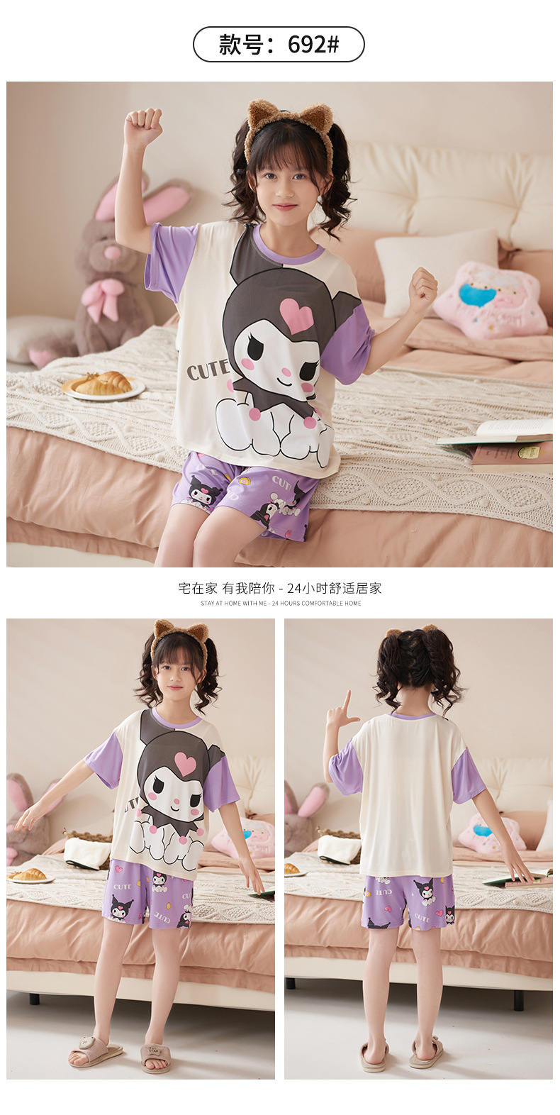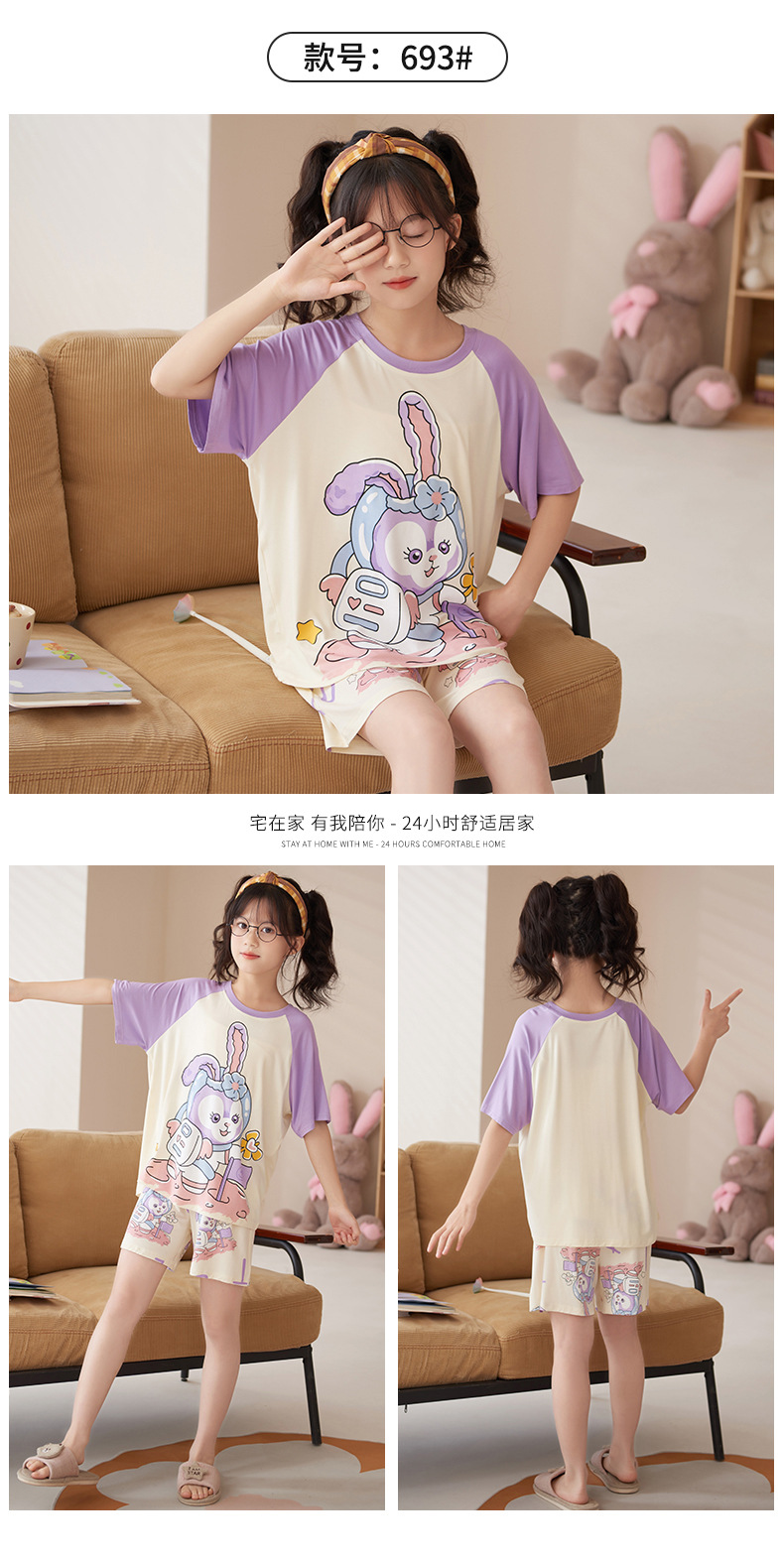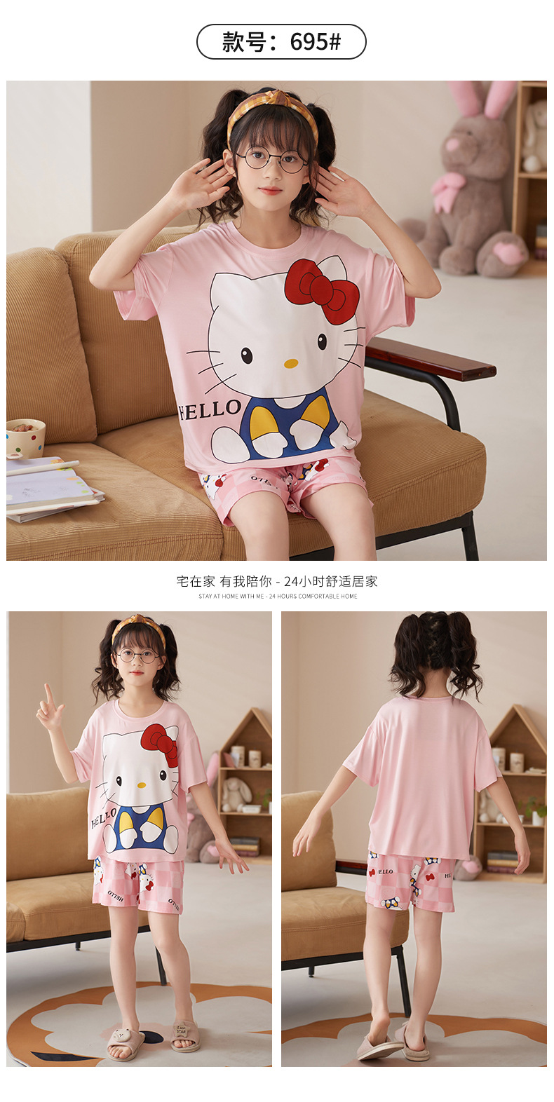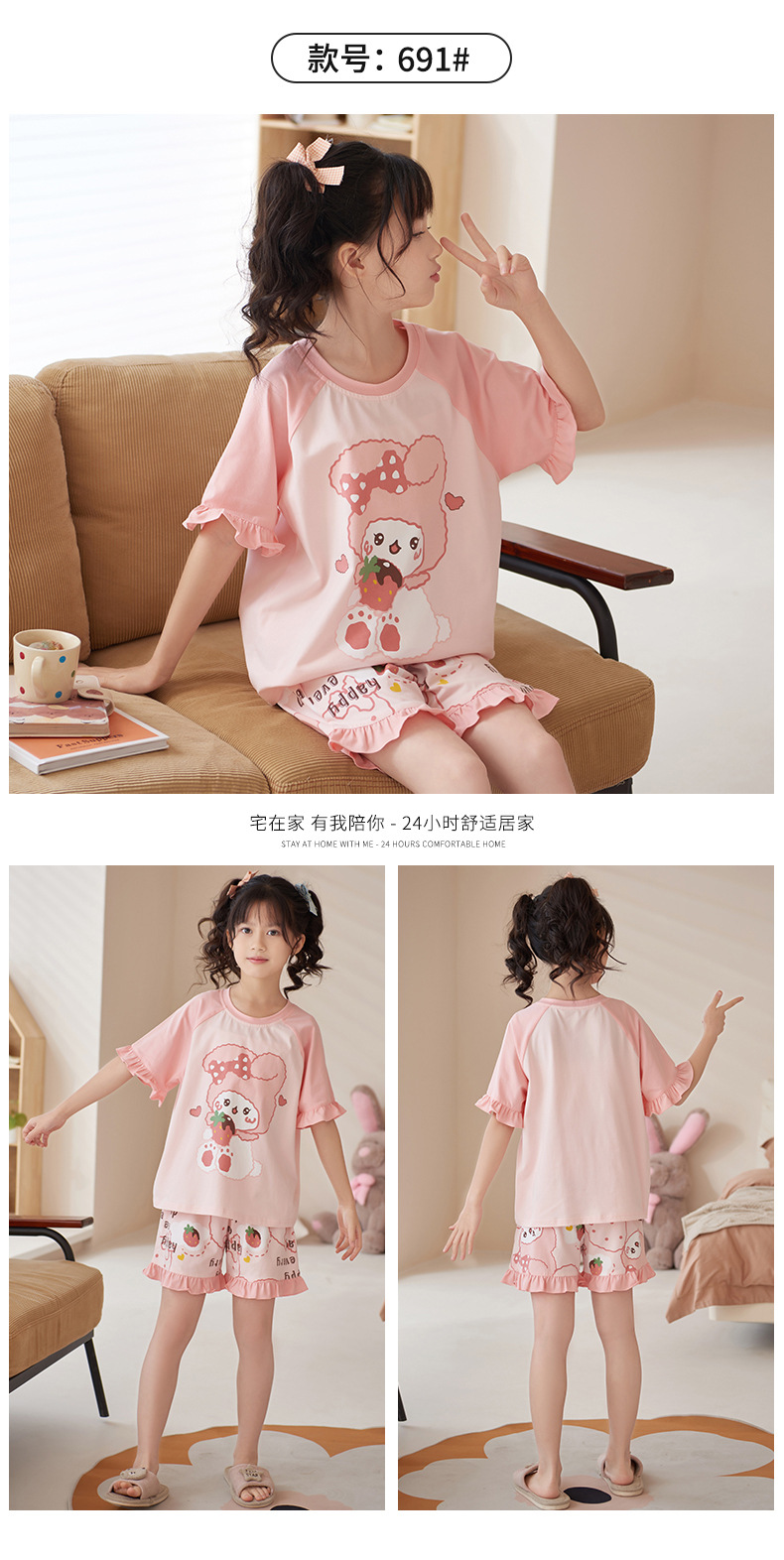 夏季儿童睡衣莫代尔女童宝宝可爱甜美亲子母女家居服薄款冰凉套装