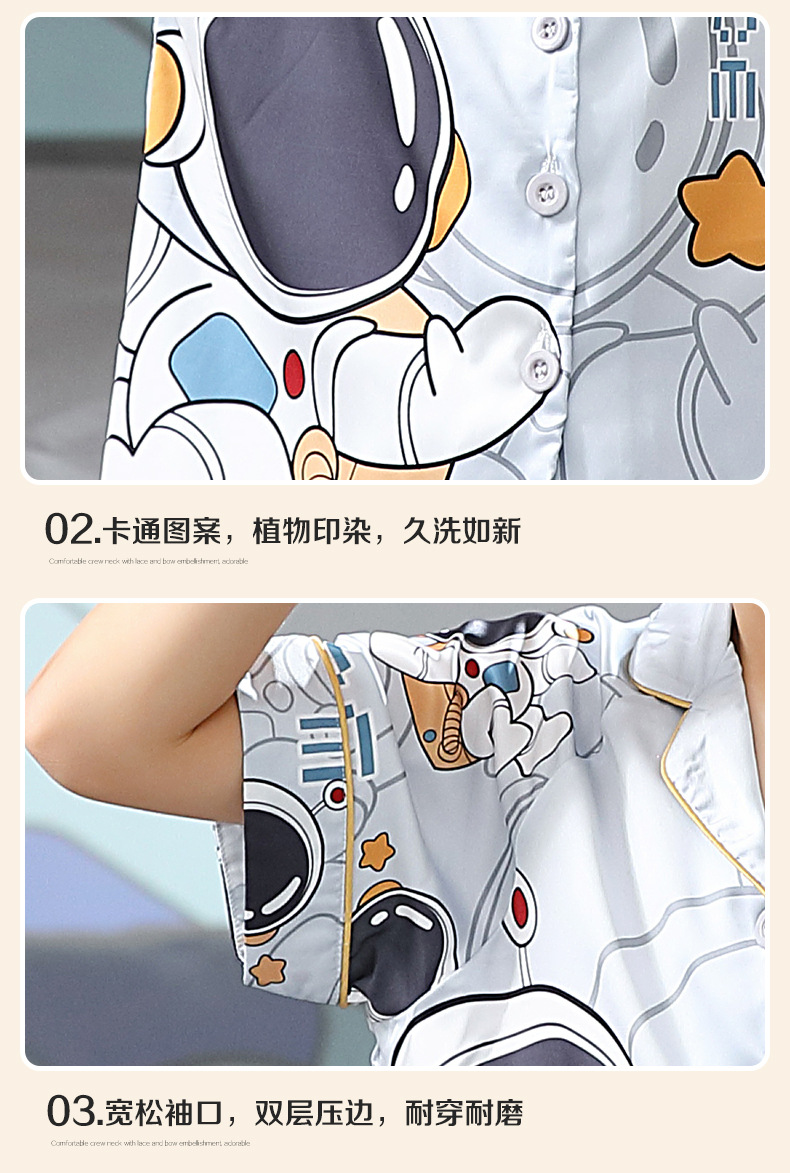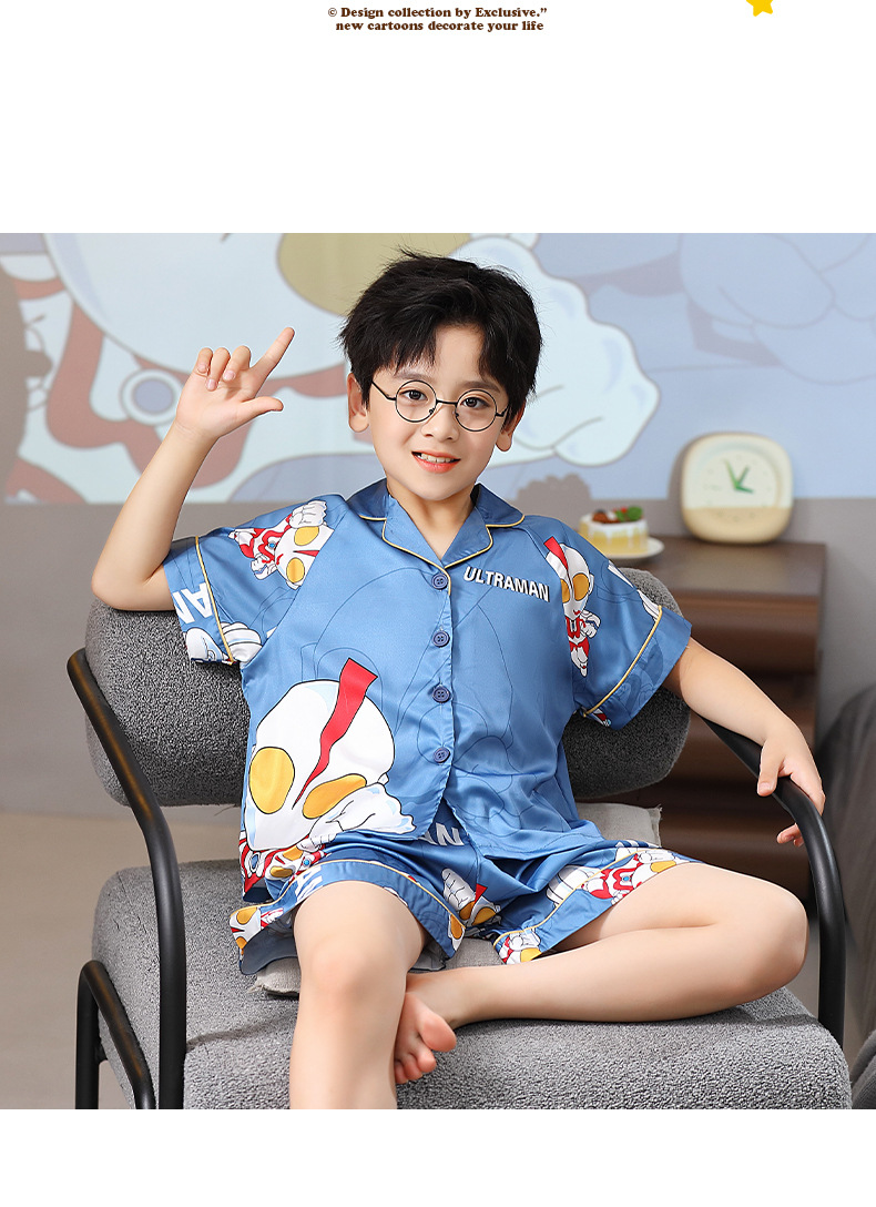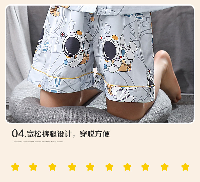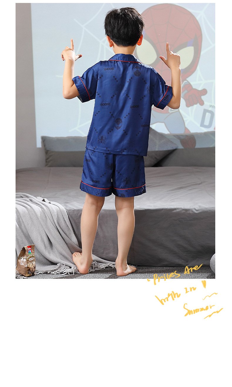 男童夏季儿童睡衣短袖翻领冰丝男孩卡通开衫夏天空调服套装家居服