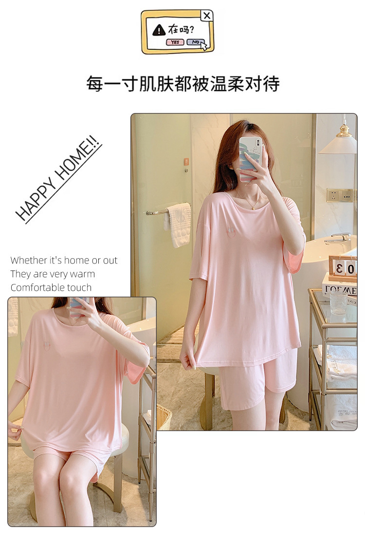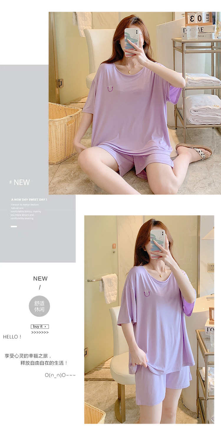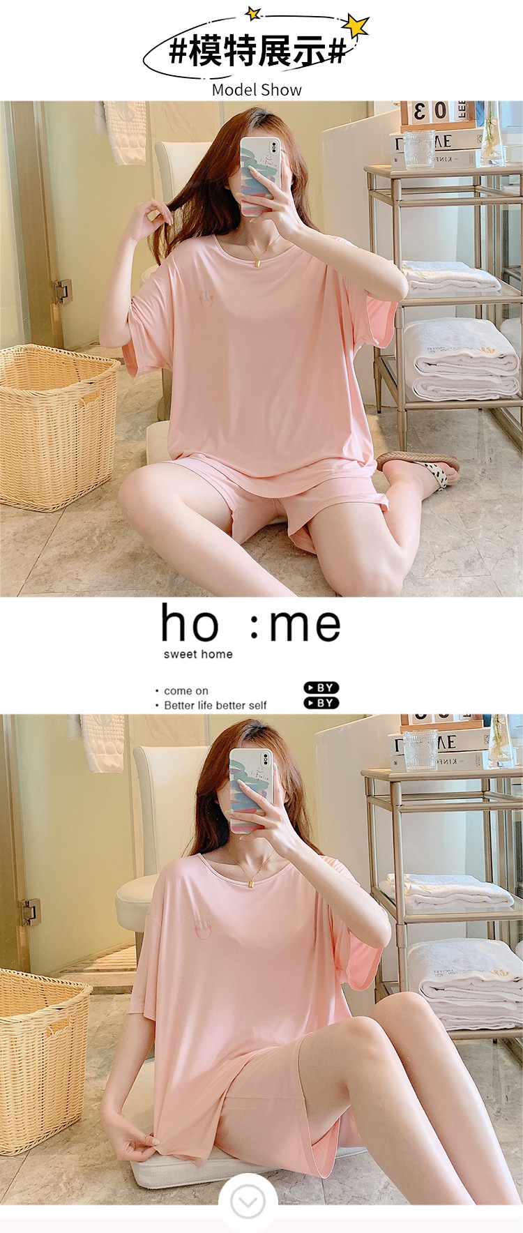 莫代尔睡衣女夏季甜美带胸垫可拆取短裤加肥加大240斤可穿家居服