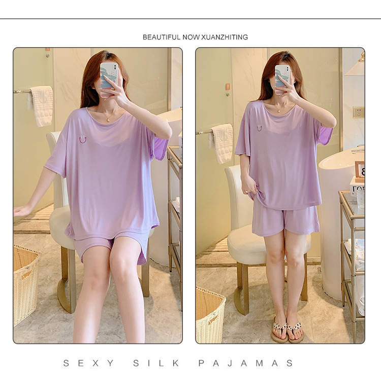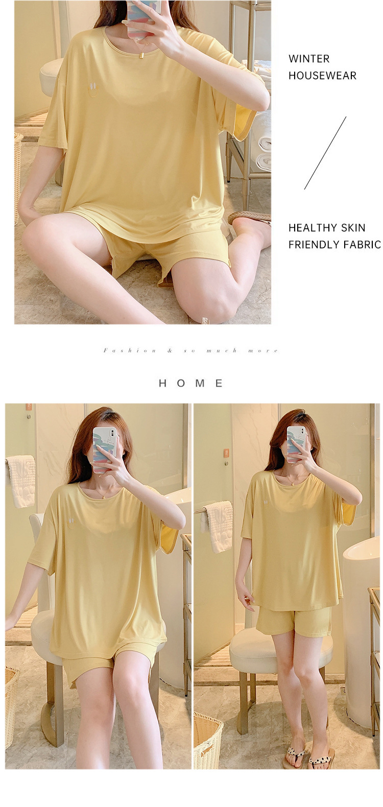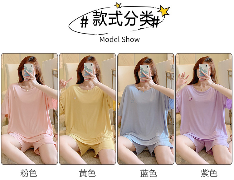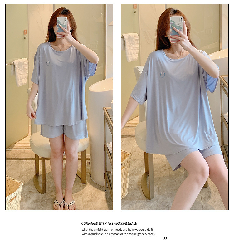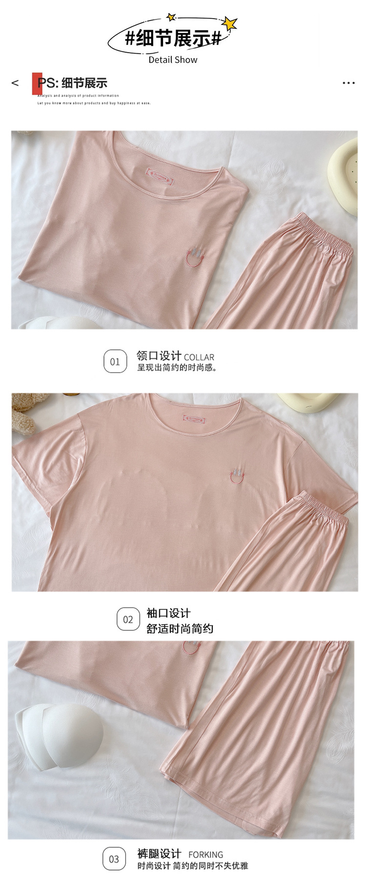 莫代尔睡衣女夏季甜美带胸垫可拆取短裤加肥加大240斤可穿家居服