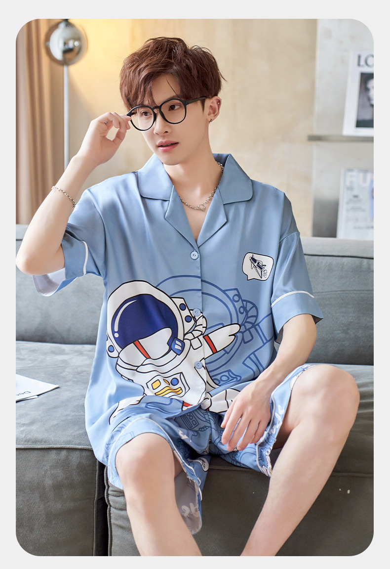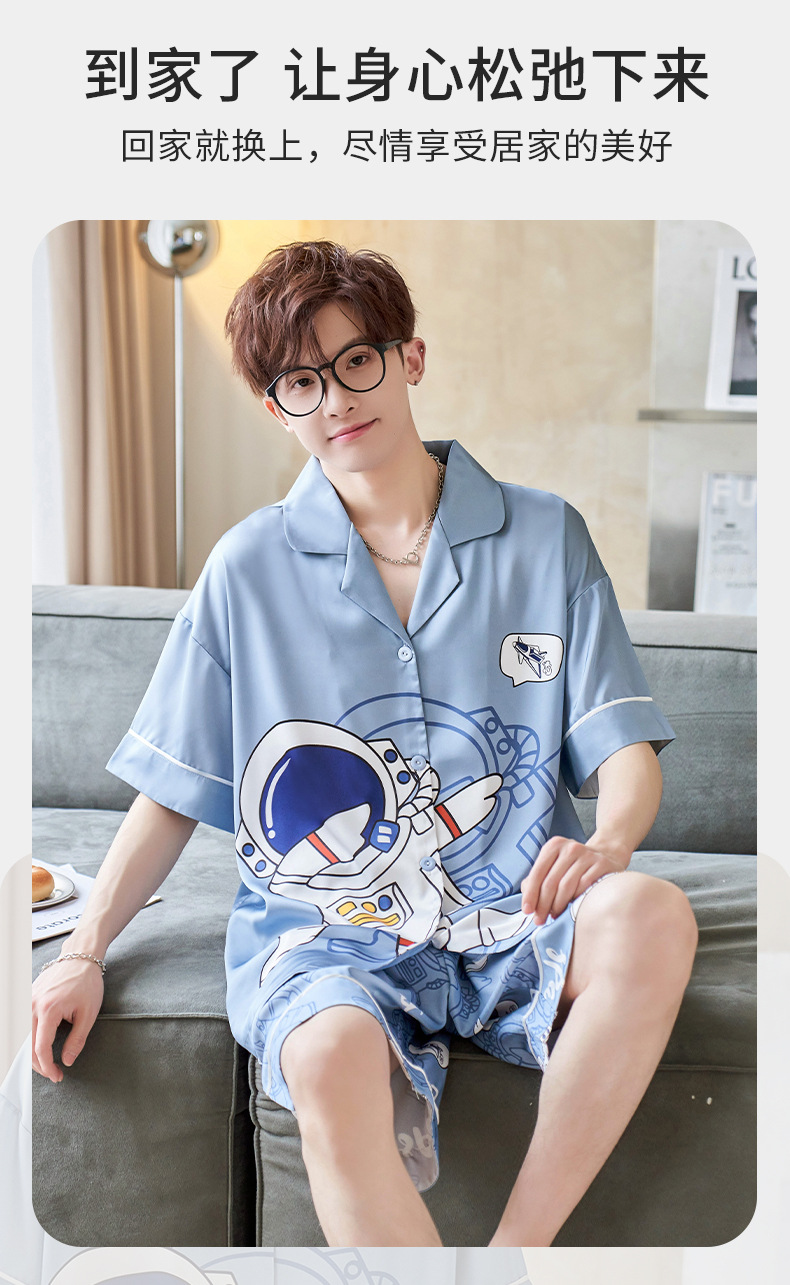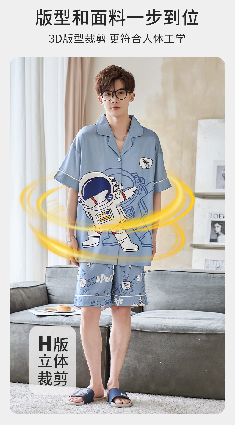 男士睡衣夏季冰雪丝薄款短袖夏天卡通青少年可外穿大码家居服套装