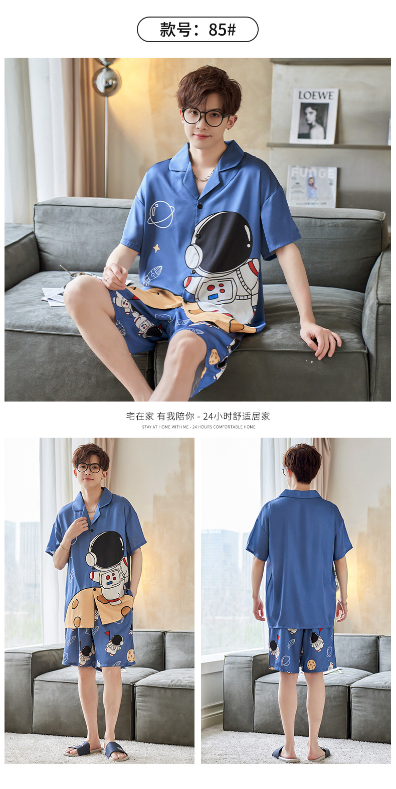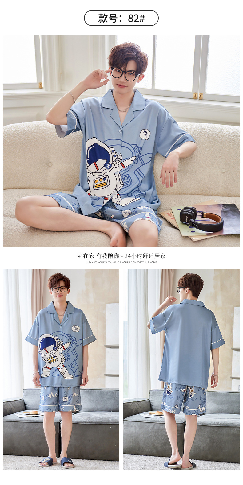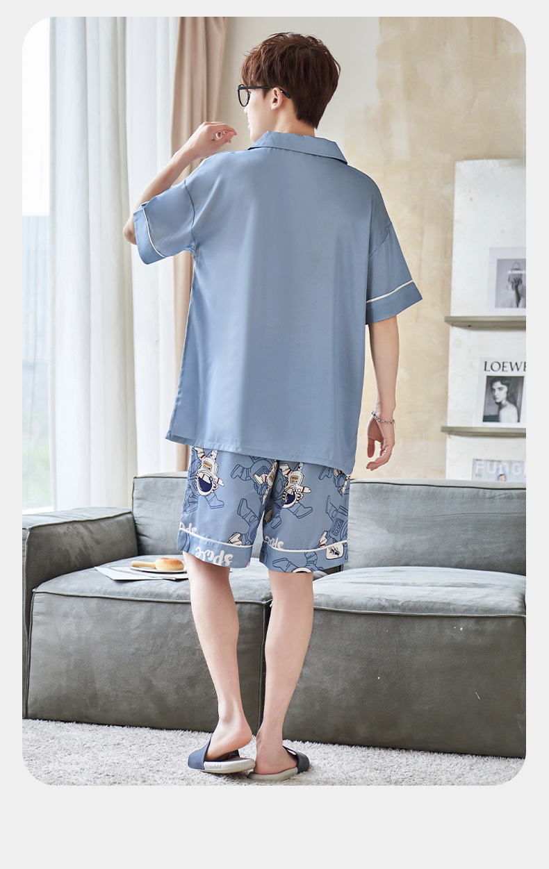男士睡衣夏季冰雪丝薄款短袖夏天卡通青少年可外穿大码家居服套装