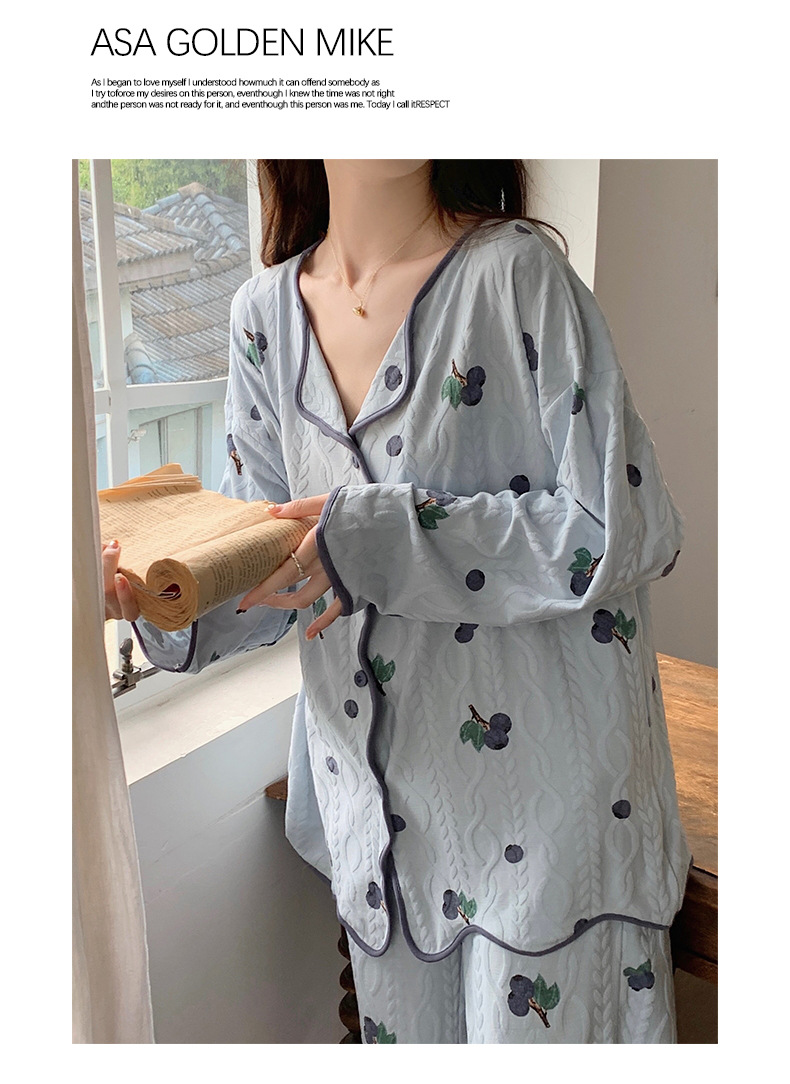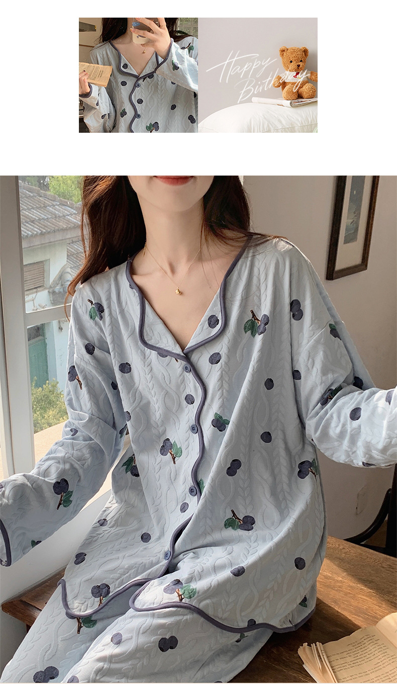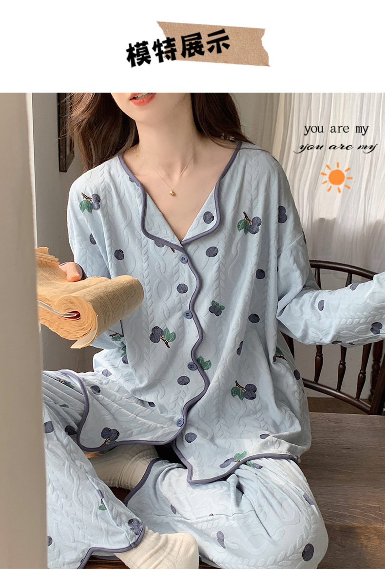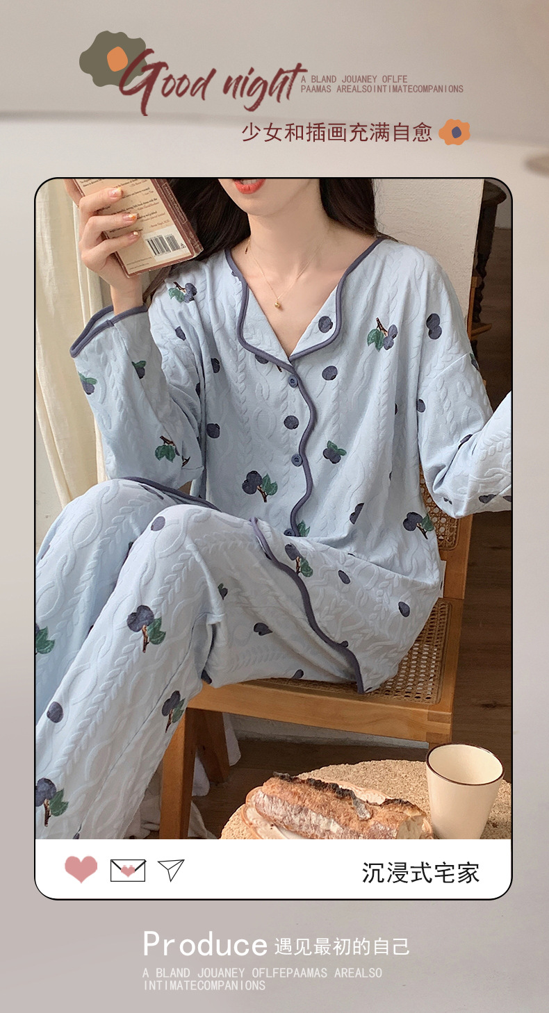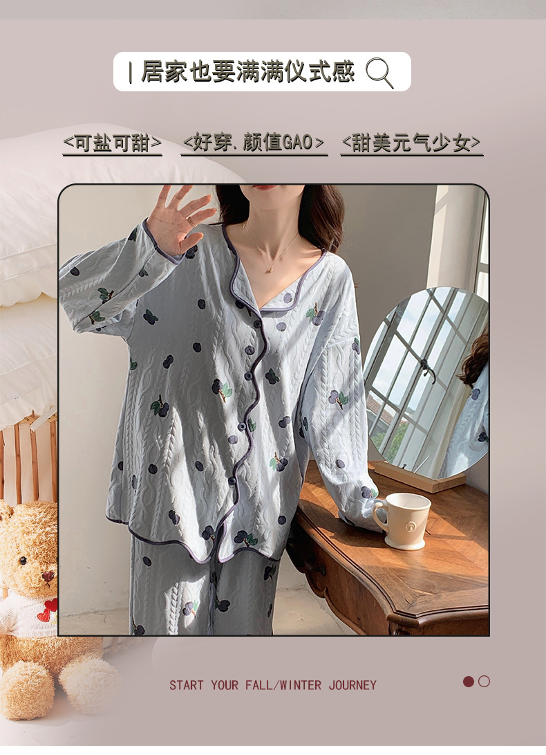 睡衣女新款针织棉春秋冬长袖开衫韩版宫廷可爱风家居服可外穿批发
