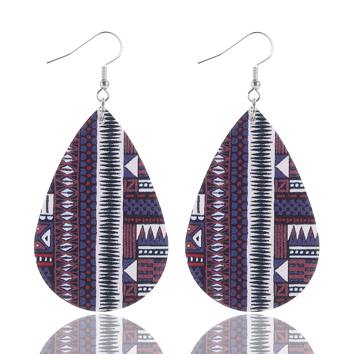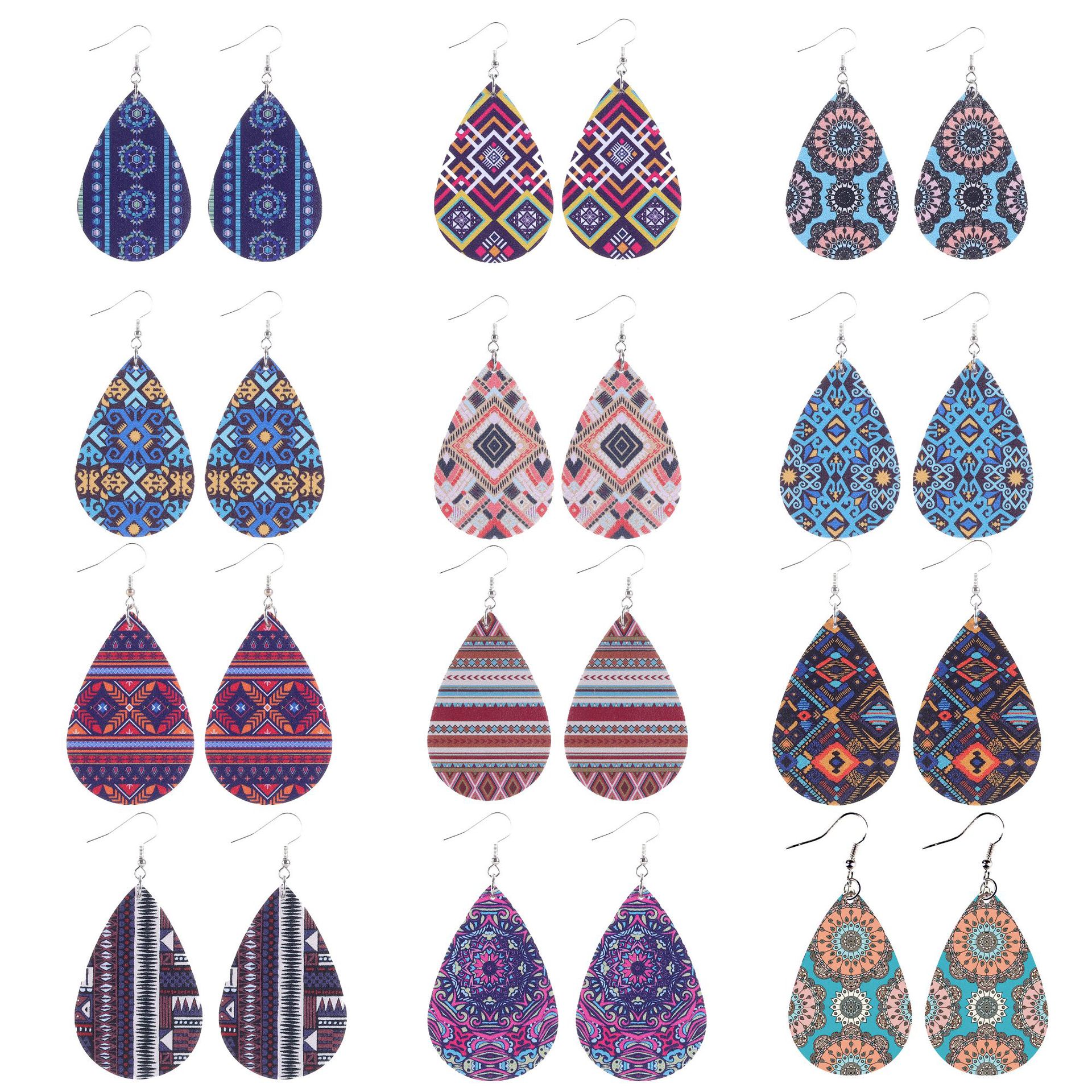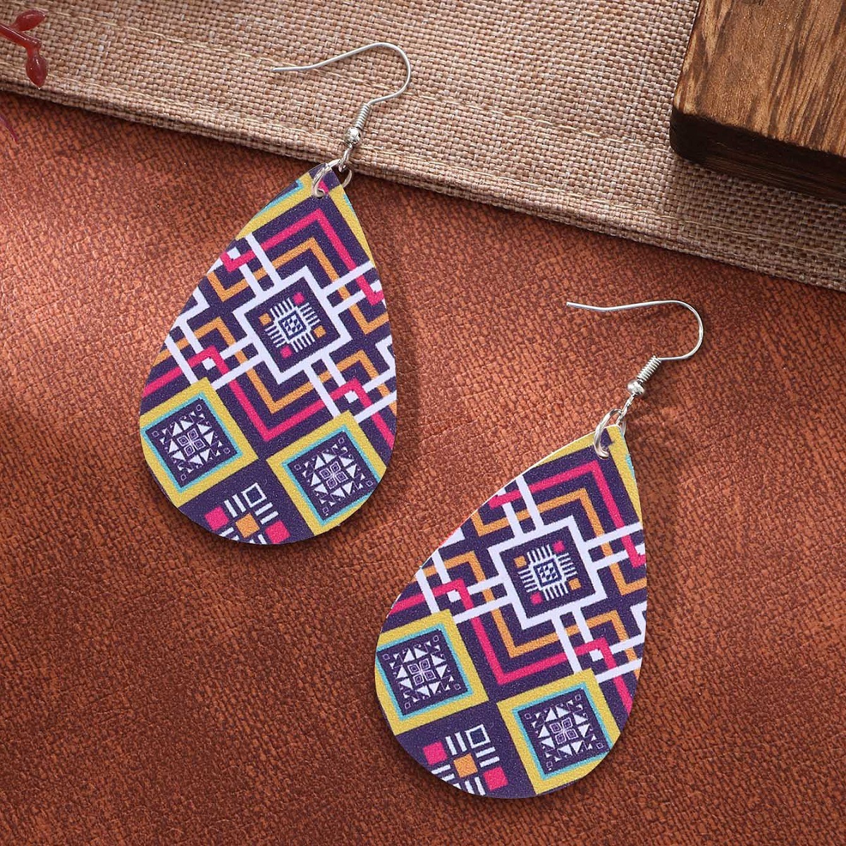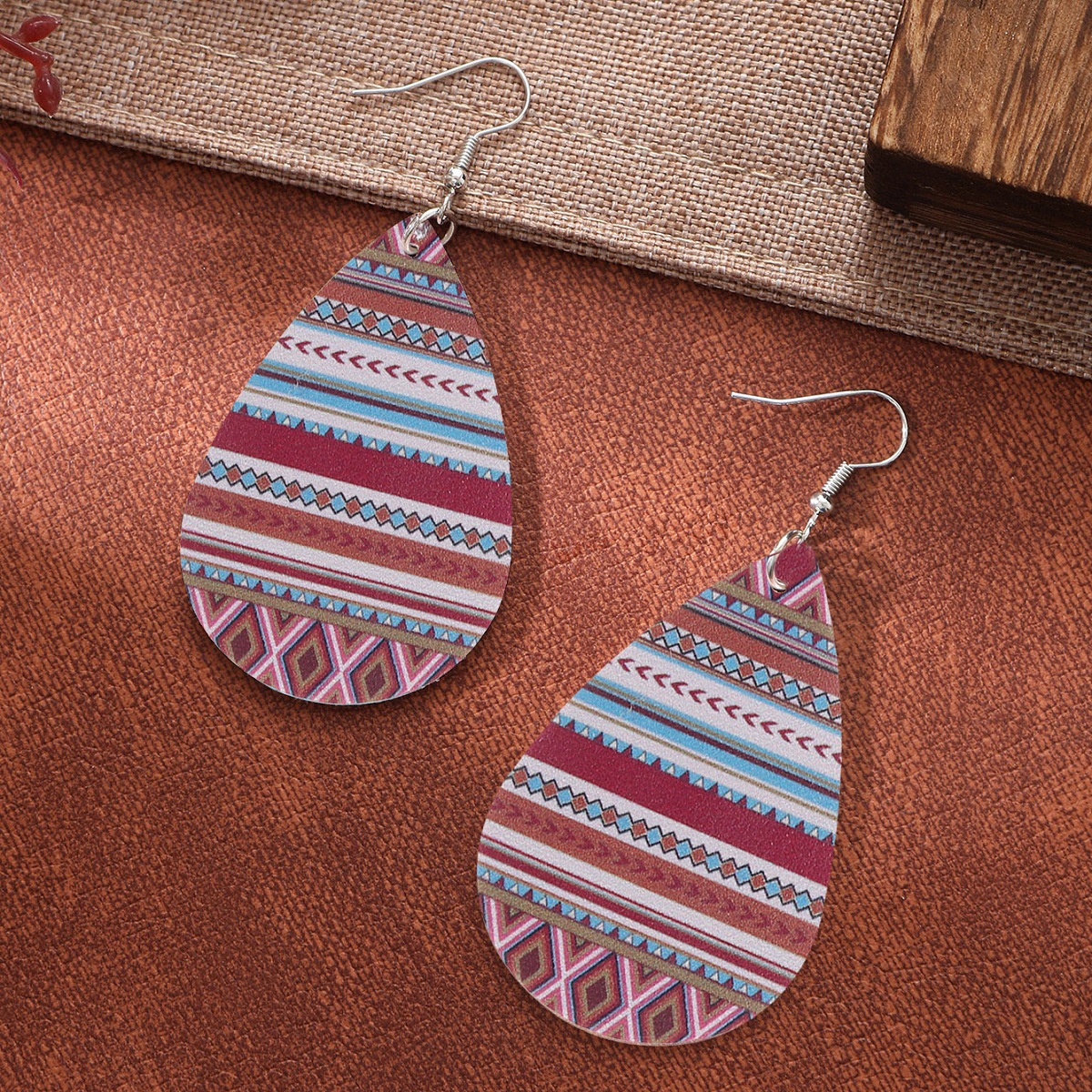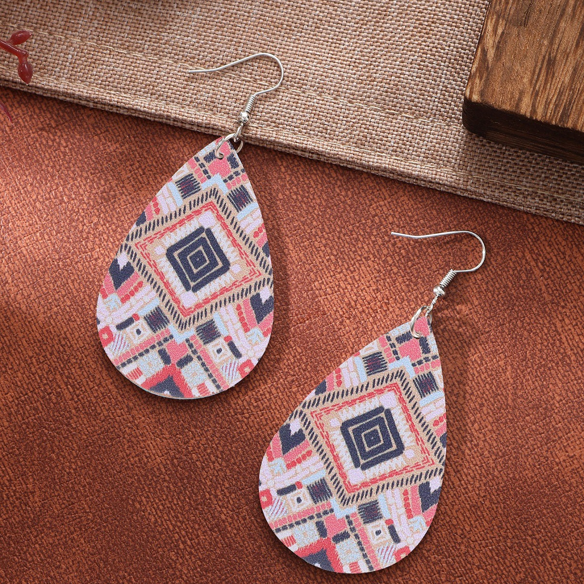 水滴形皮革耳环条纹花圈方块时尚简单甜酷跨境欧美亚马逊