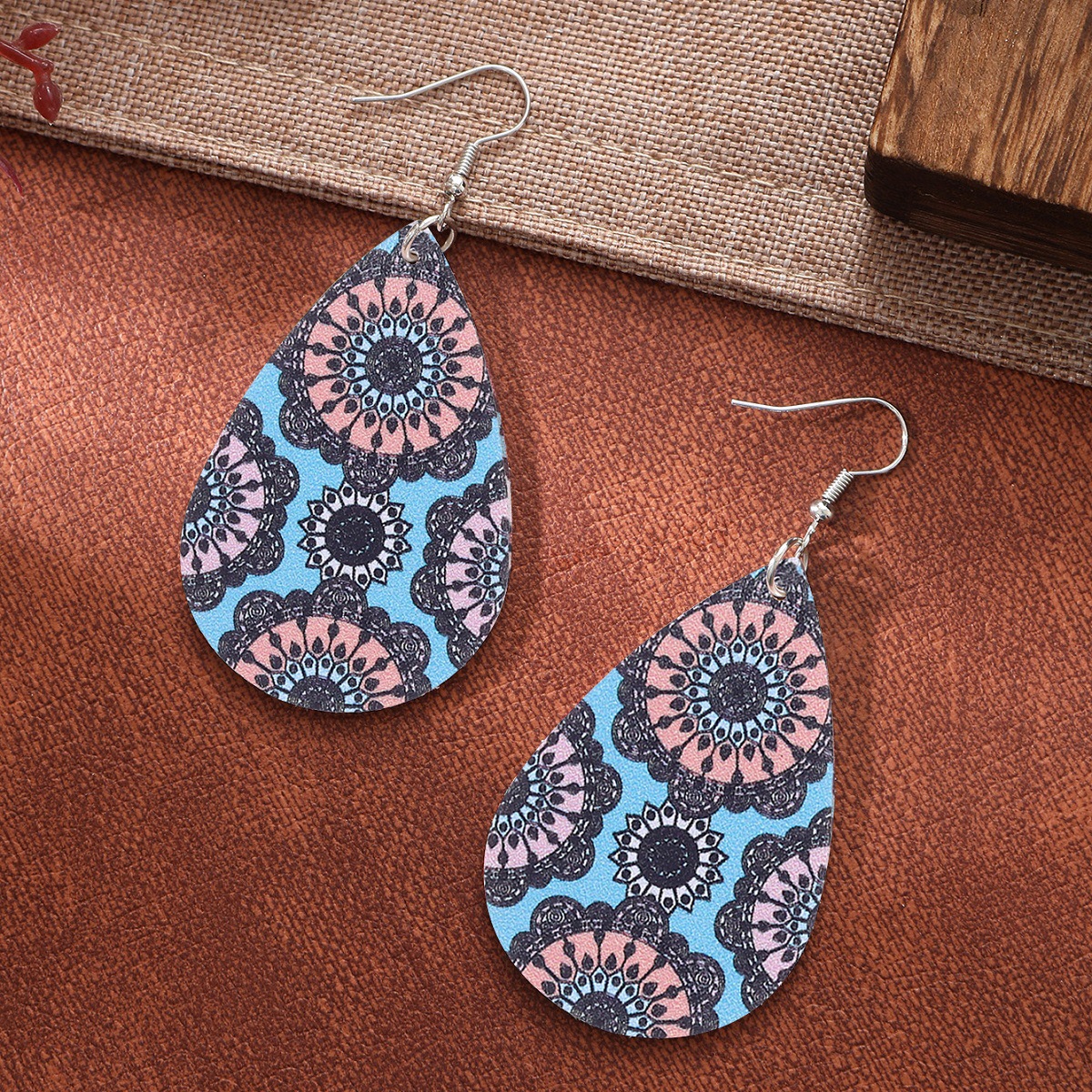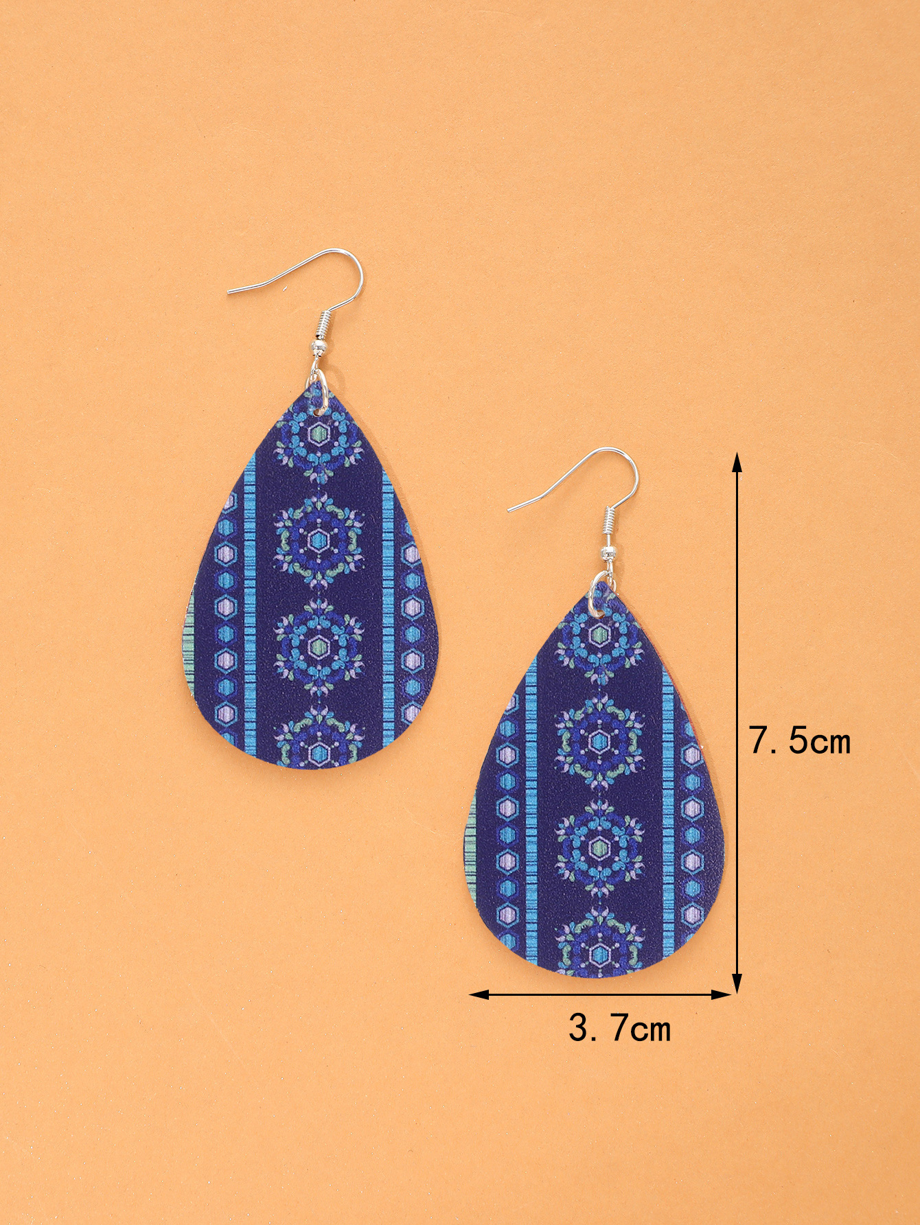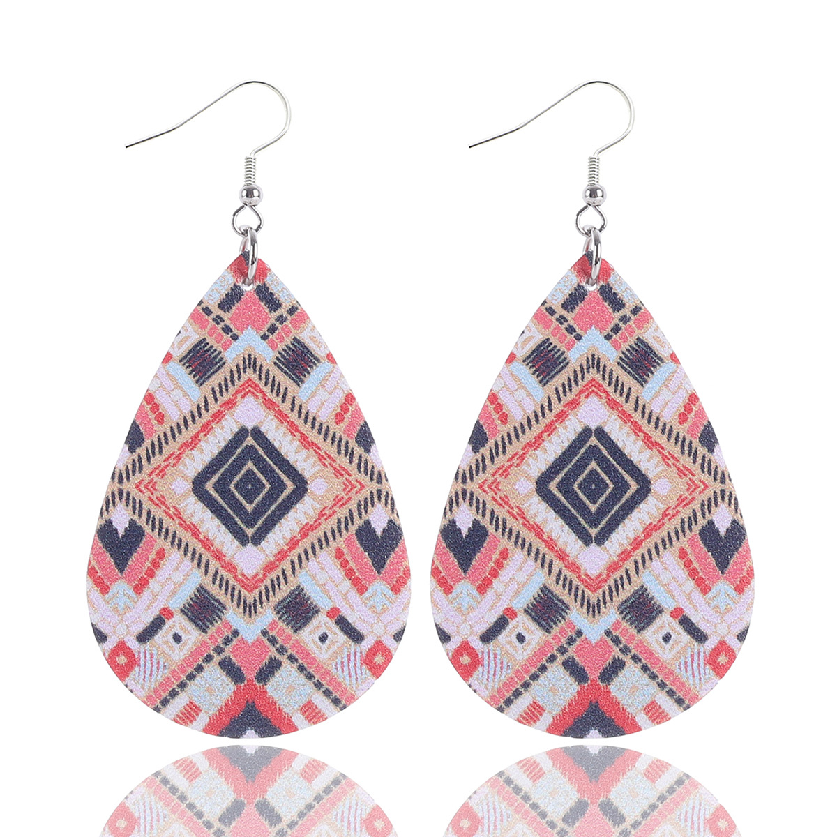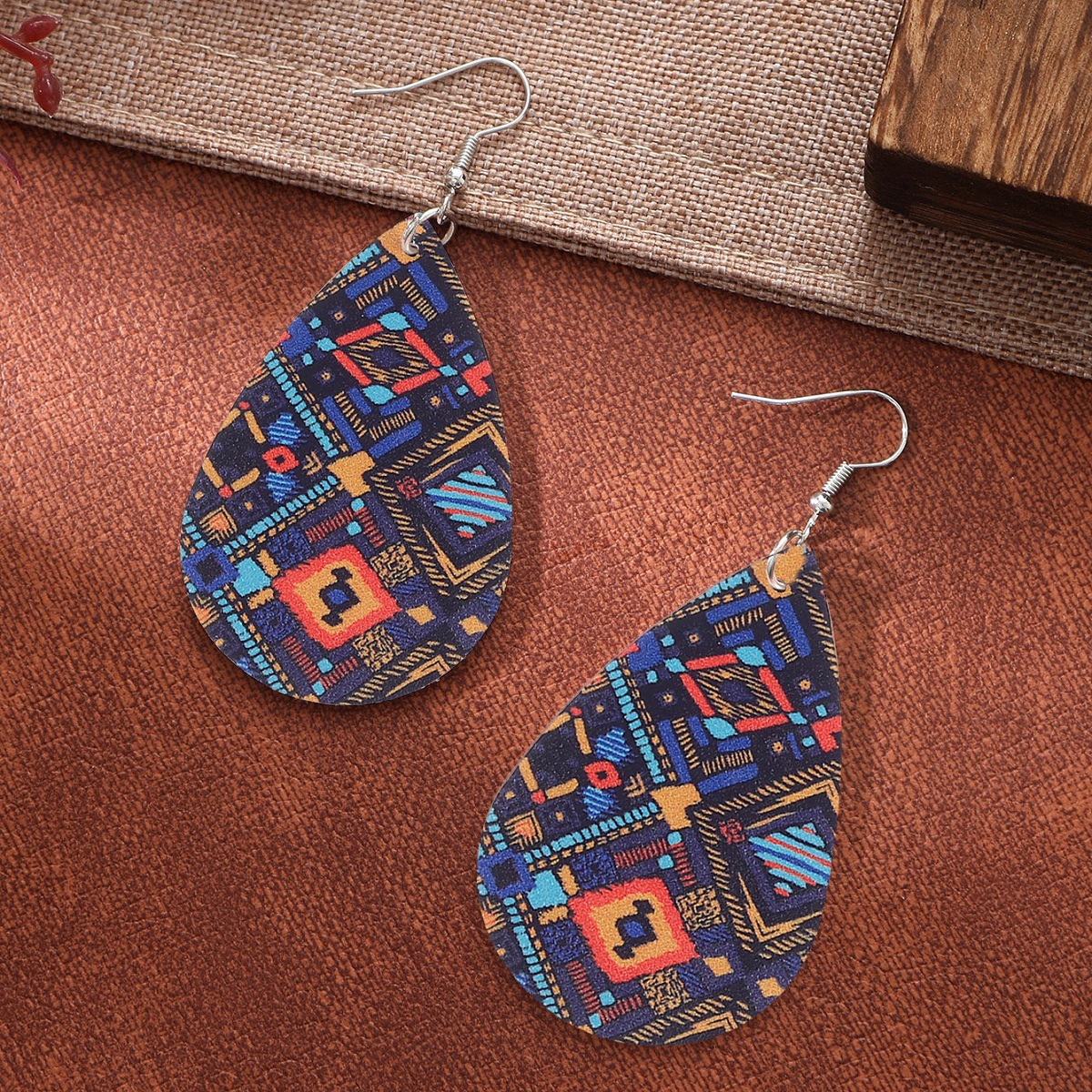 水滴形皮革耳环条纹花圈方块时尚简单甜酷跨境欧美亚马逊