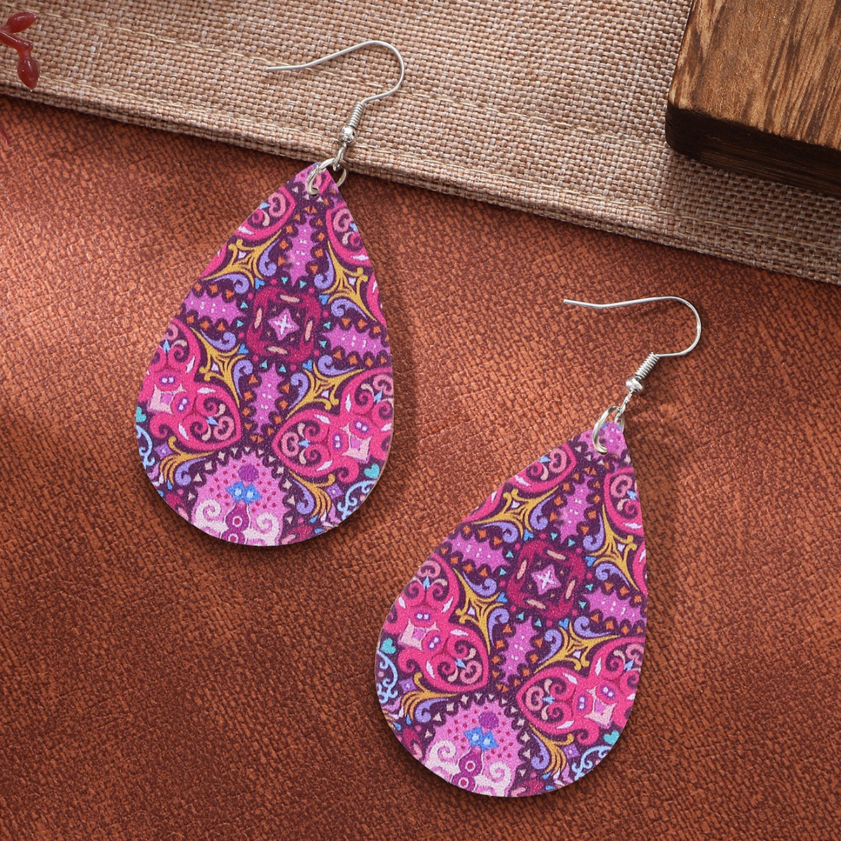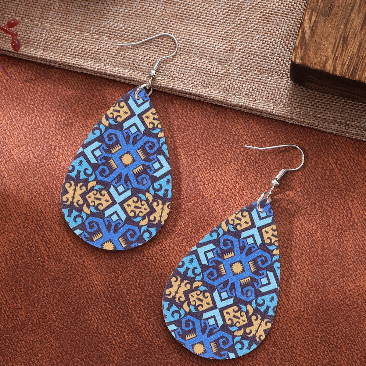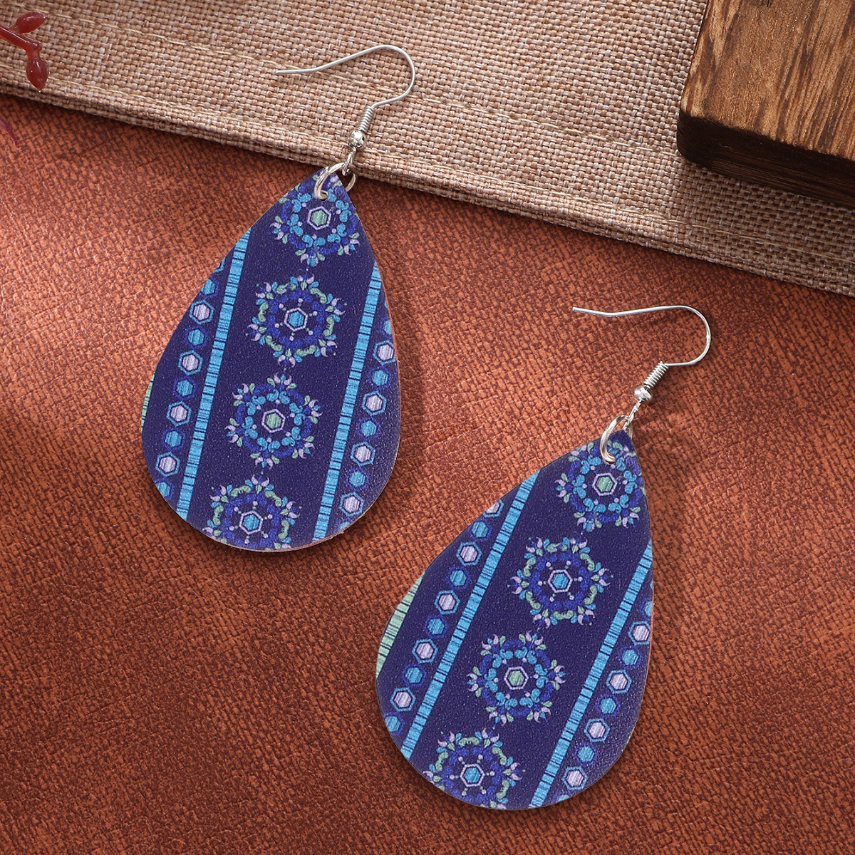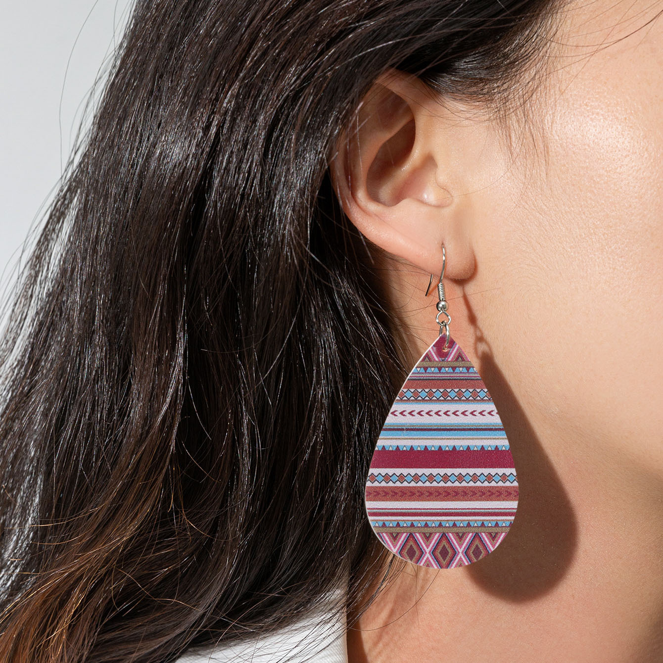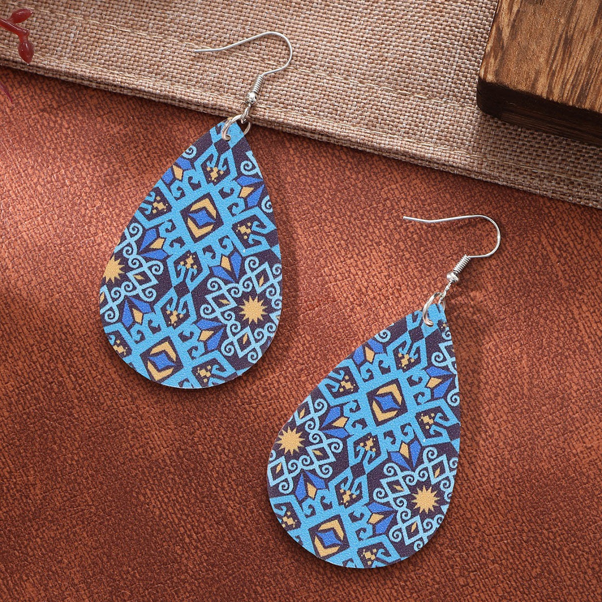 水滴形皮革耳环条纹花圈方块时尚简单甜酷跨境欧美亚马逊