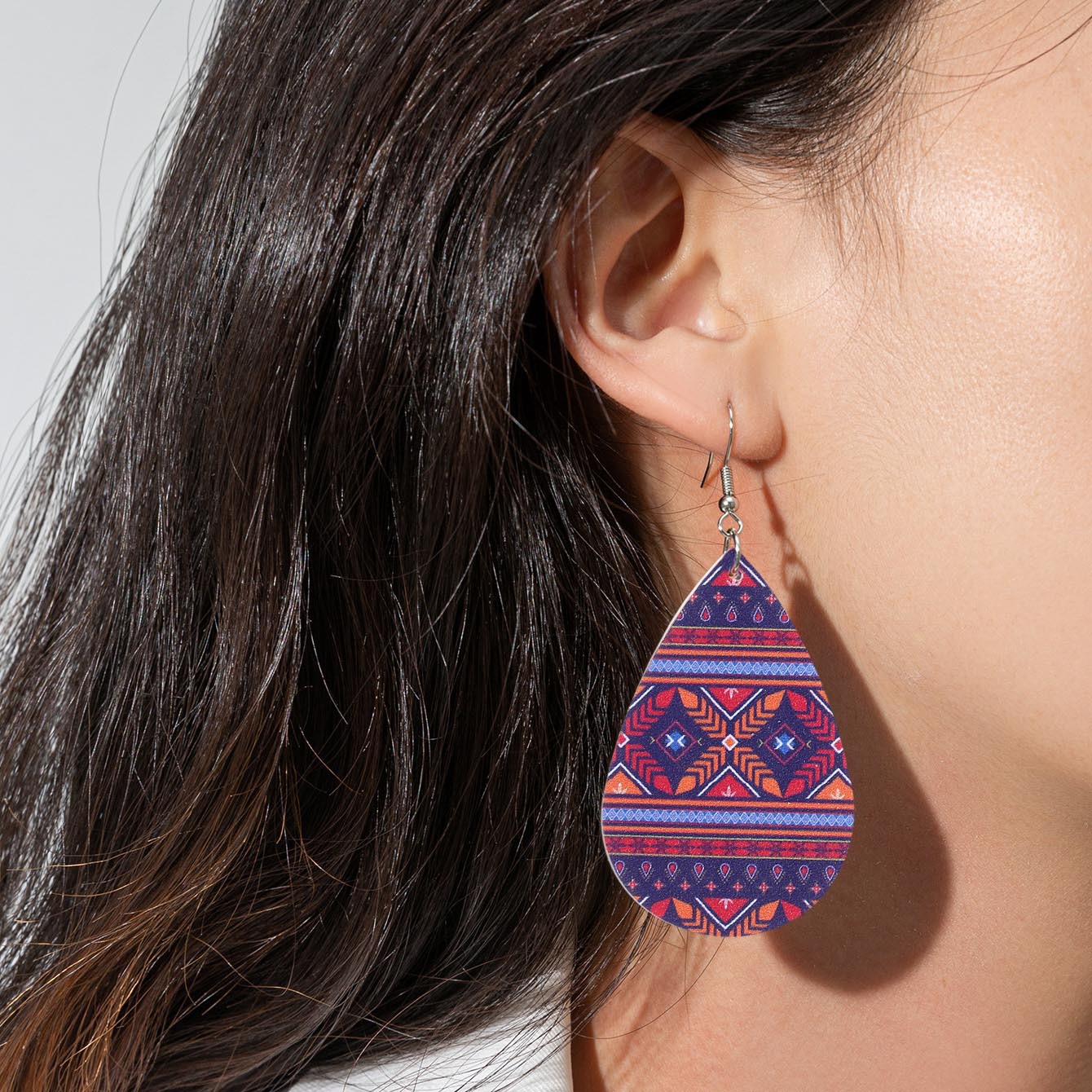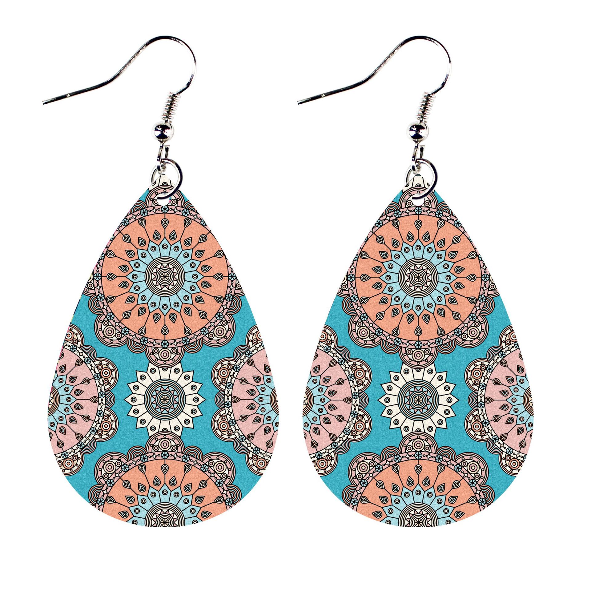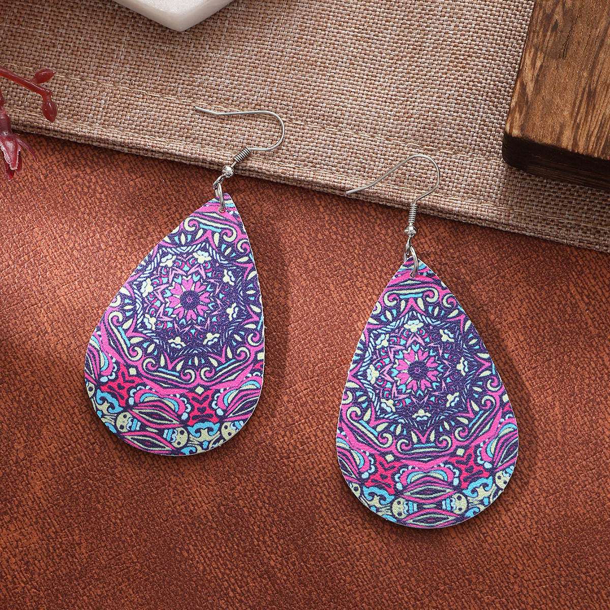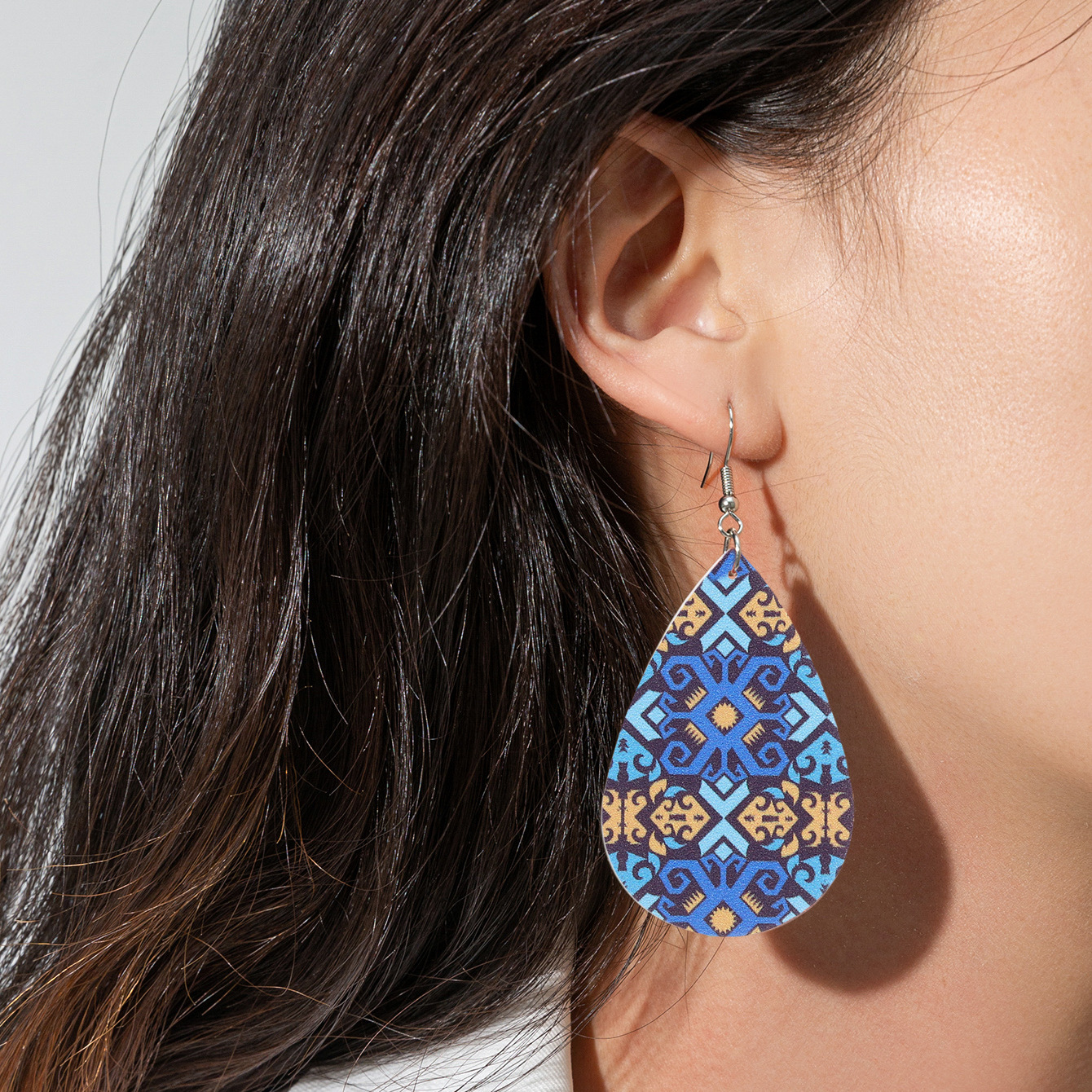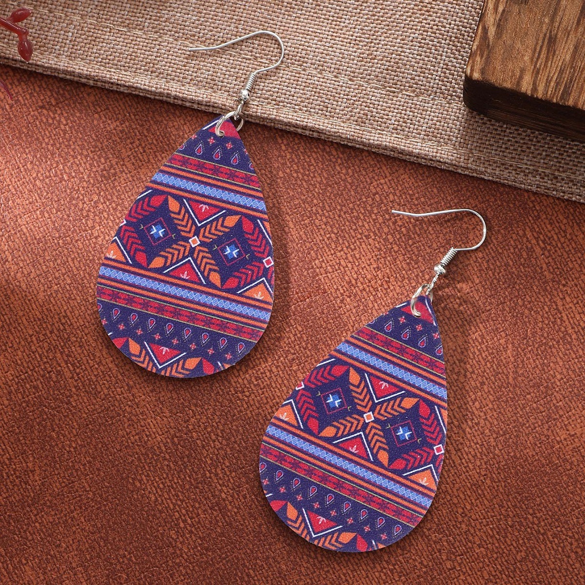 水滴形皮革耳环条纹花圈方块时尚简单甜酷跨境欧美亚马逊