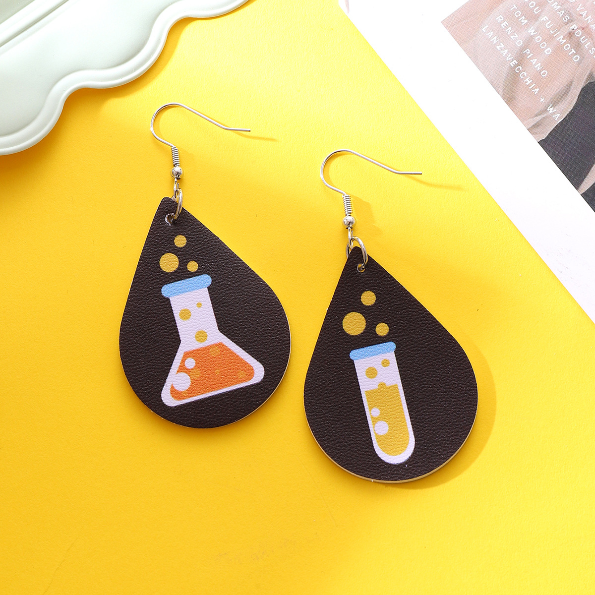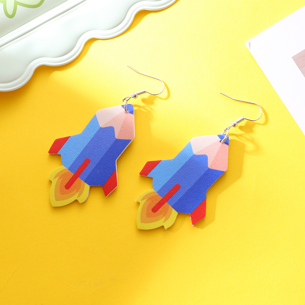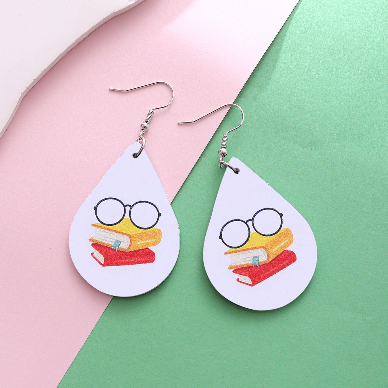教师节苹果铅笔火箭书本教育水滴校车元素皮革耳环女士