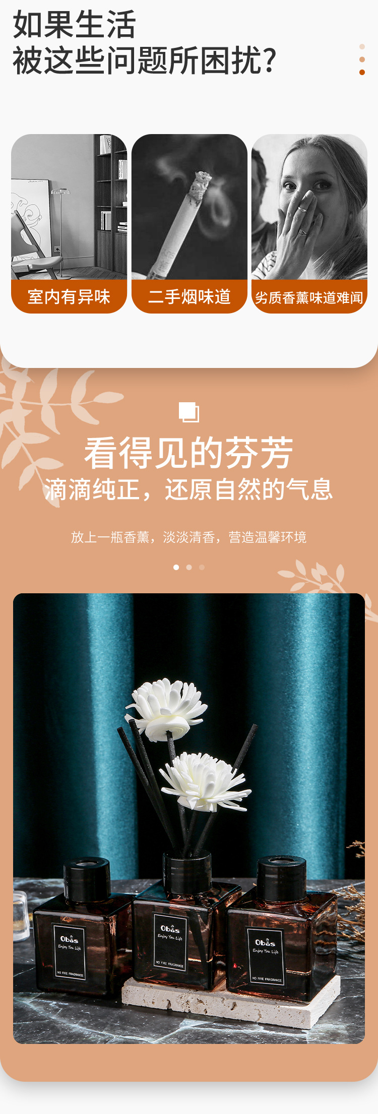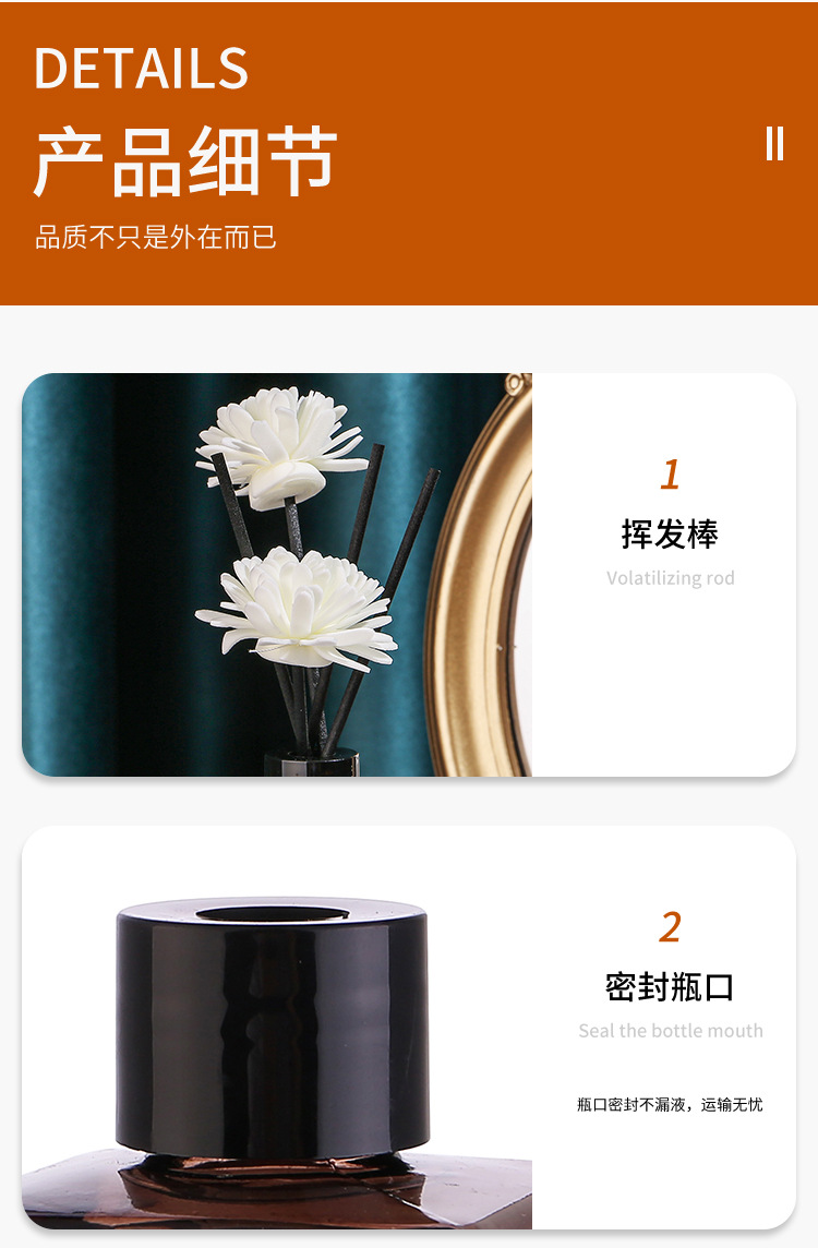 小四方香薰瓶家用室内无火藤条香薰套装厕所除臭干花持久空气清新