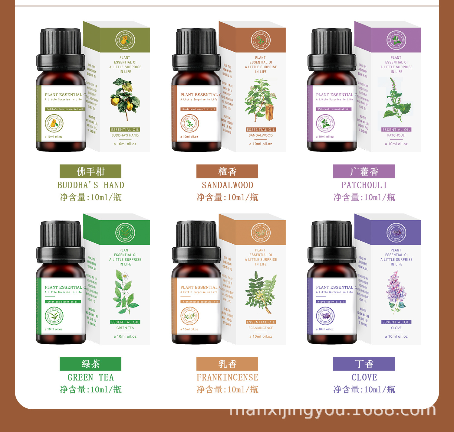 新款跨境植物水溶性香薰精油 10ML加湿器扩香石精油 酒店香氛精油