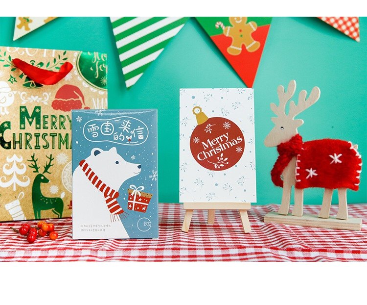 创意圣诞节圣诞老人快乐白熊明信片卡片礼物装饰