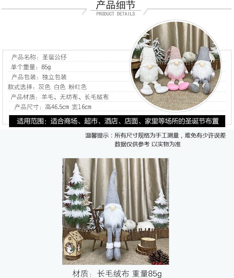 圣诞节装饰用品北欧风装饰公仔 长毛绒针织无脸老人娃娃橱窗摆件