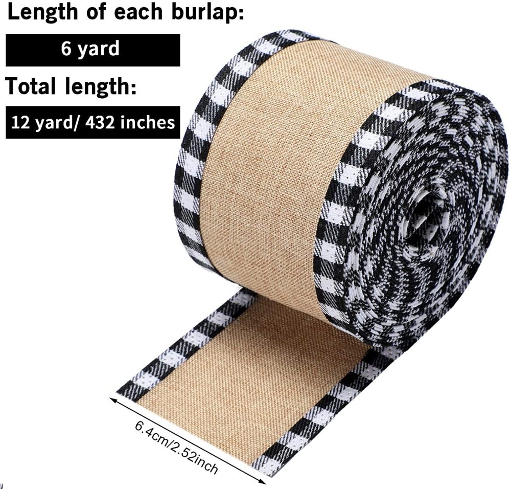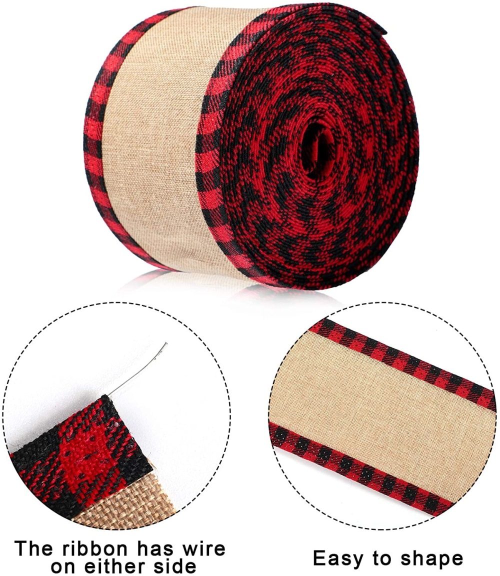 圣诞仿麻布格子包边织带圣诞节花环藤条装饰品蝴蝶结礼盒礼品包装