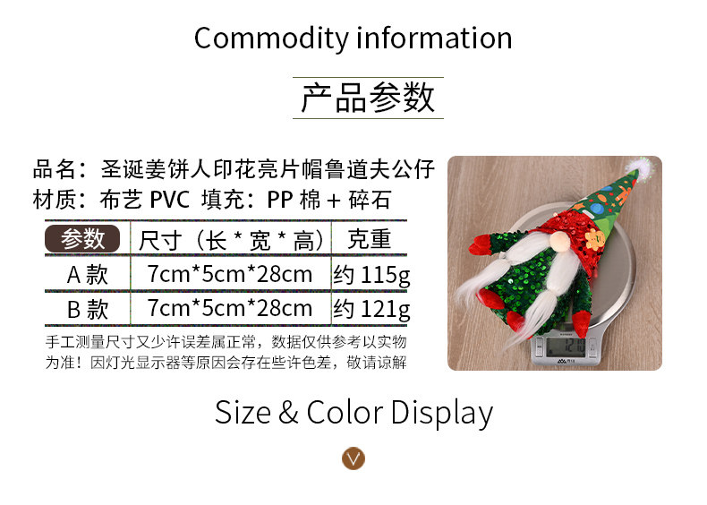 圣诞节装饰用品 姜饼人印花帽亮片公仔橱窗桌面摆件活动布置