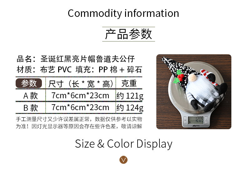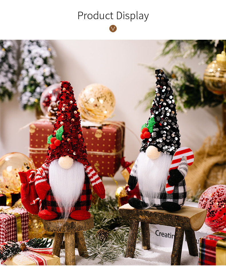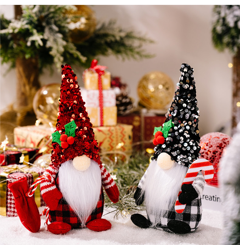 圣诞节装饰用品亮片帽印花无脸娃娃公仔活动场景橱窗桌面摆件