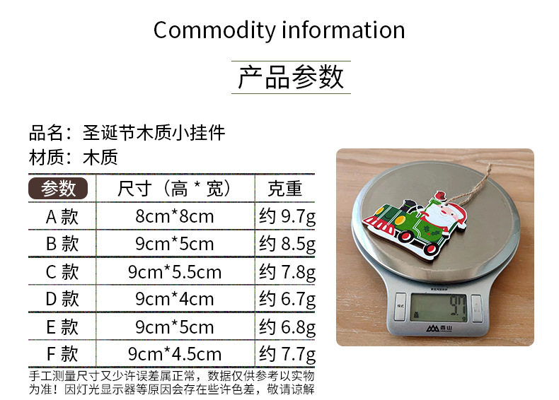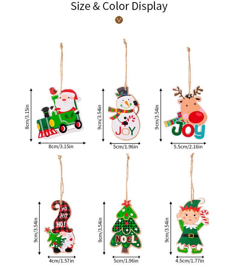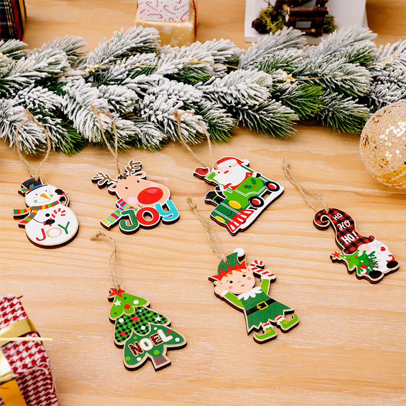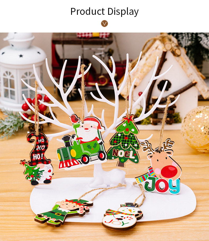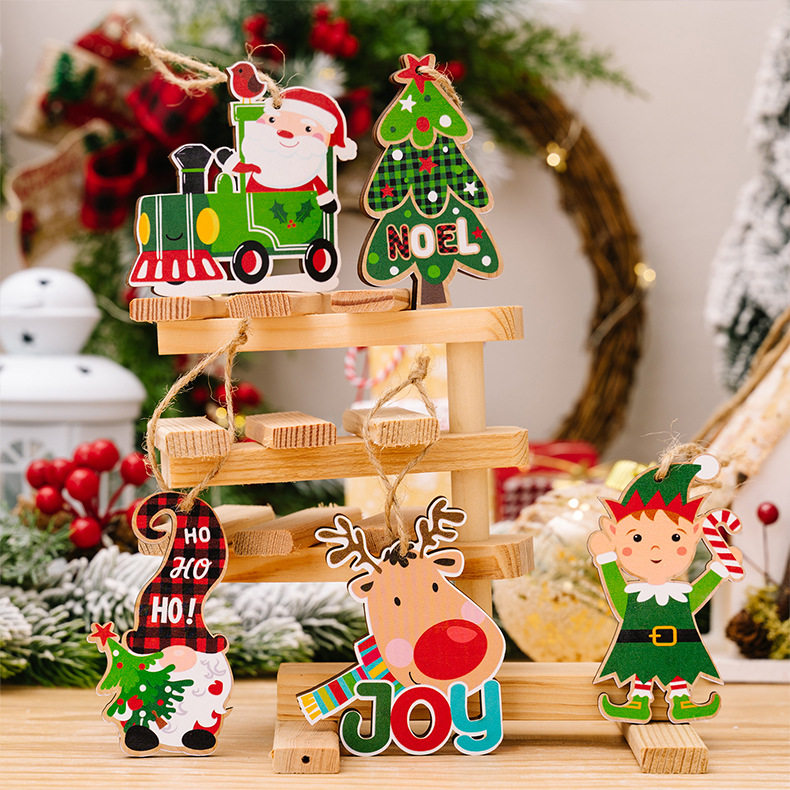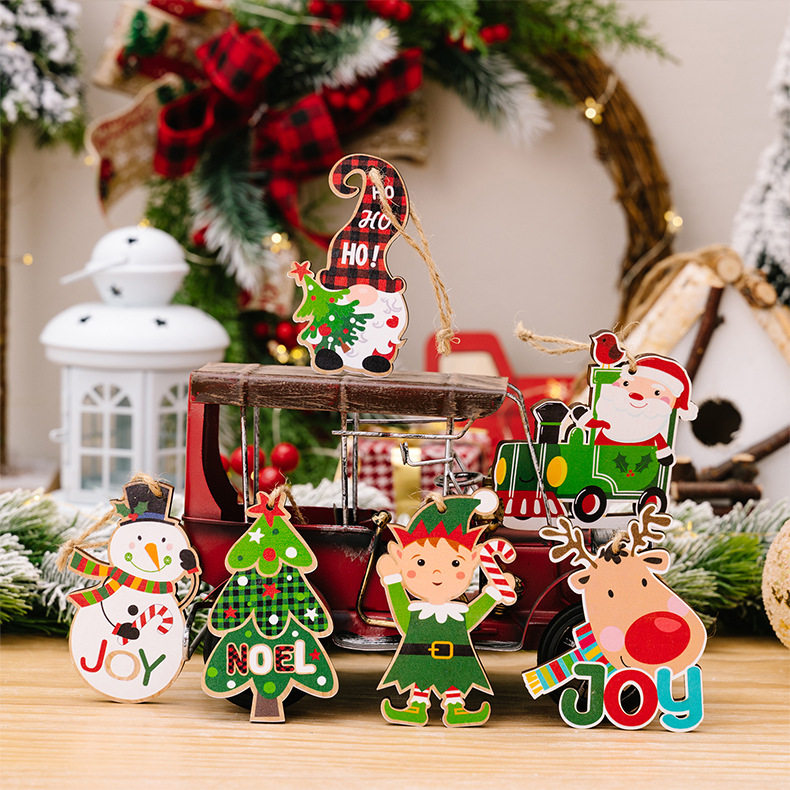 圣诞节装饰用品木制单面彩色挂件圣诞老人雪人小树套餐树挂件
