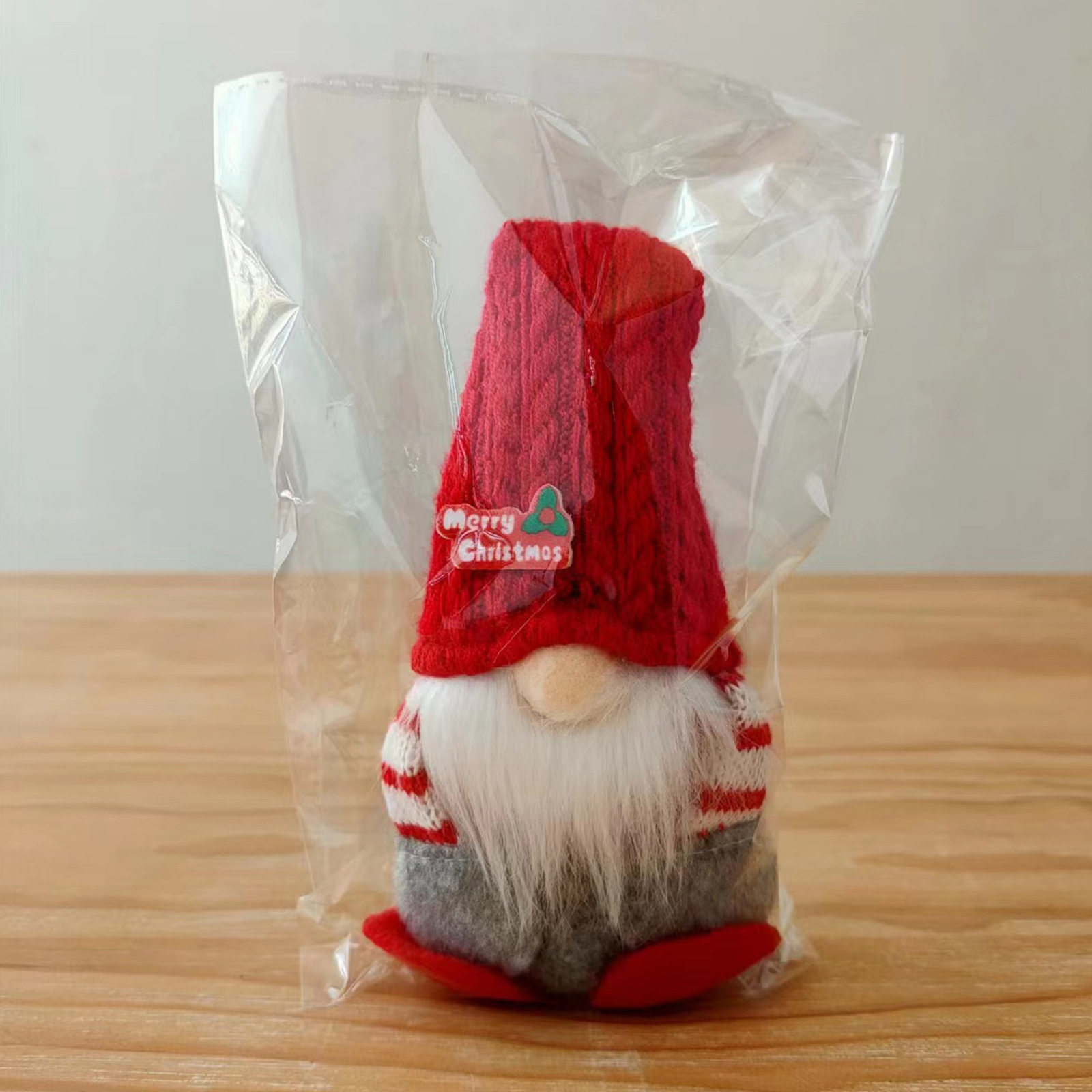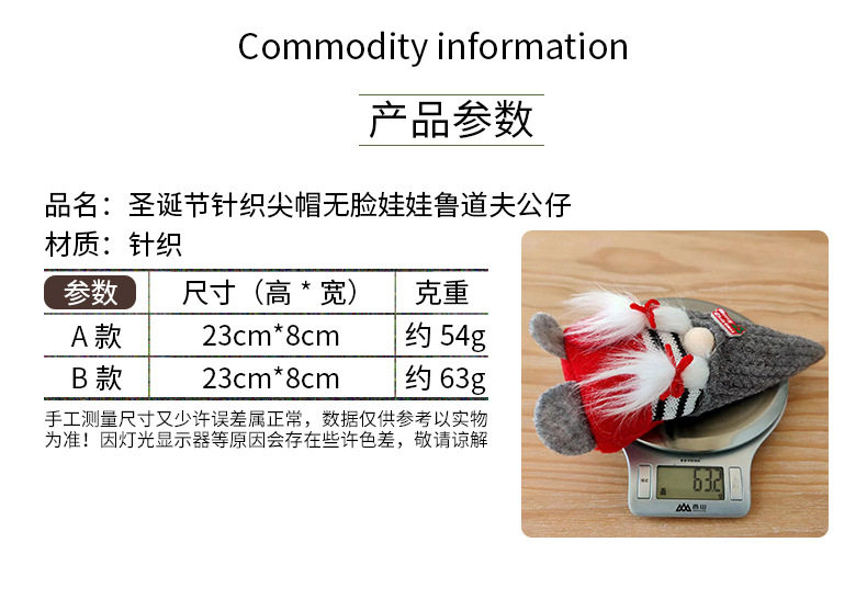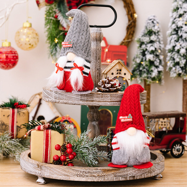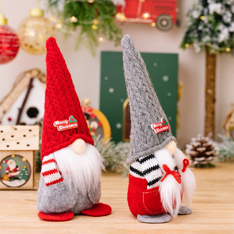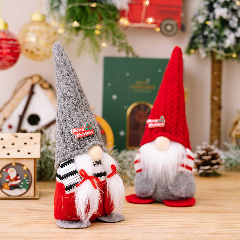 圣诞节装饰用品针织尖帽无脸娃娃公仔桌面橱窗节日场景摆件
