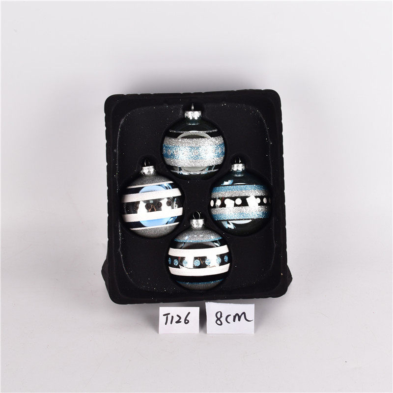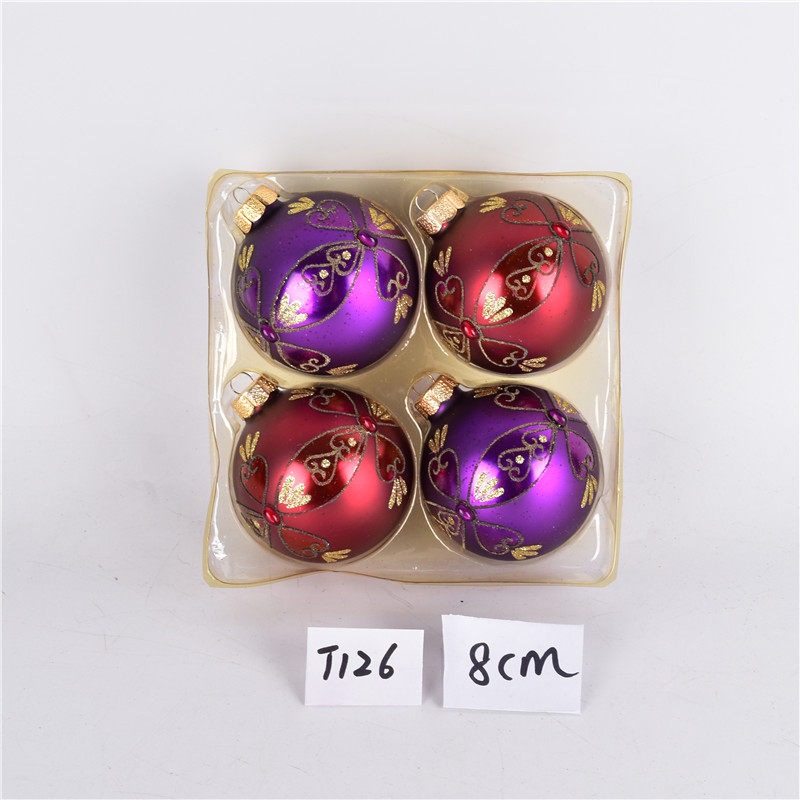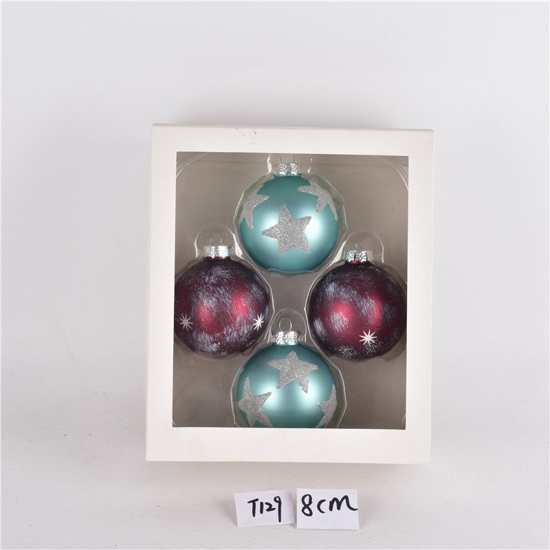 圣诞装饰品玻璃球圣诞树场景布置装扮吊球盒装彩绘圣诞球挂件厂家