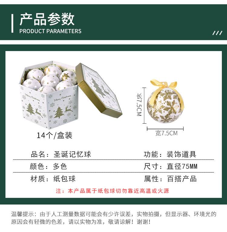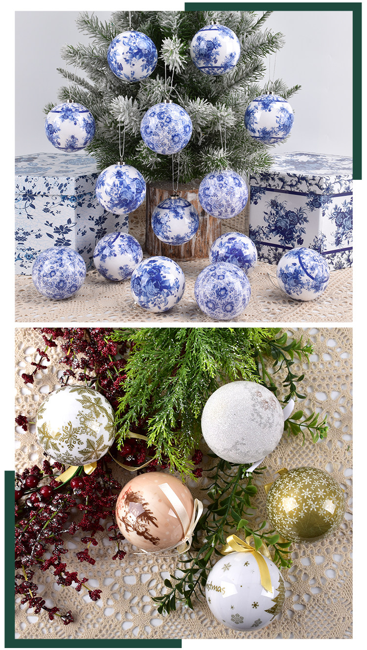圣诞装饰品创意彩绘雪花纸包球记忆球挂饰圣诞树场景布置吊球挂件