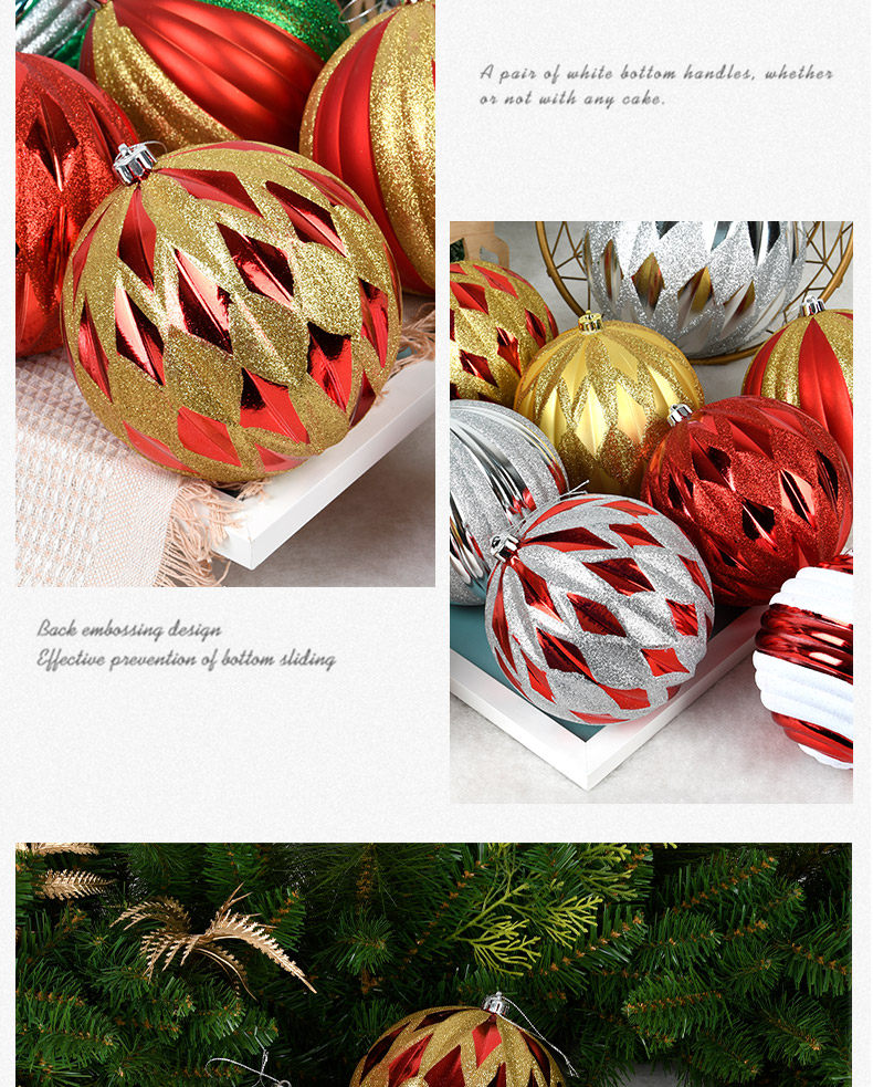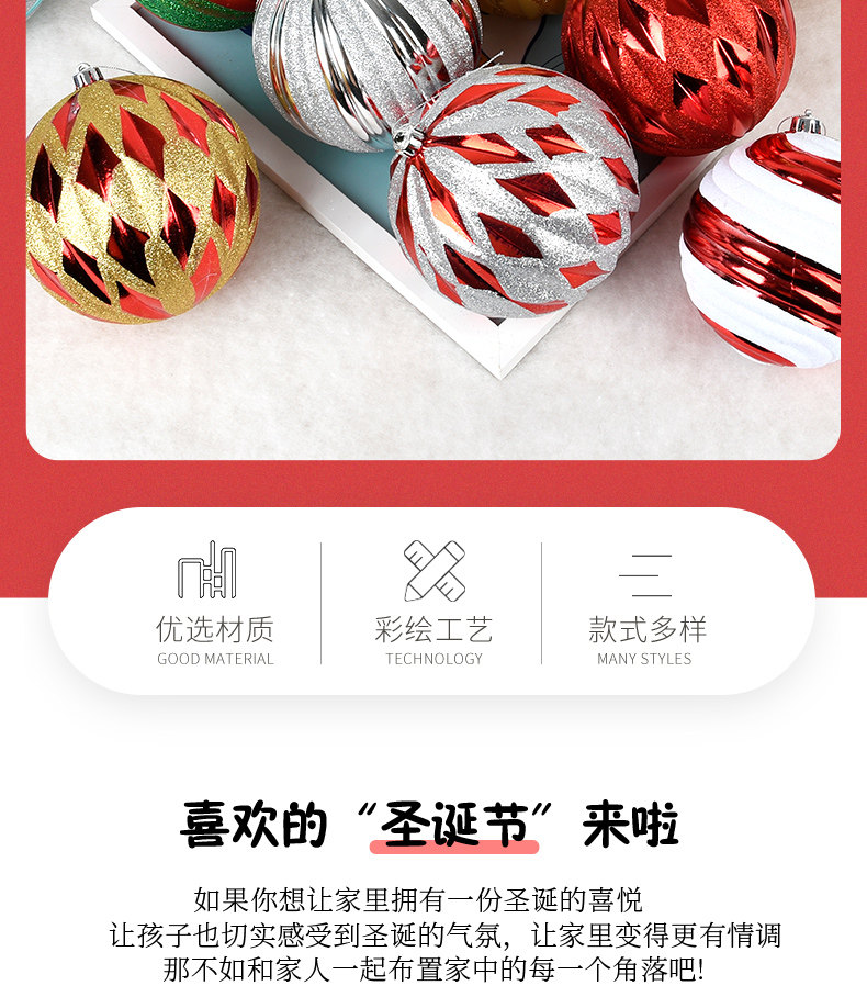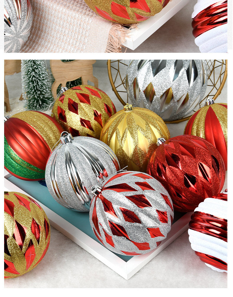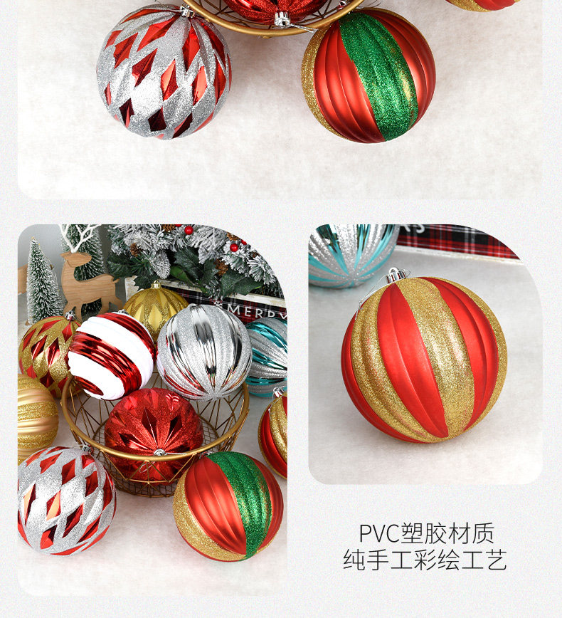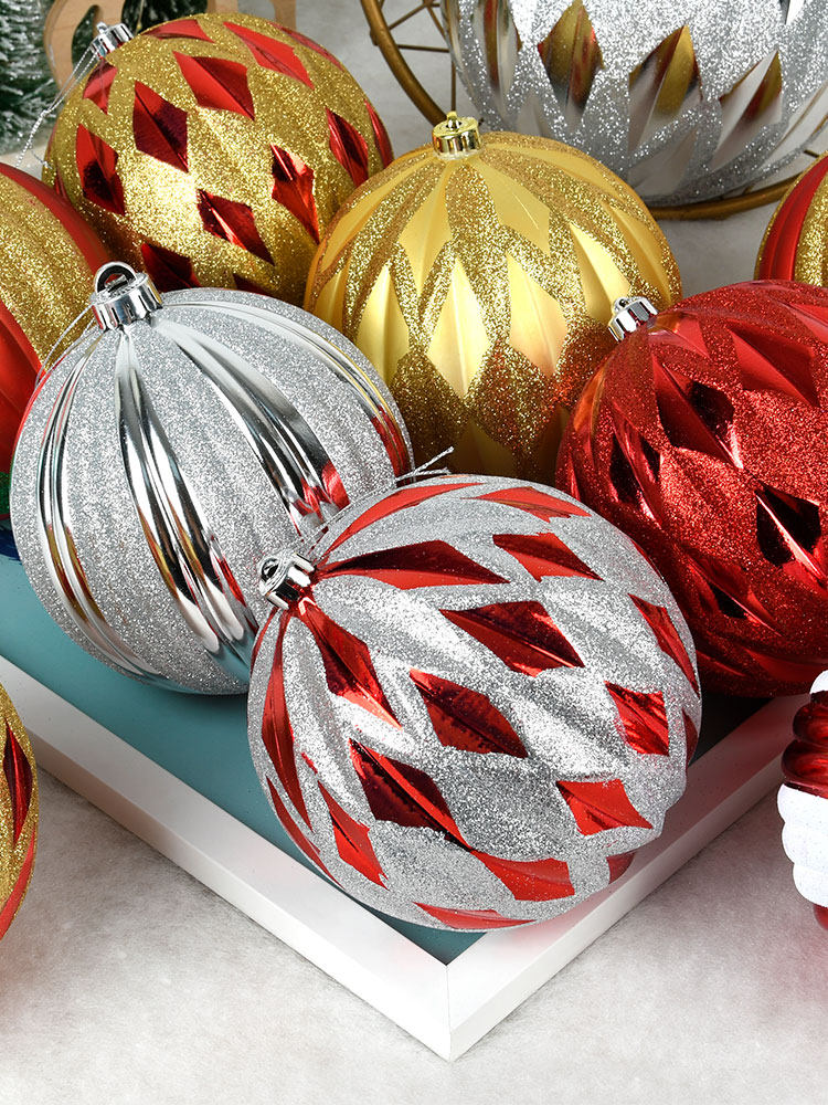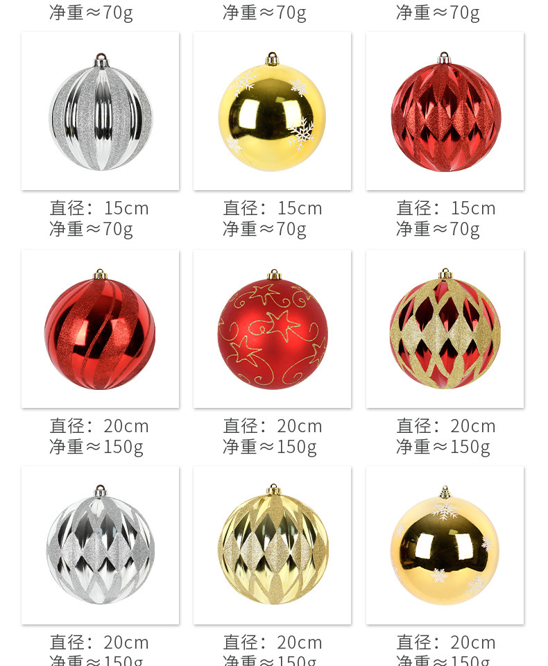圣诞节装饰塑胶球金银红彩绘格子球美陈场景布置吊饰彩球15-20CM