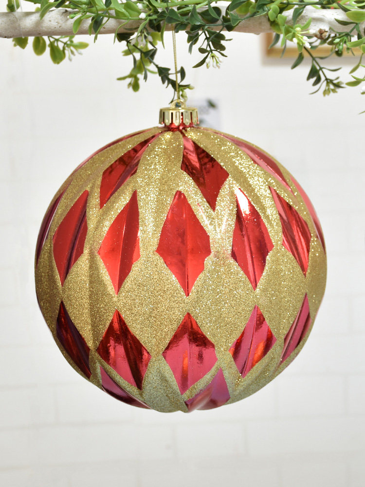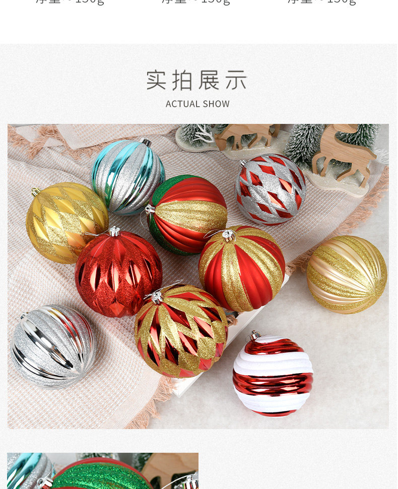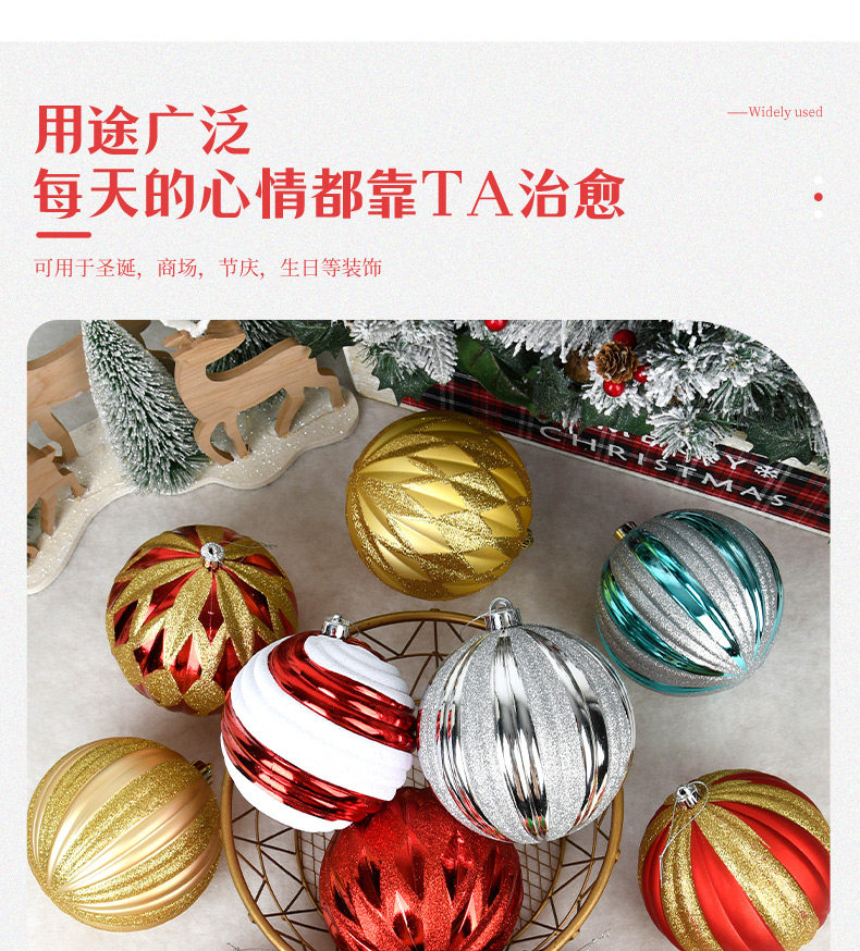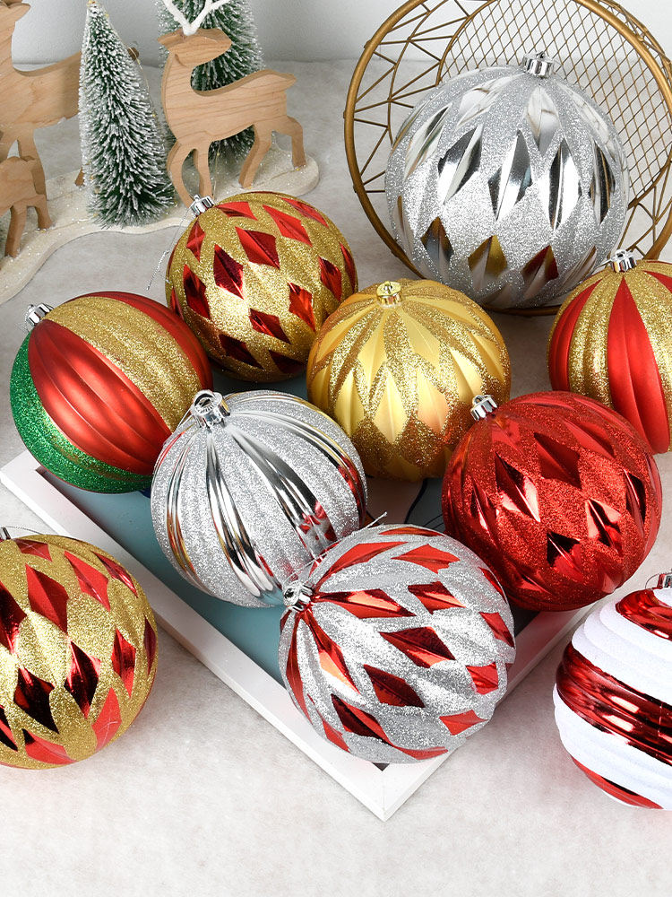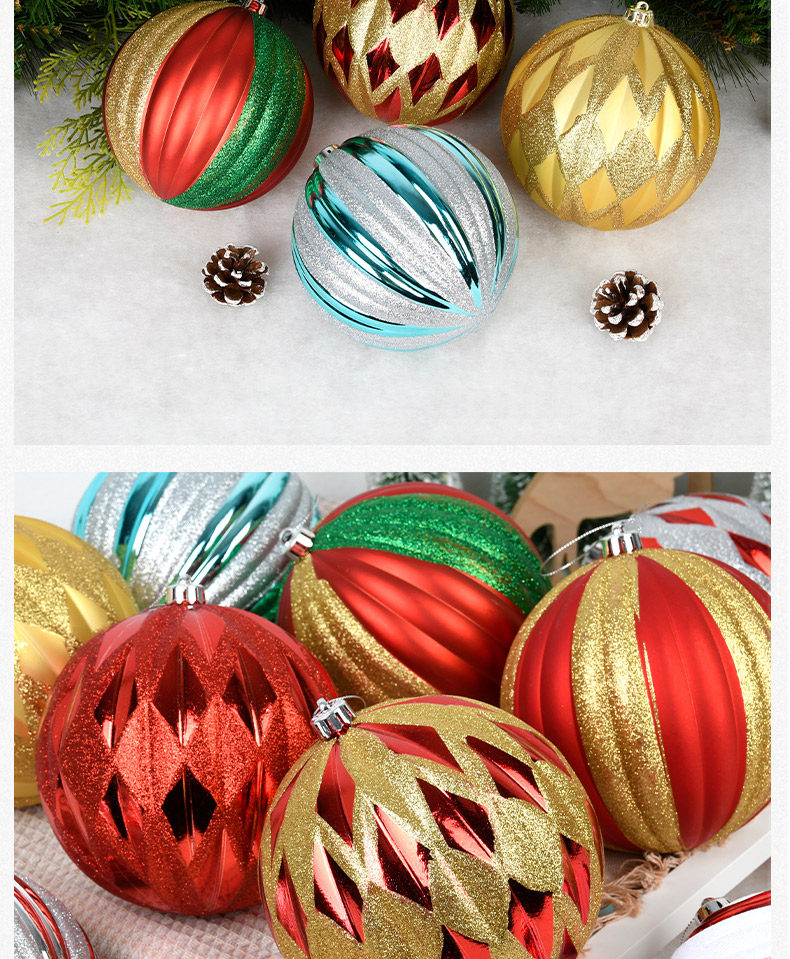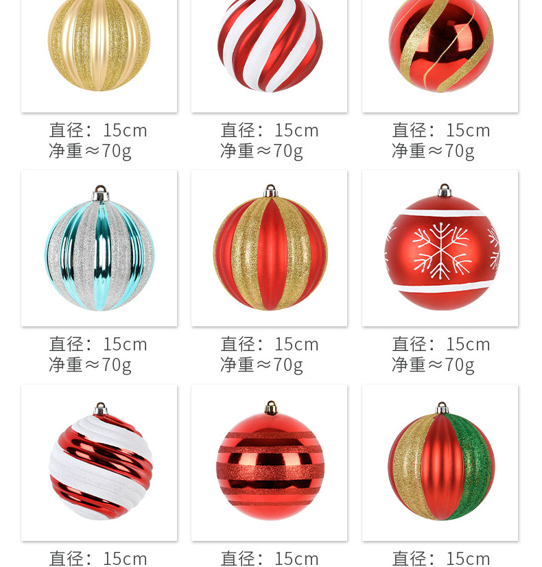 圣诞节装饰塑胶球金银红彩绘格子球美陈场景布置吊饰彩球15-20CM