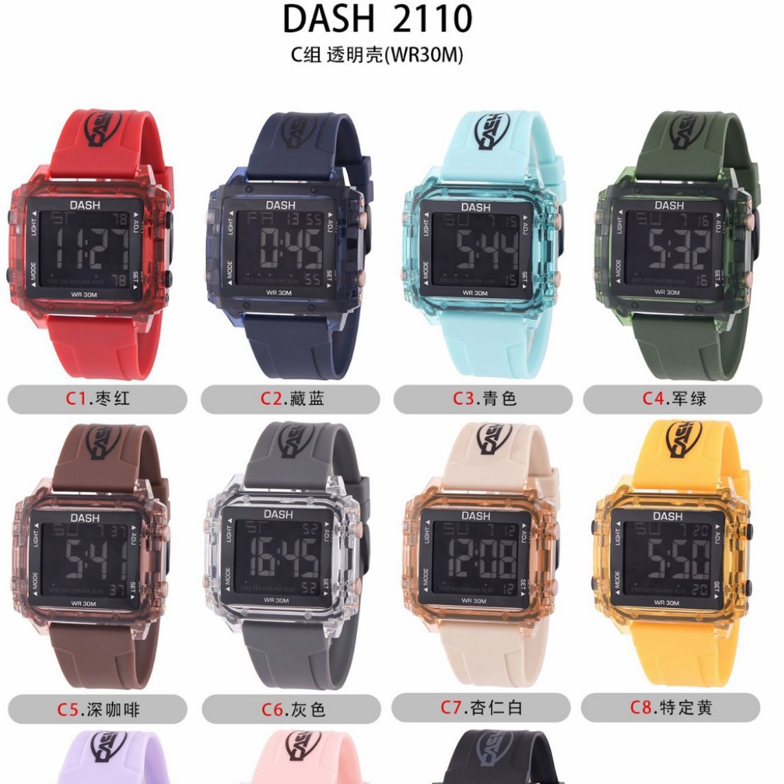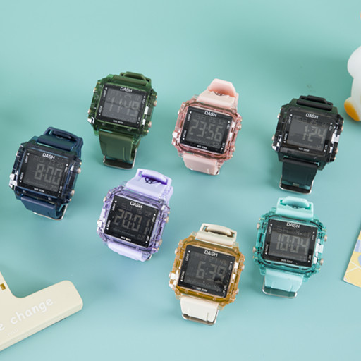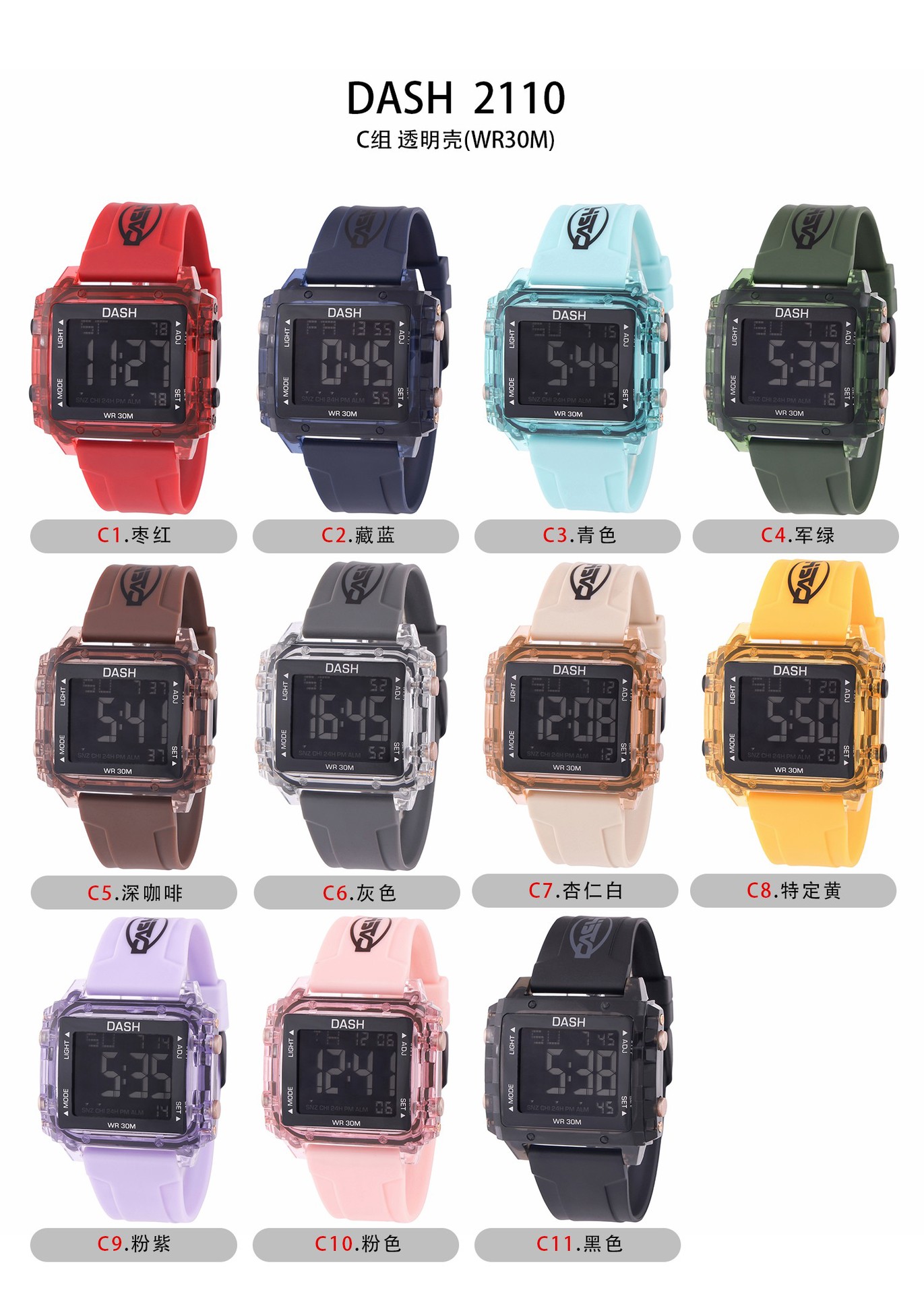 DASH 2110盒装电子表透明新款学生男女运动防水多功能手表礼盒