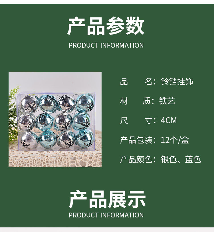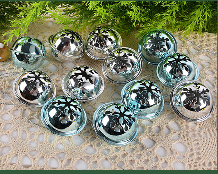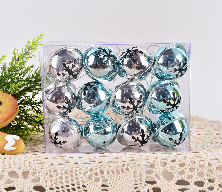 圣诞节装饰用品3CM蓝银色铁艺铃铛挂饰幼儿园儿童道具礼品12个装