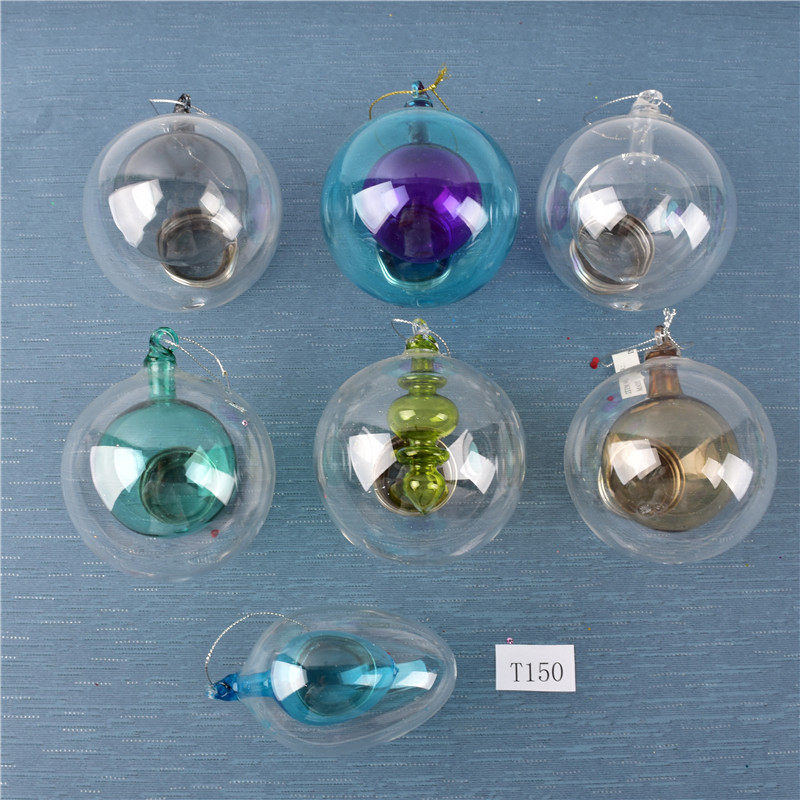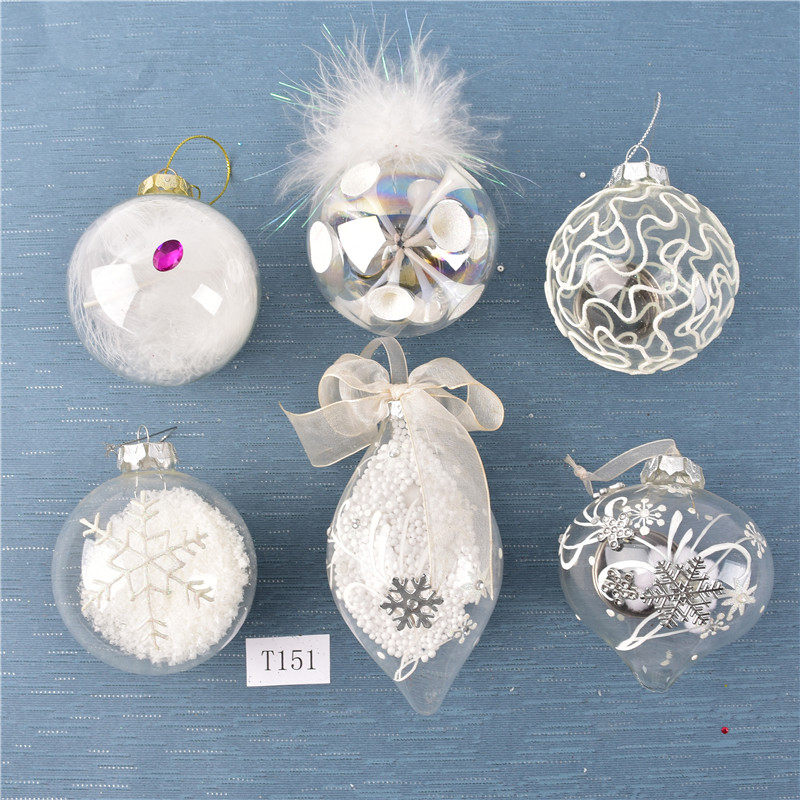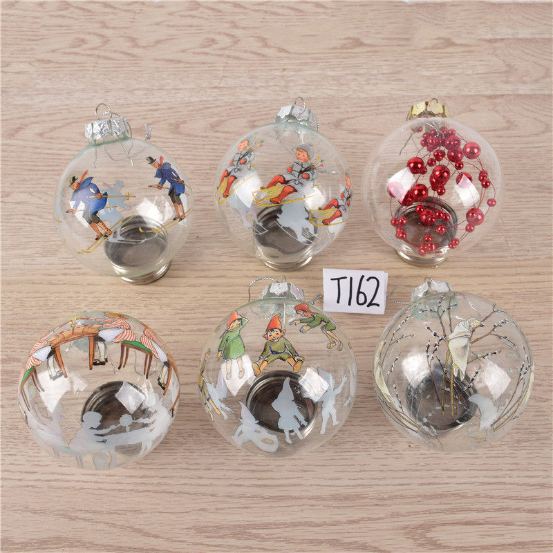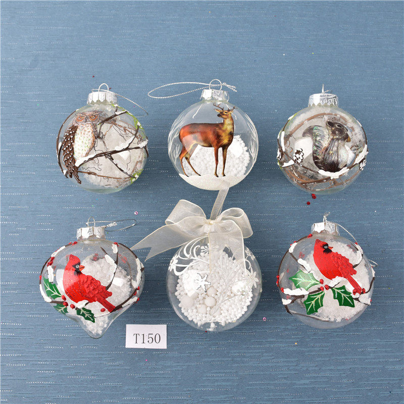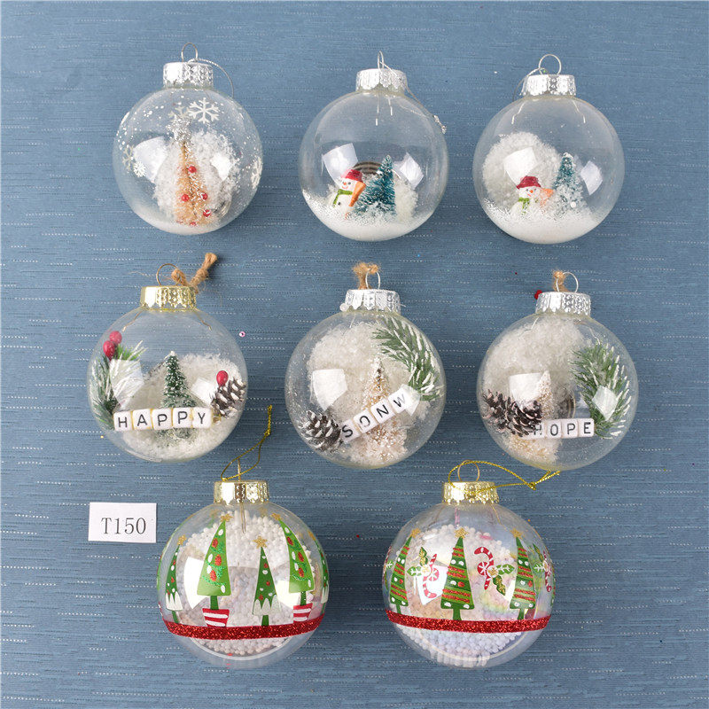 圣诞装饰内置景观透明玻璃彩绘球挂饰圣诞树场景布置装扮吊球挂件