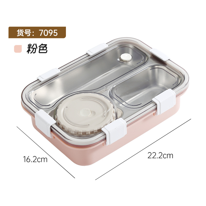北欧简约风分格带汤碗餐盒 304不锈钢密封午餐盒学生带饭便当餐盒