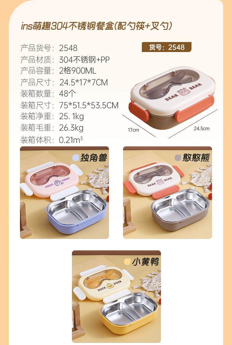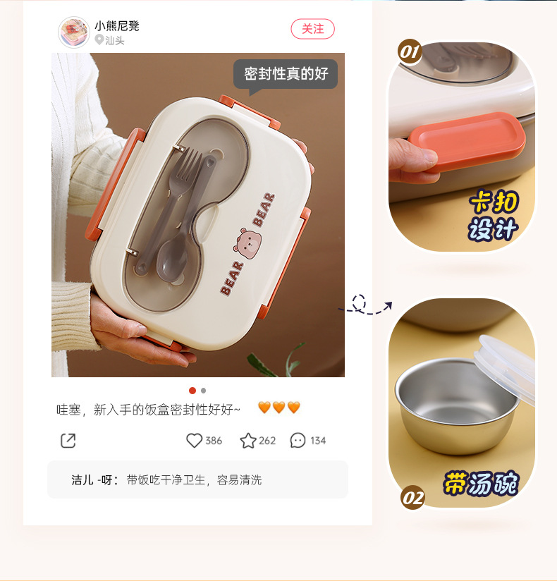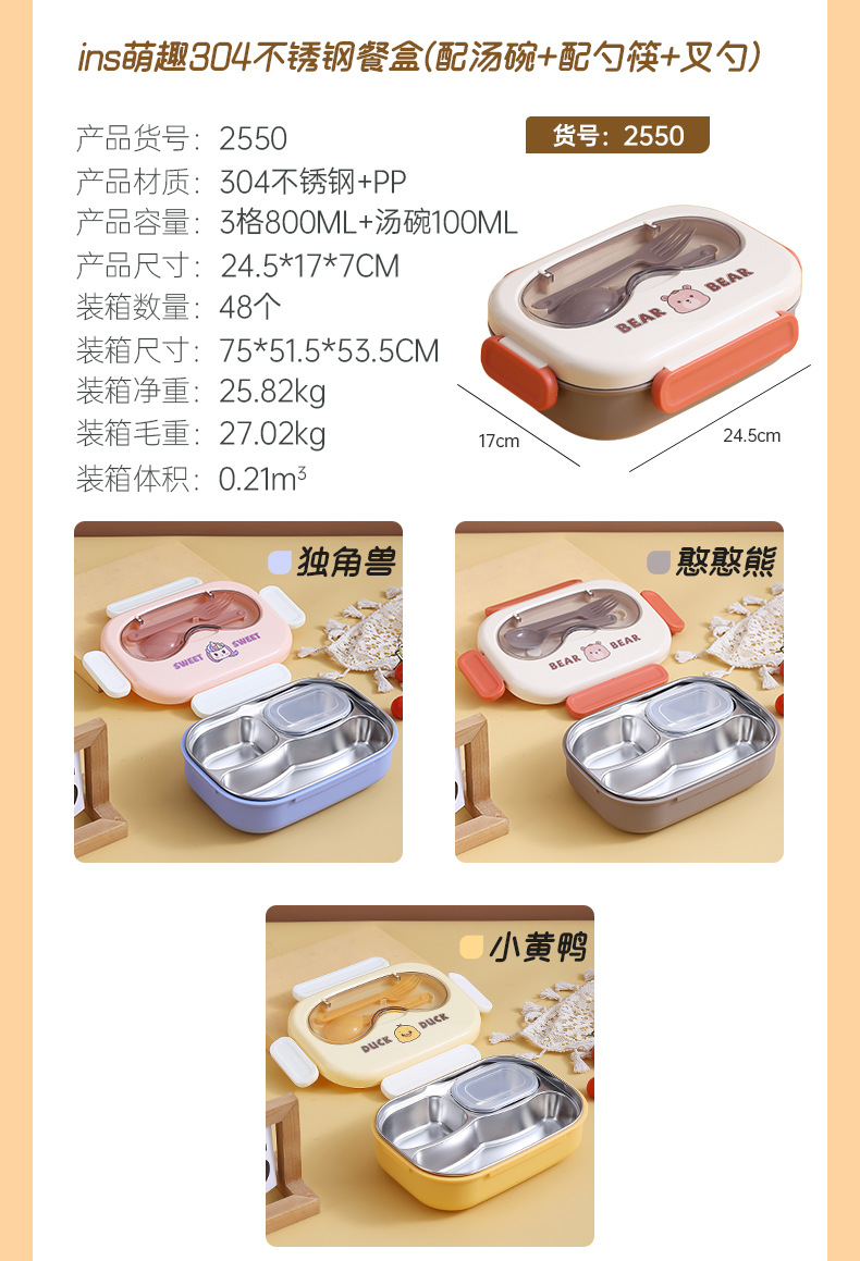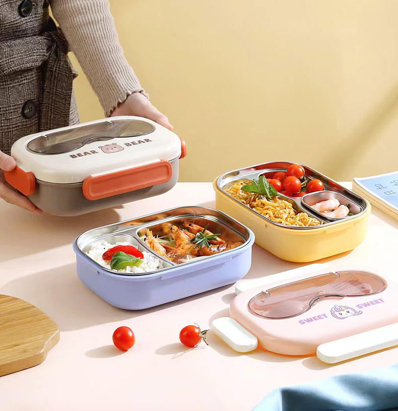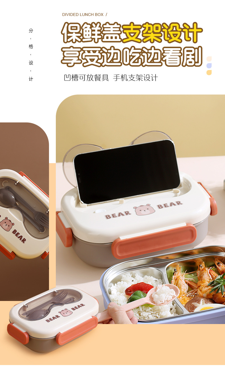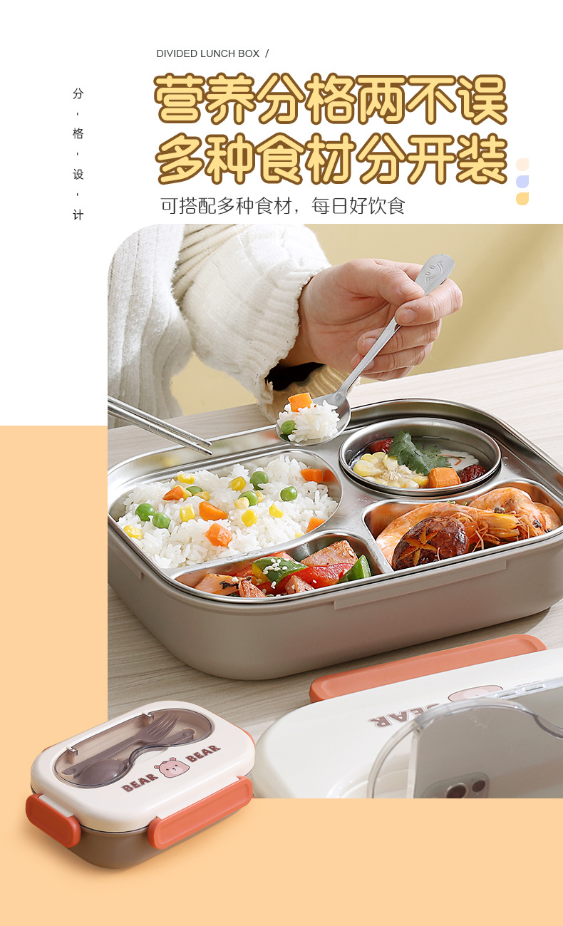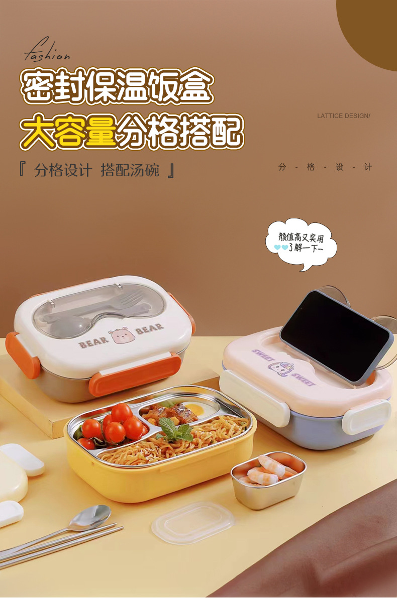 304不锈钢卡通小熊儿童学生午餐盒 上班族分格不串味保温便当餐盒