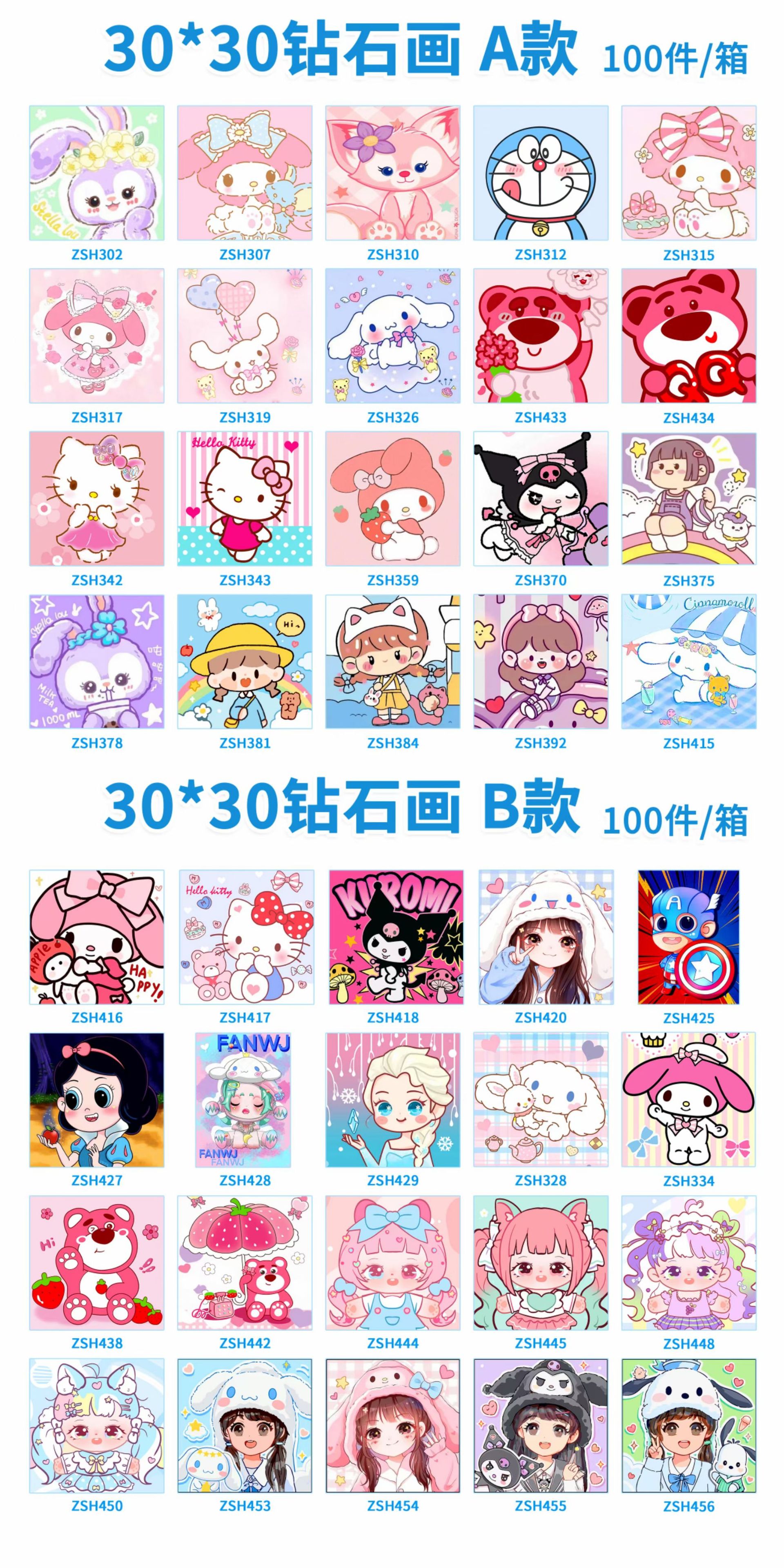 儿童卡通满钻钻石画批发 diy手工点钻三丽鸥5d十字绣砖石贴装饰画