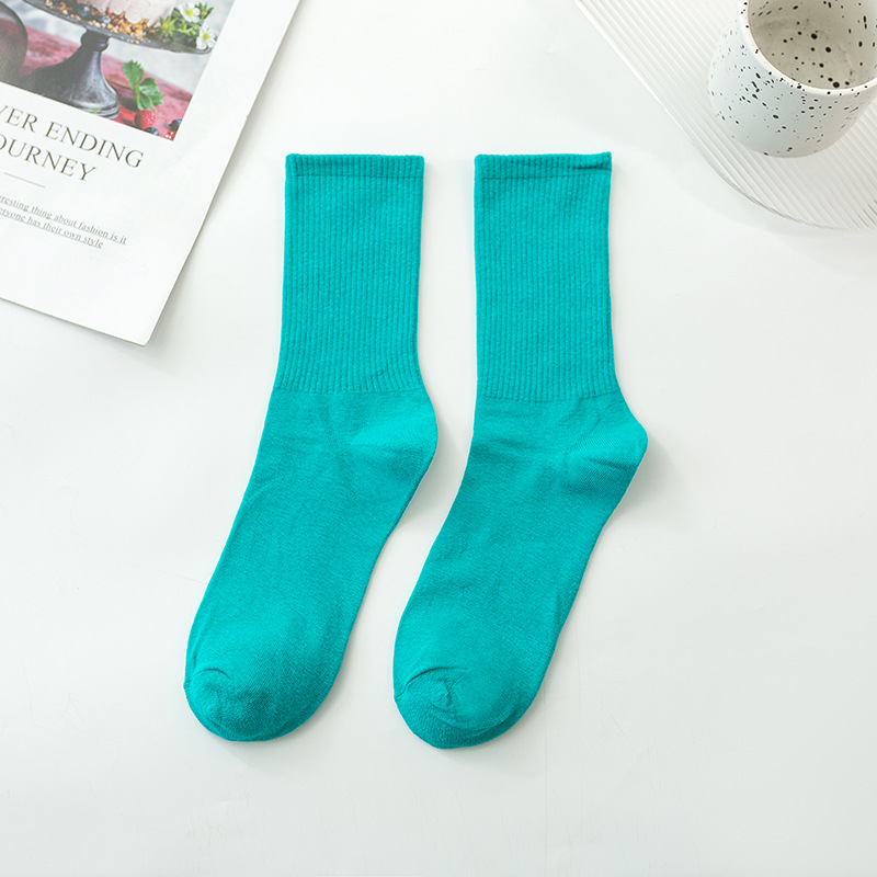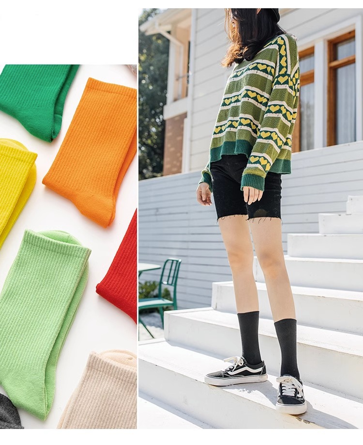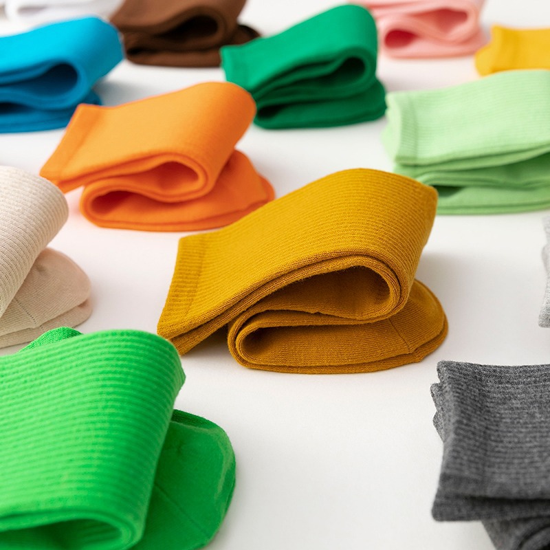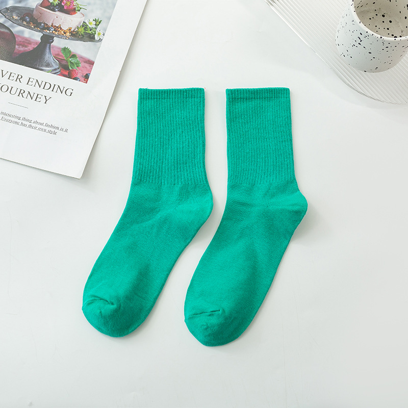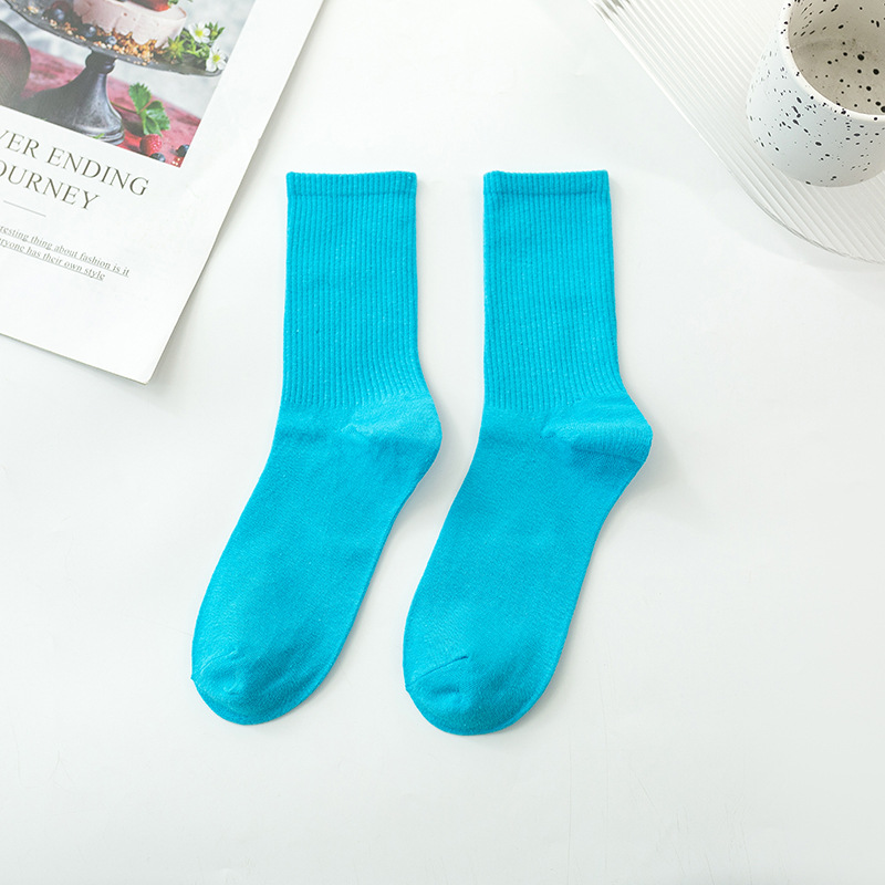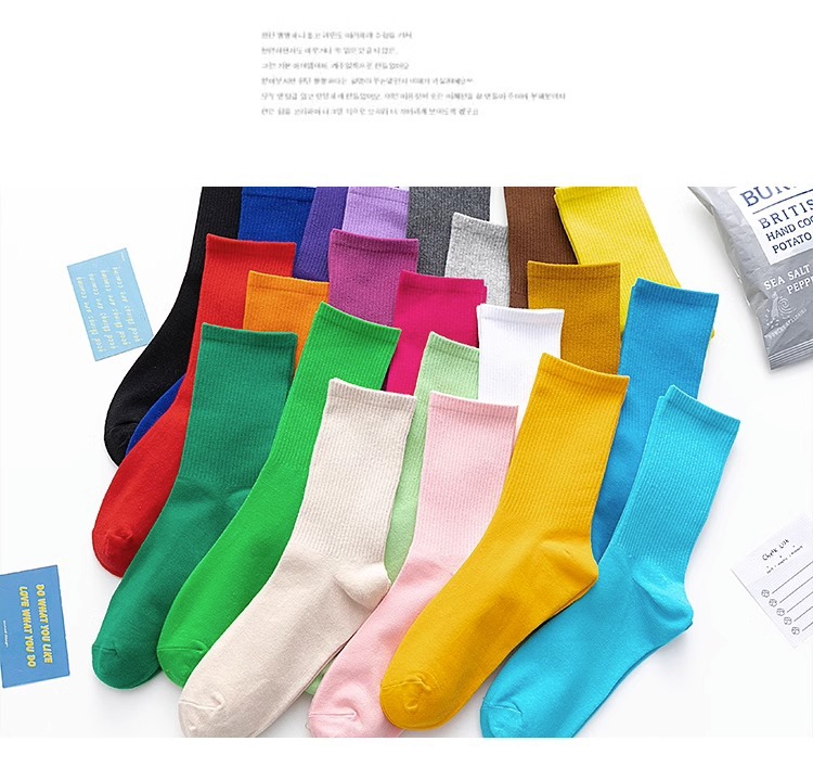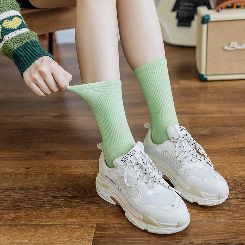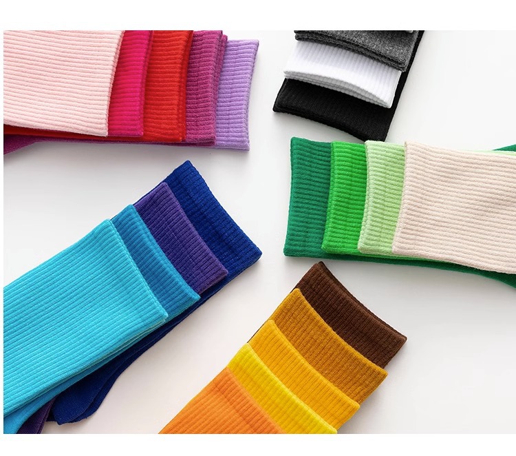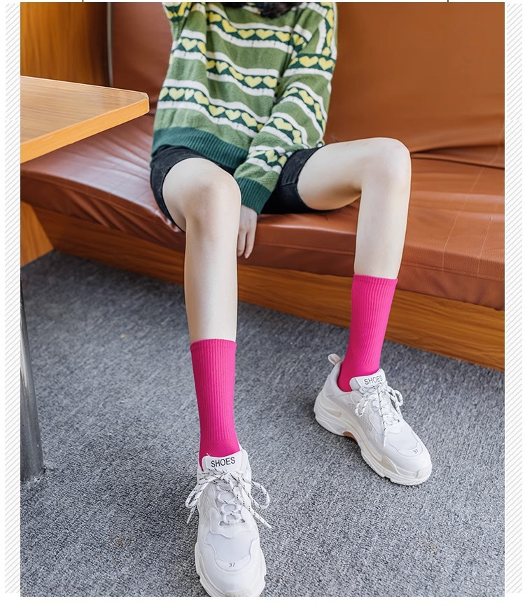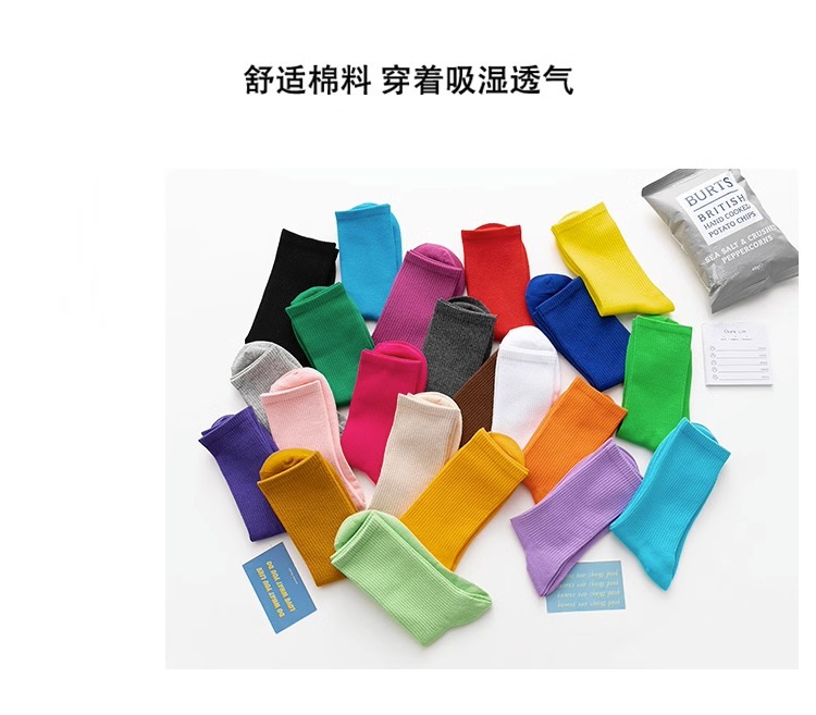 袜子女彩色中筒袜春夏季棉质ins潮网红糖果色长袜纯色堆堆袜