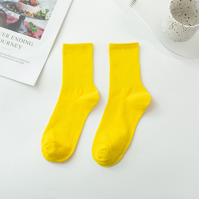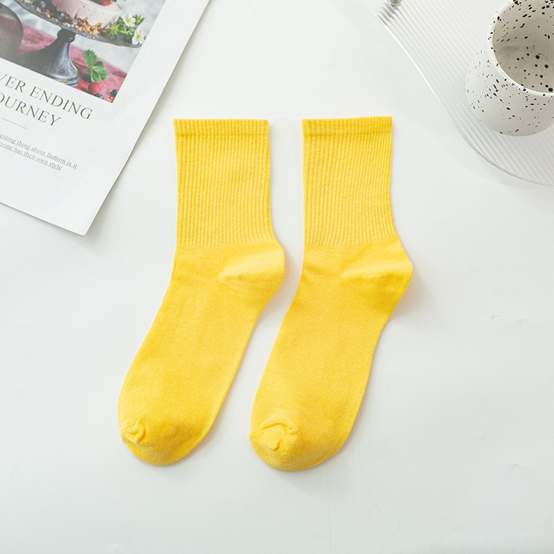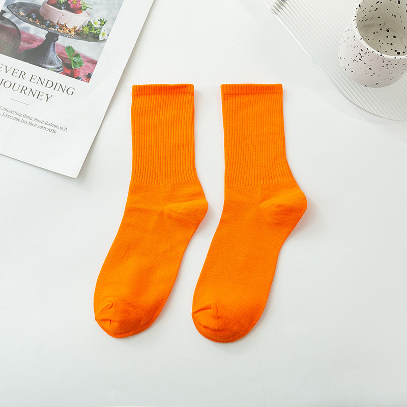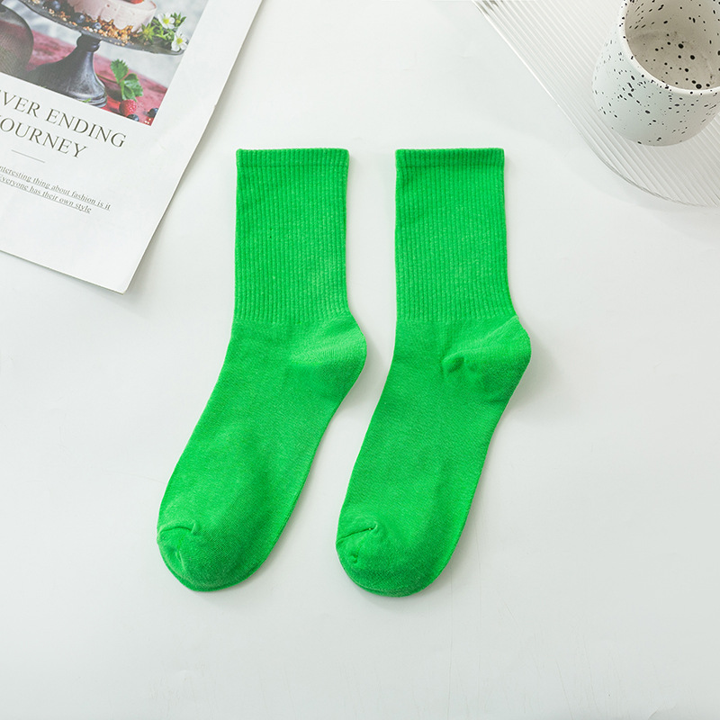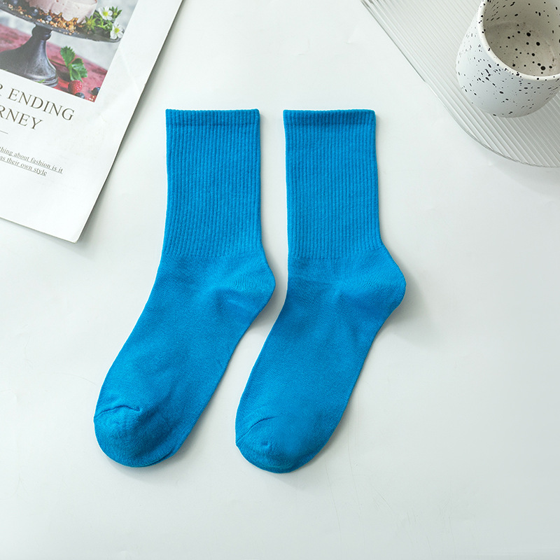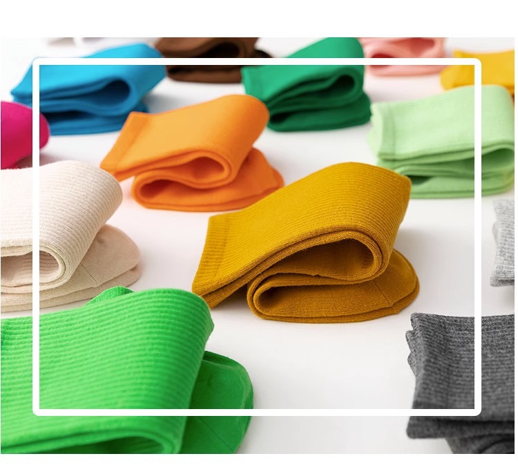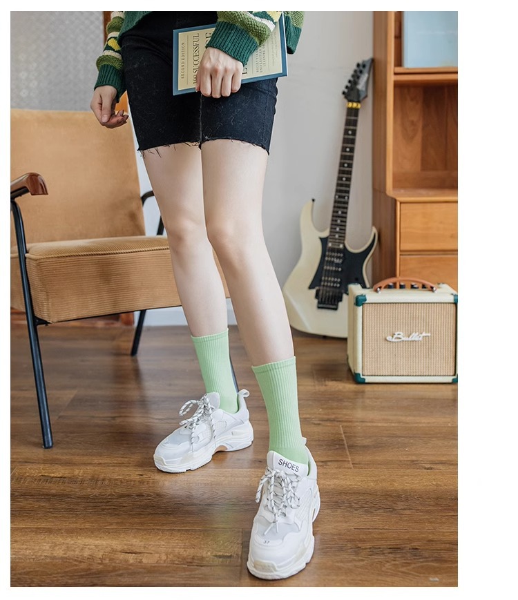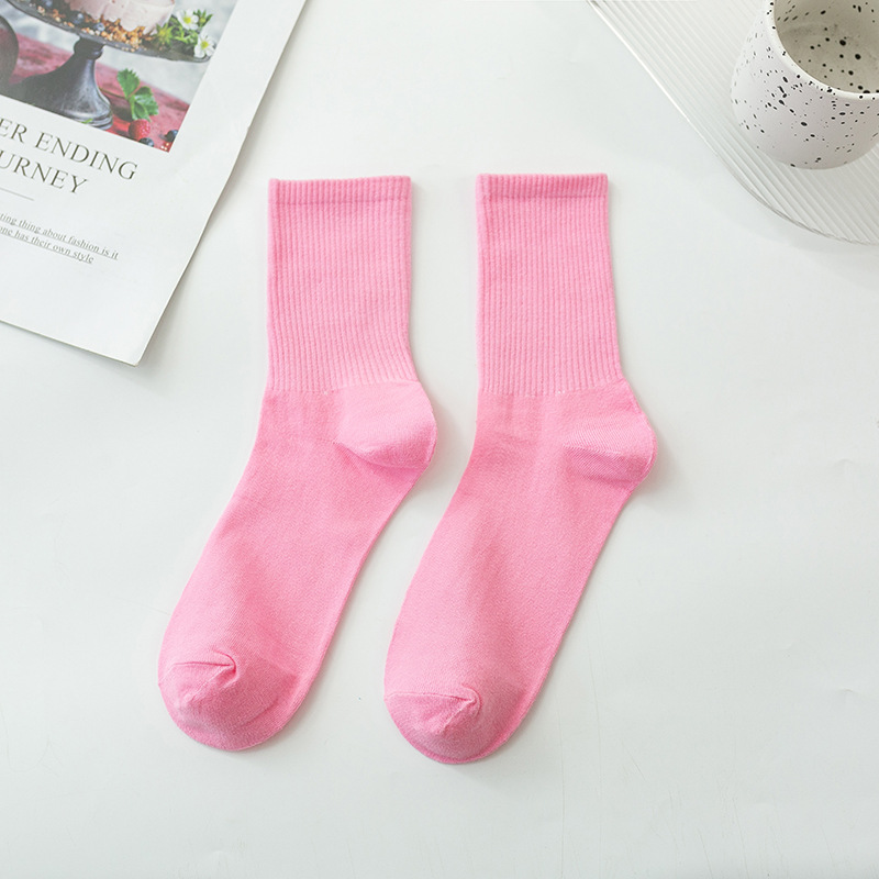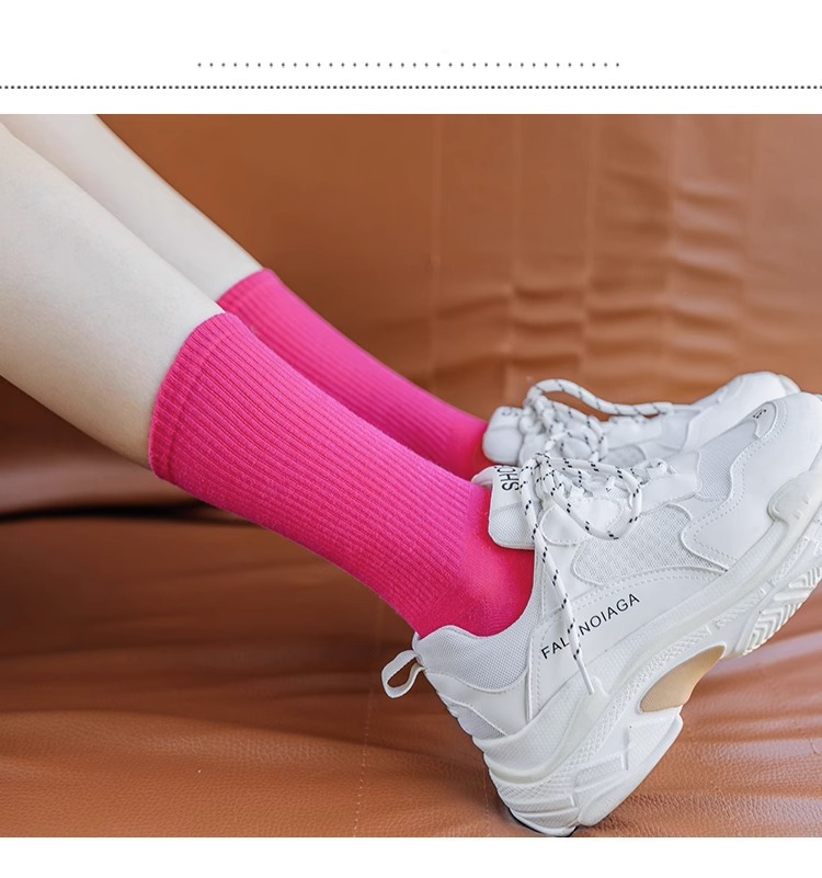 袜子女彩色中筒袜春夏季棉质ins潮网红糖果色长袜纯色堆堆袜