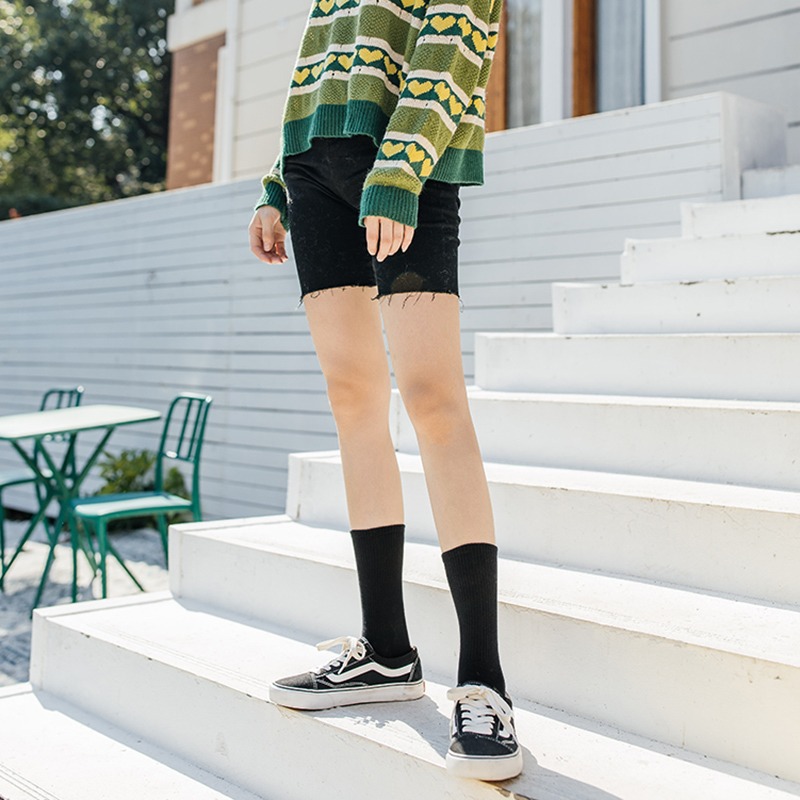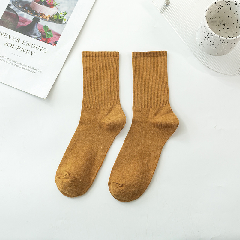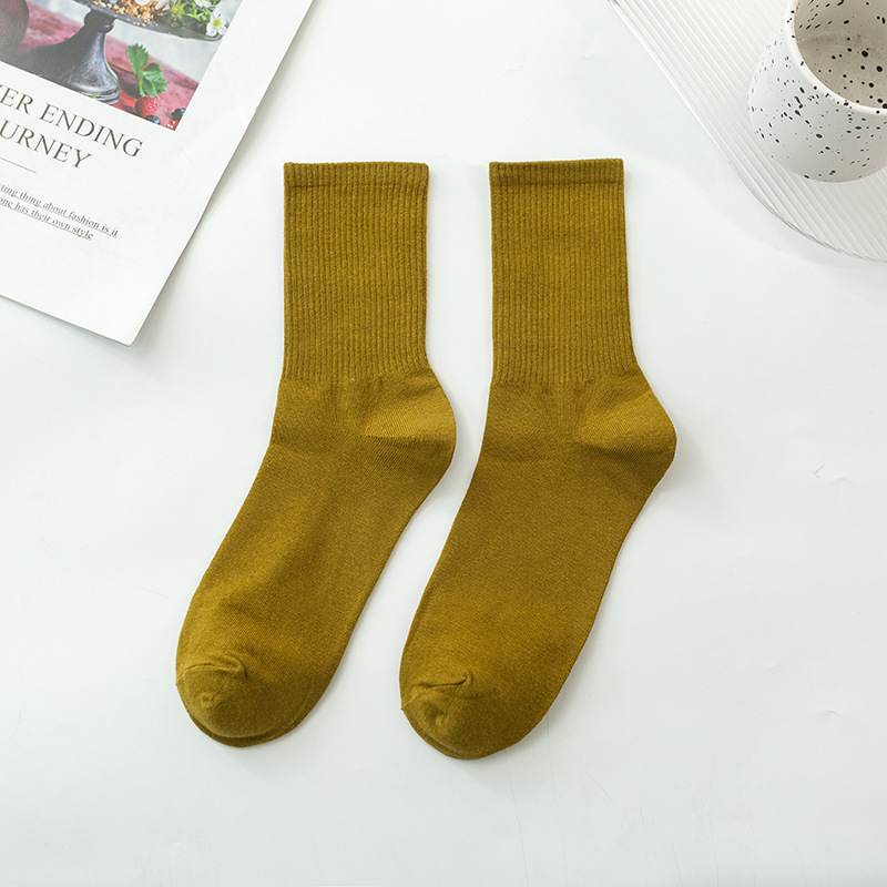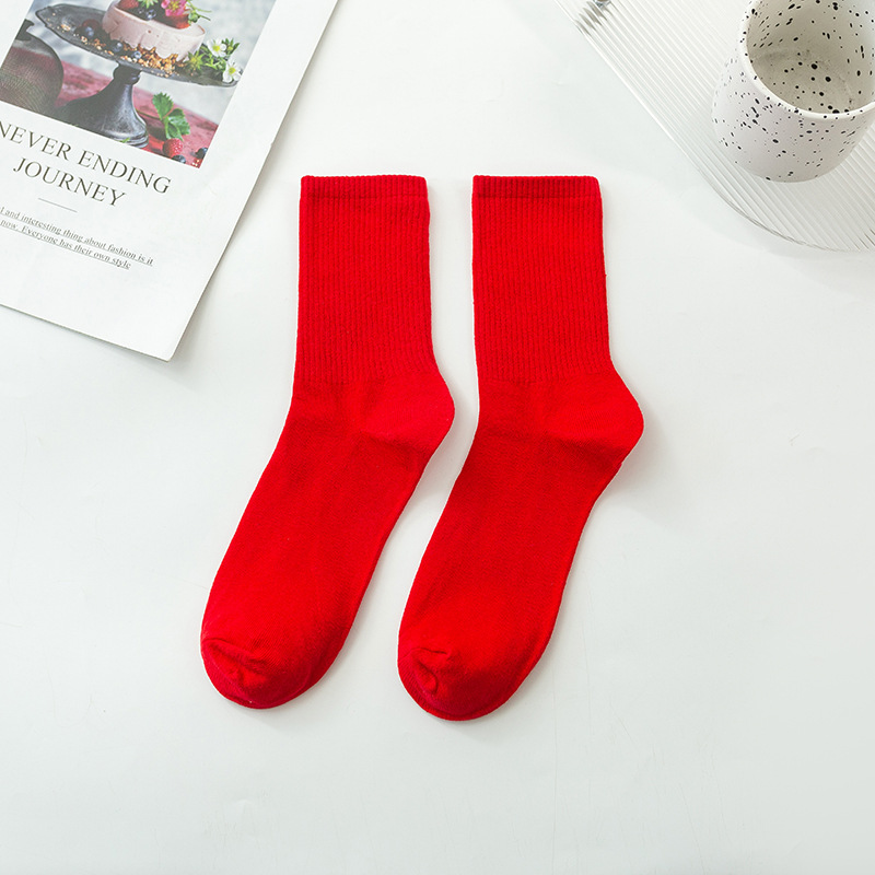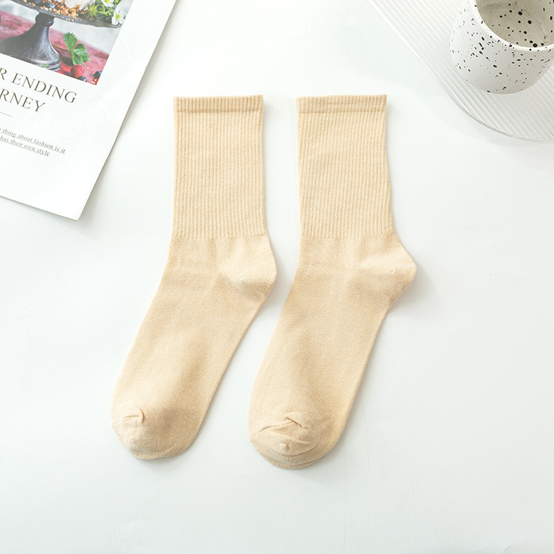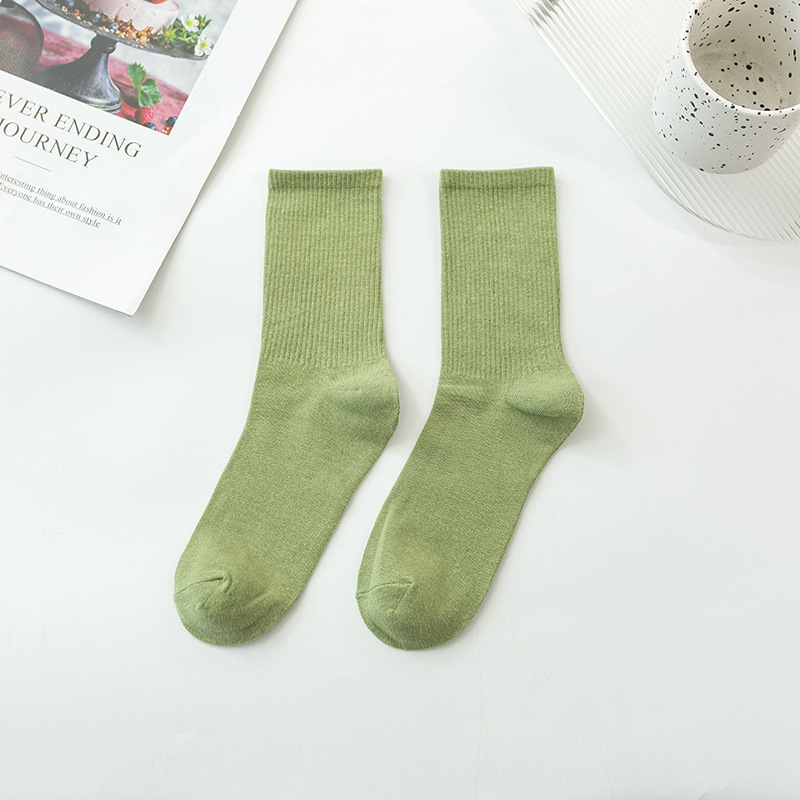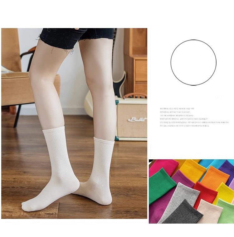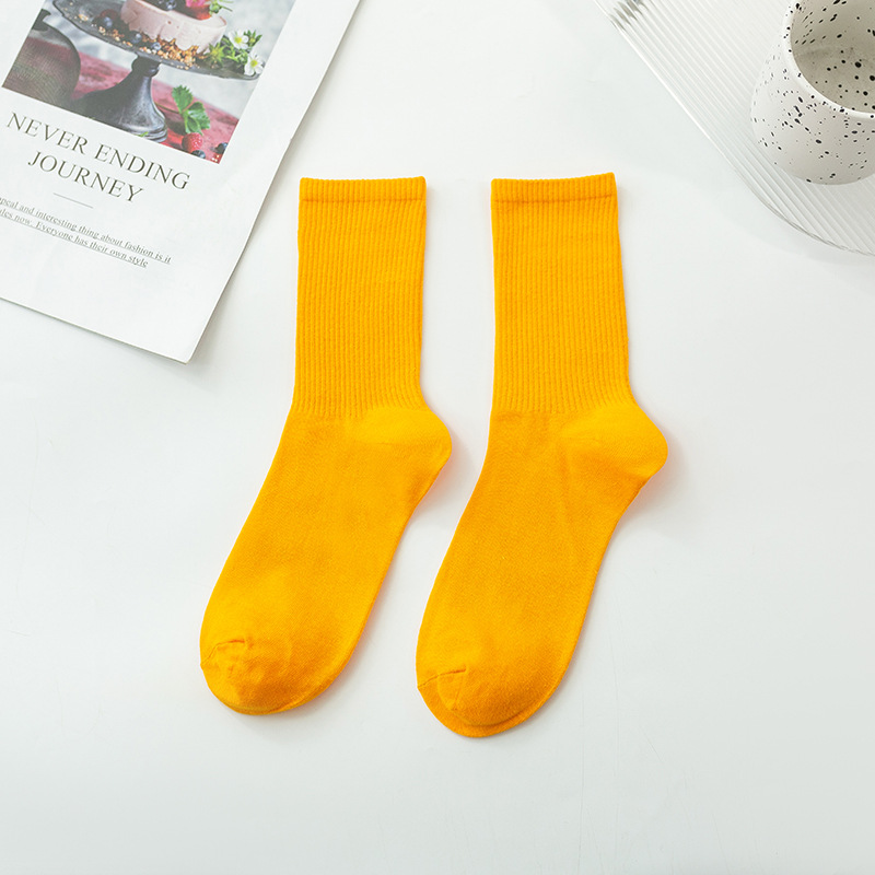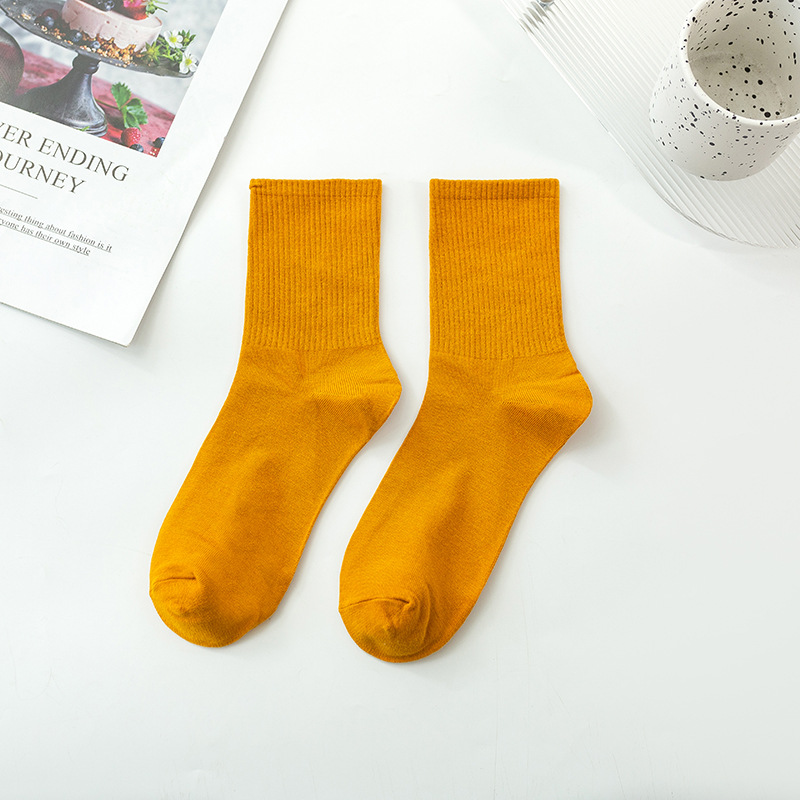 袜子女彩色中筒袜春夏季棉质ins潮网红糖果色长袜纯色堆堆袜