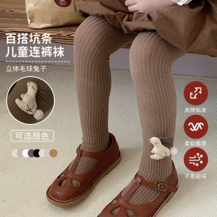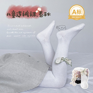 儿童连裤袜宝宝春秋季婴儿打底袜纯色蝴蝶结连体袜女童打底裤批发