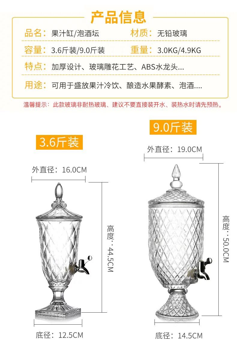 批发大号果汁瓶饮料罐甜品台冷饮带水嘴玻璃罐鲜啤酒瓶3L