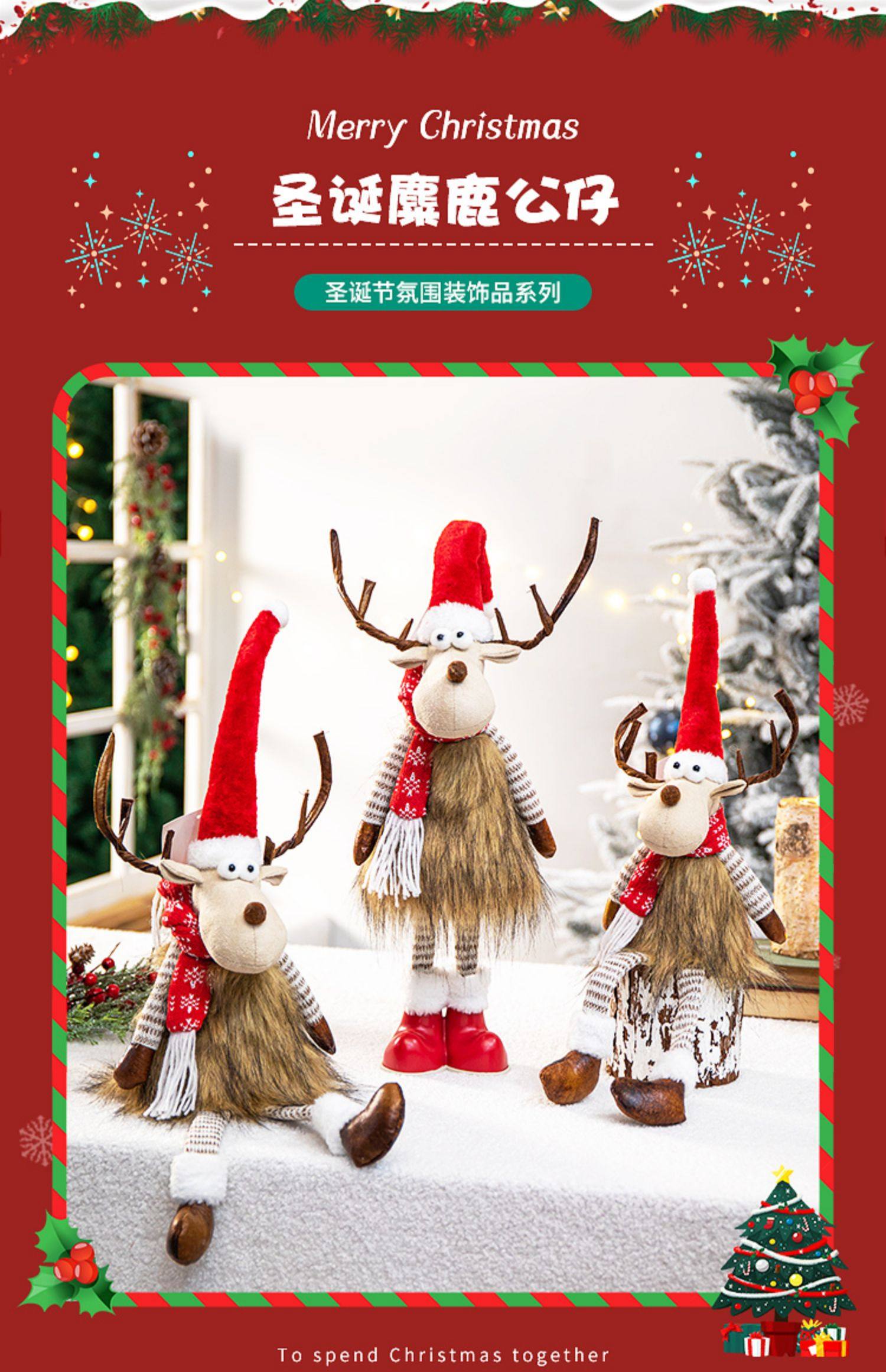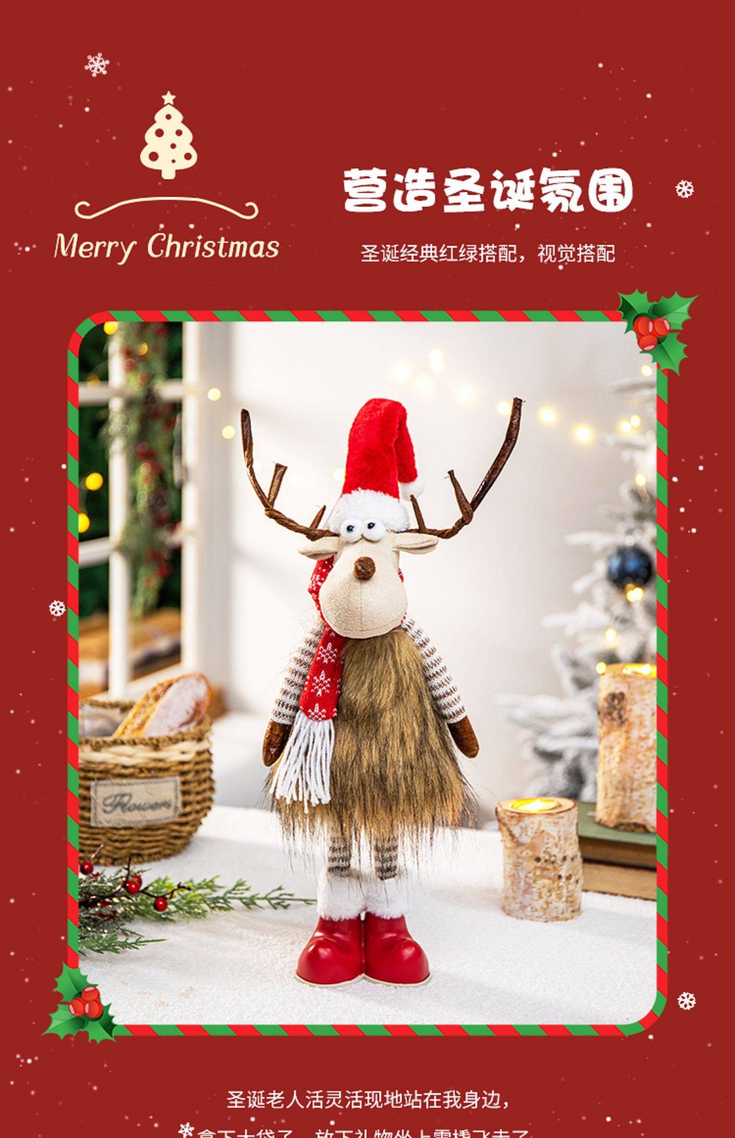 圣诞节装饰圣诞麋鹿摆件圣诞树装饰店铺橱窗装饰场景布置圣诞饰品