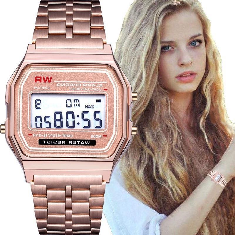 电子表钢带电子手表WR F91原宿风卡西手表多功能LED电子表