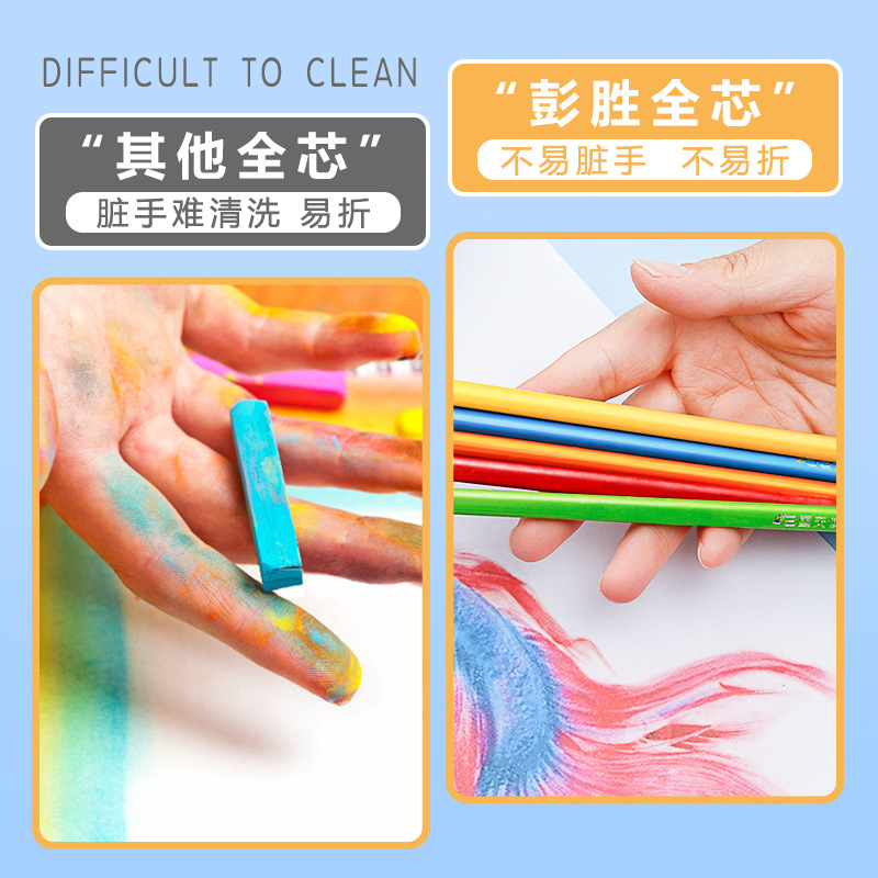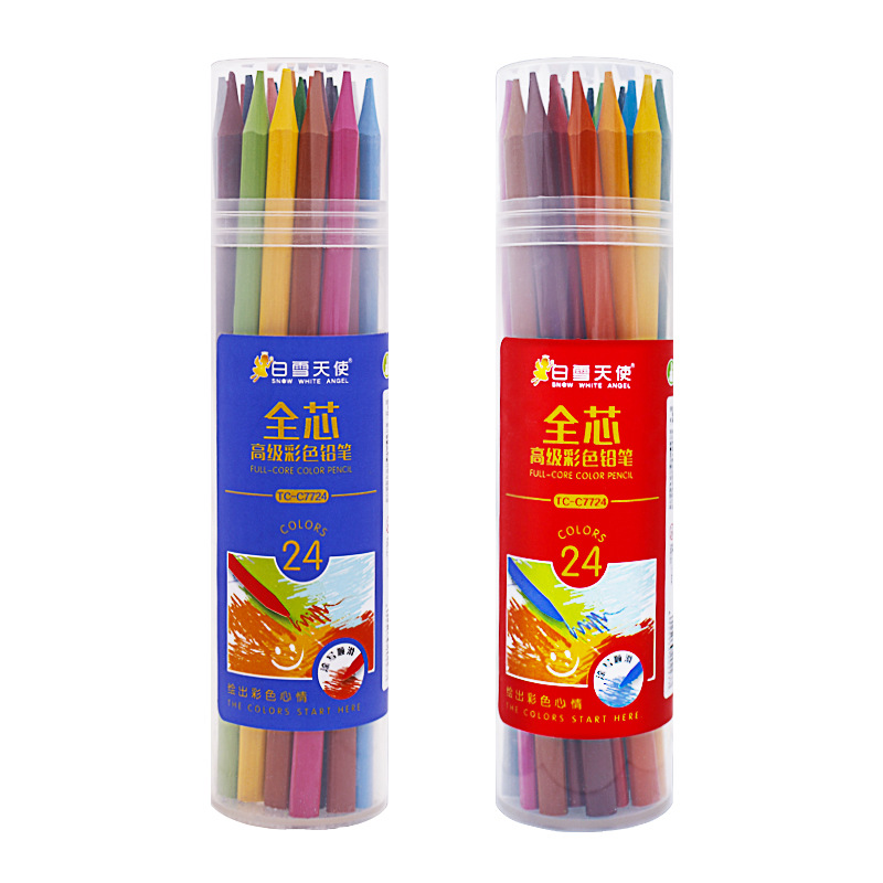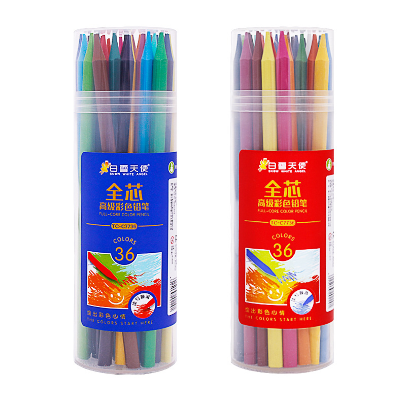 厂家直销全芯彩铅不沾手36色桶装纯铅芯涂色绘画三角彩色铅笔厂家