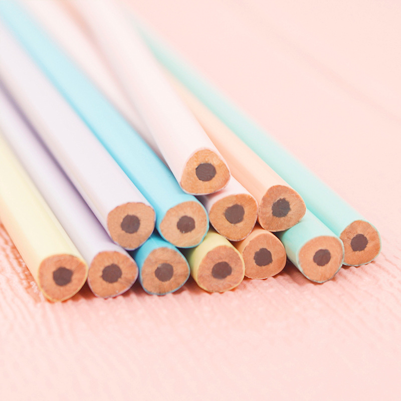 直播激光刻字铅笔HB马卡龙色光纤紫外通用写字笔三角彩杆厂家批发