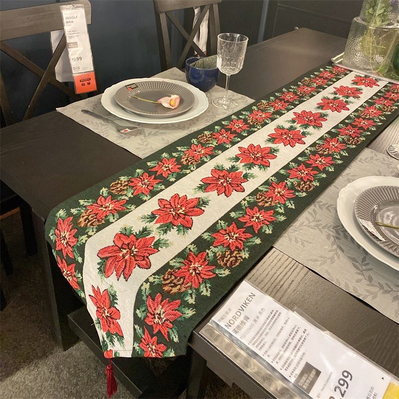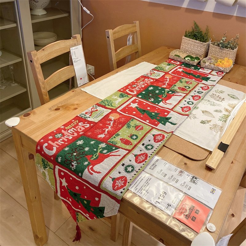圣诞节氛围桌旗长桌条新年桌布巾餐垫服装店民宿桌面圣诞装饰定制