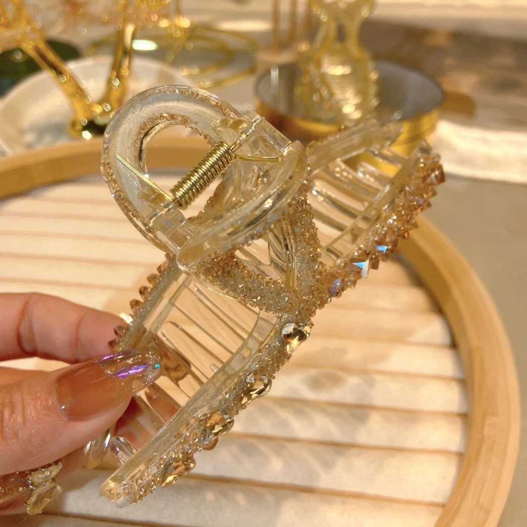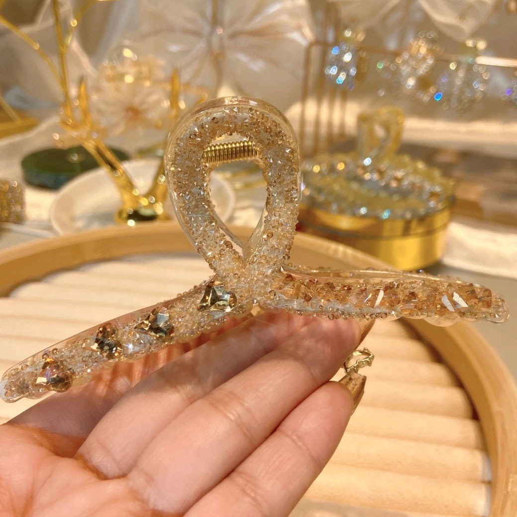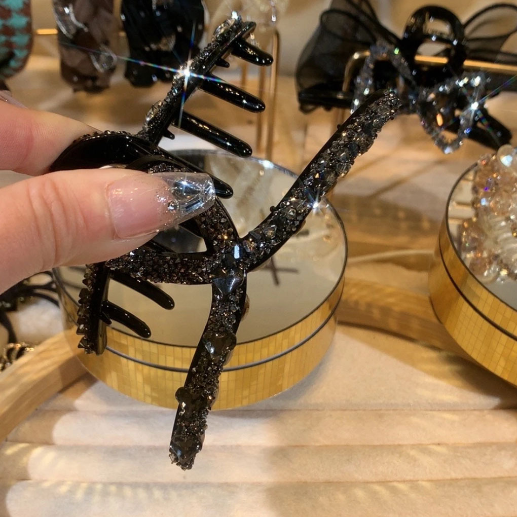 韩版爱心水晶鲨鱼夹满钻发抓水钻气质马尾大抓夹半扎发盘发饰