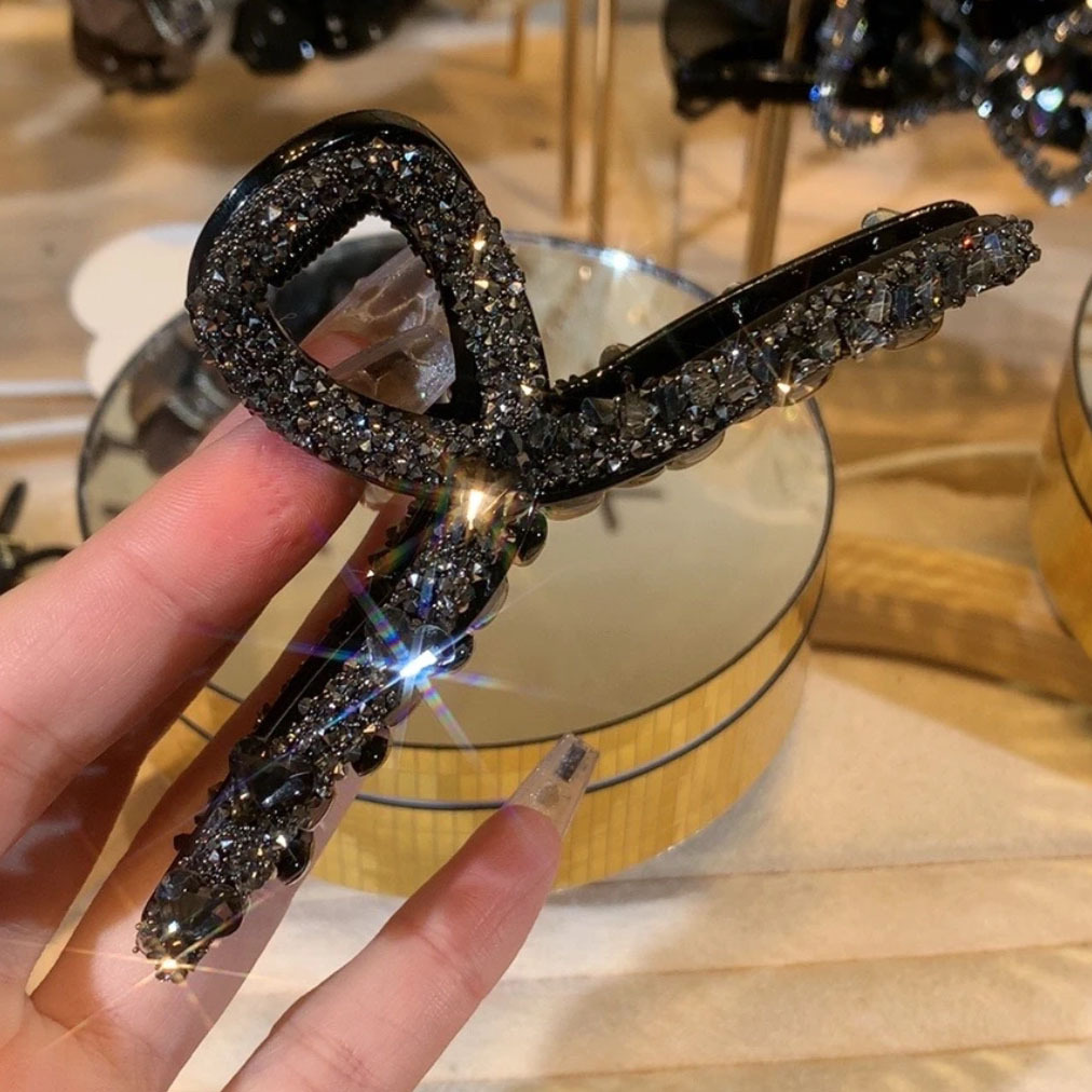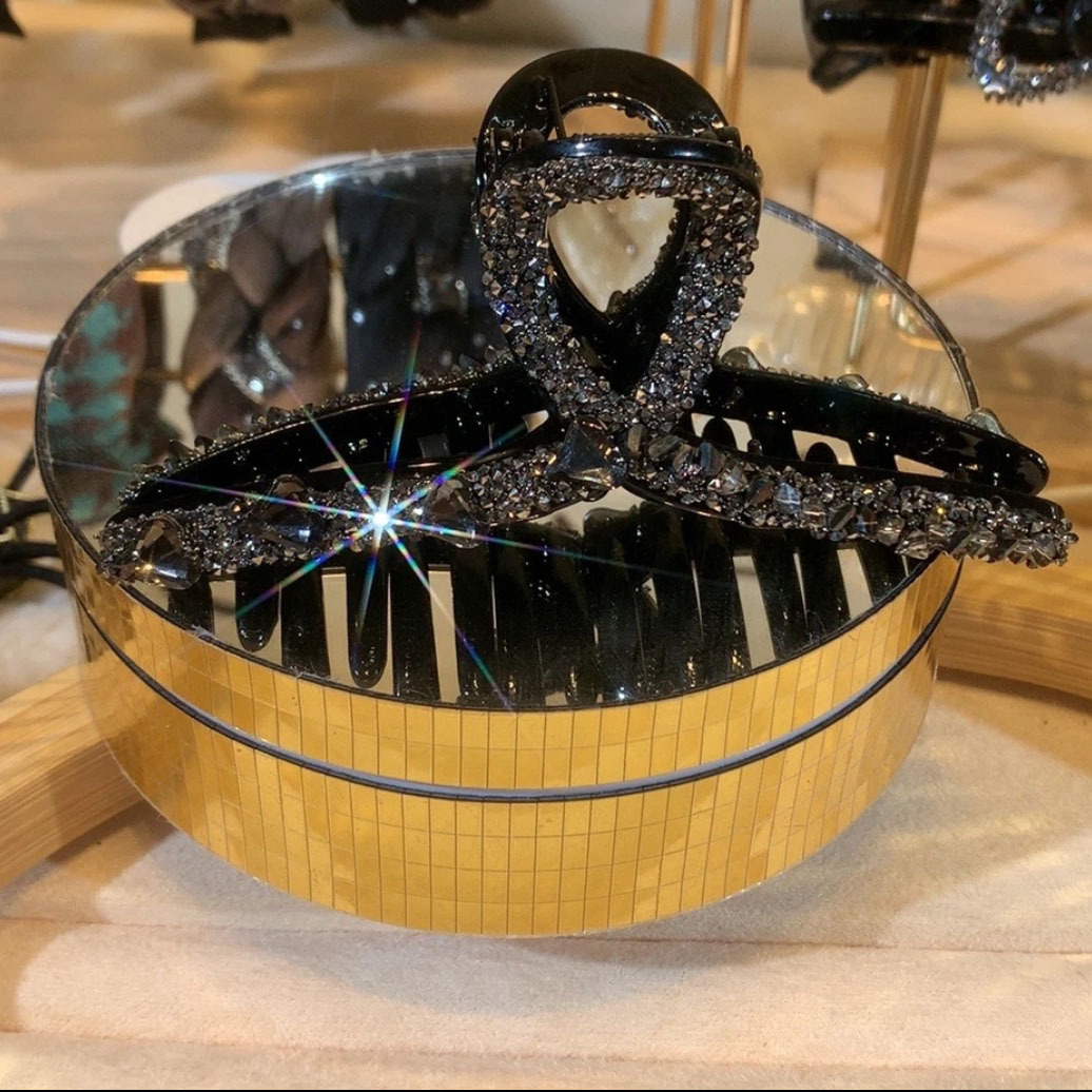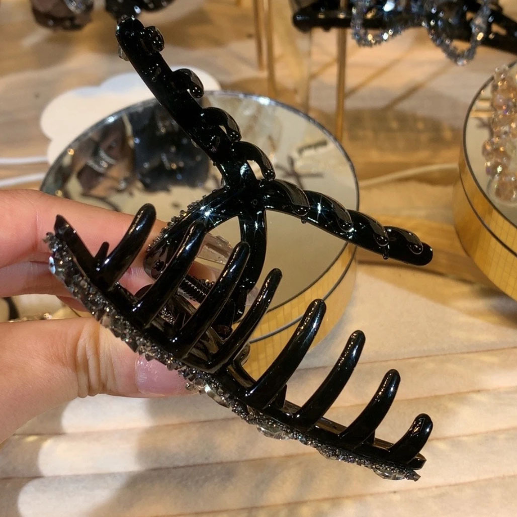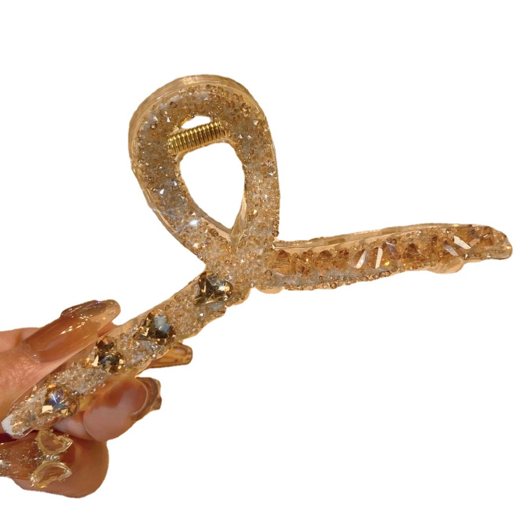 韩版爱心水晶鲨鱼夹满钻发抓水钻气质马尾大抓夹半扎发盘发饰