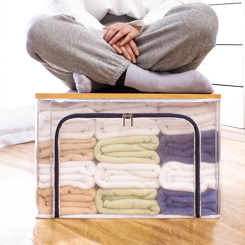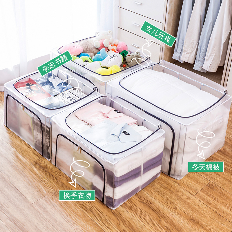 优芬pvc收纳箱可折叠钢架箱棉被衣服储物箱卧室居家大容量百纳箱