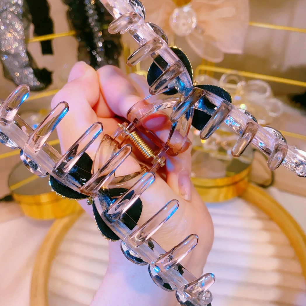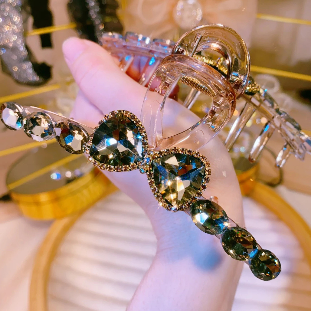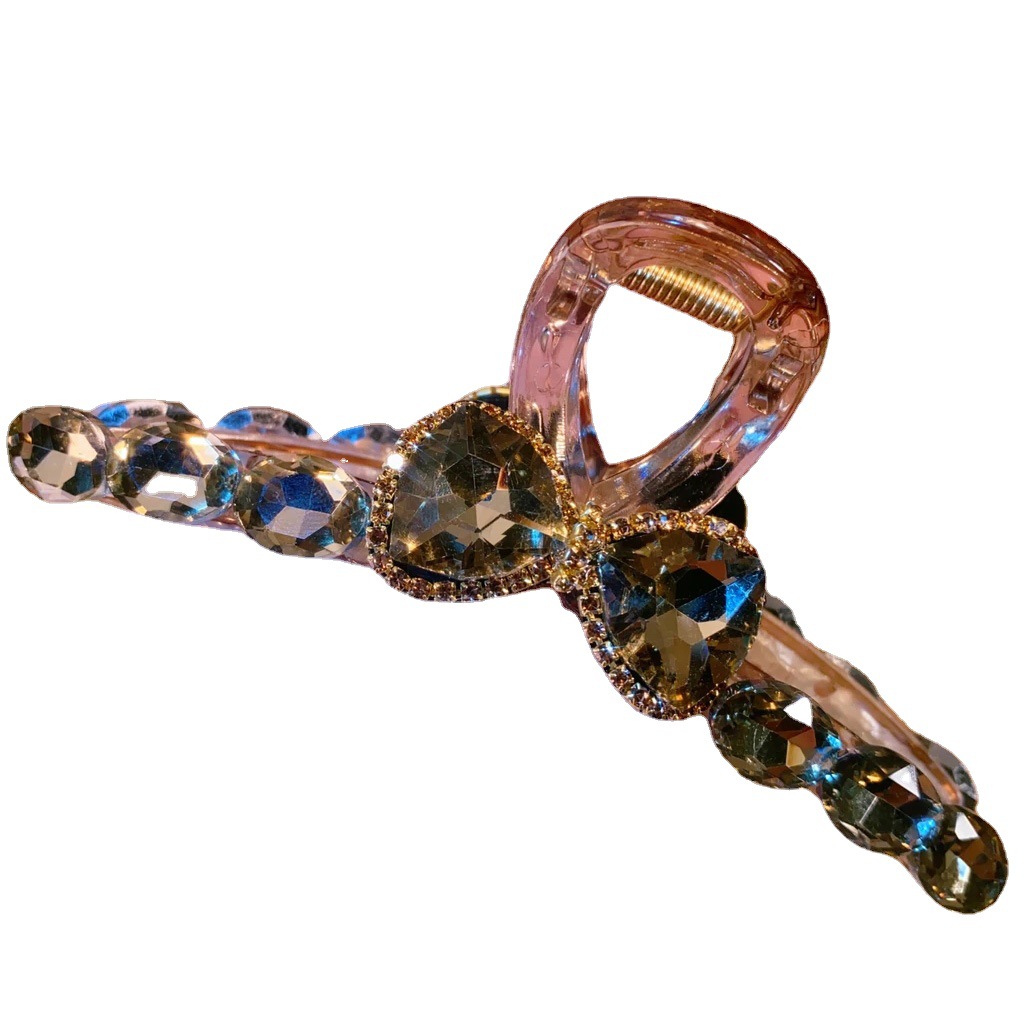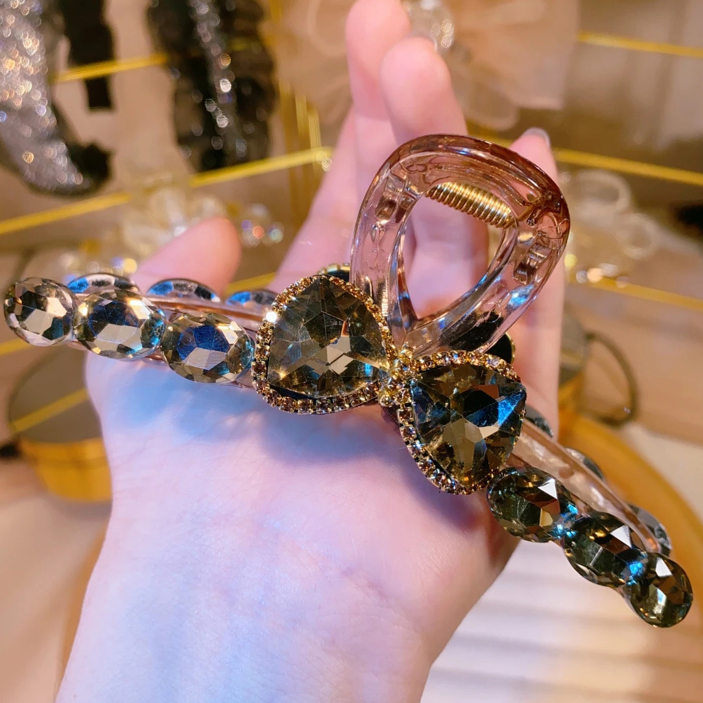 满钻茶色领结大号抓夹大钻鲨鱼夹半扎蝴蝶结夹子马尾大夹子发饰