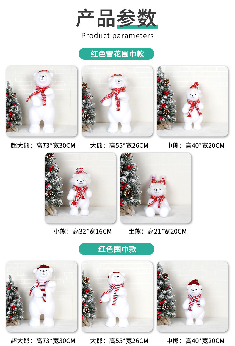 圣诞节装饰用品仿真植绒熊摆件礼物礼品道具商场店铺活动装饰布置
