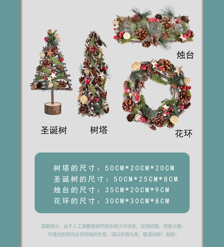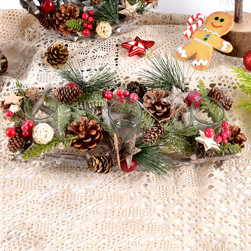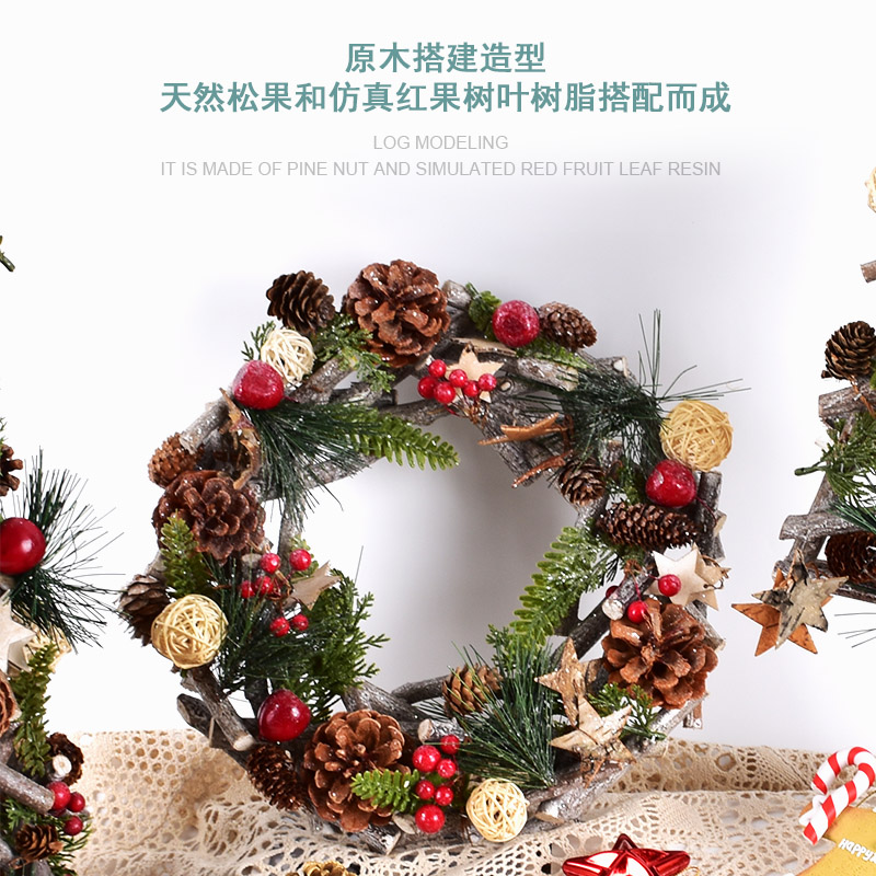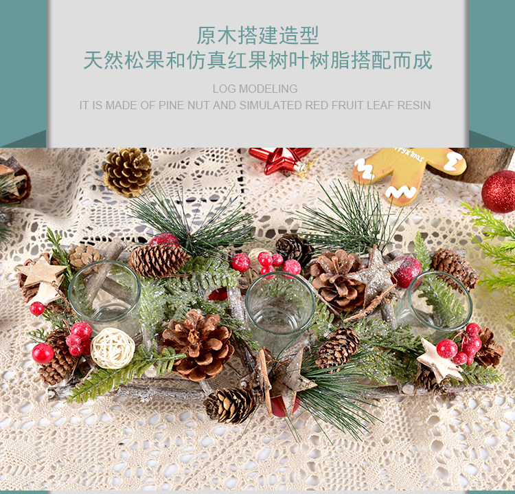 圣诞装饰森林主题派对布置道具木制松果花环圣诞树蜡烛台桌面摆件